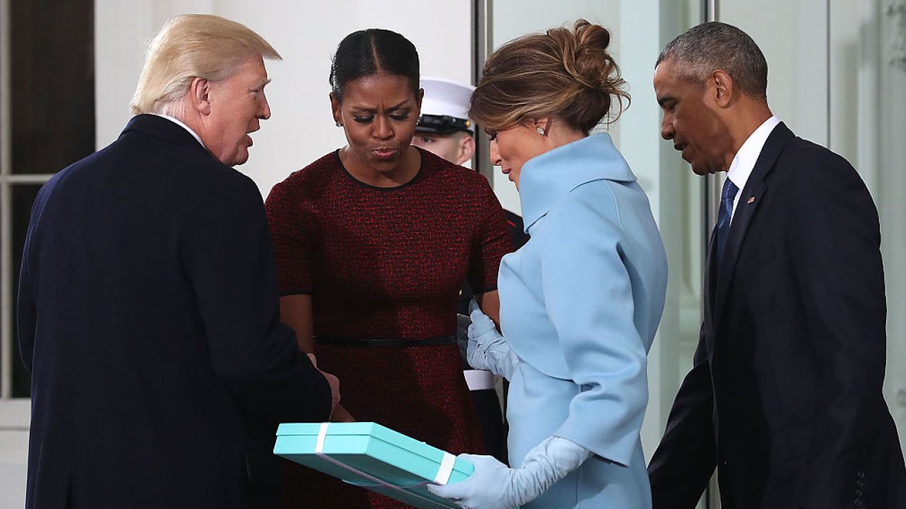 Gli occhi del mondo sono posati su Barak Obama e Donald Trump e, soprattutto, sulle due first ladies. Tutto procede bene fino a quando Melania porge a Michelle un pacchetto di Tiffany. Seguono lunghi momenti di imbarazzo nei quali la moglie dell’ex presidente non sa dove appoggiare l’inaspettato regalo, fino a quando Obama interviene a salvare situazione e lo passa a qualcuno dietro la porta. L’intera scena impazza nella rete e diventa ispirazione per decine di meme.