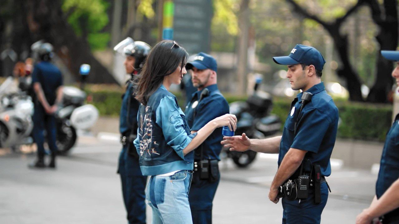 Quale? Quello dello spot per Pepsi. La clip inizia con la modella impegnata in un servizio fotografico che, ad un certo punto, si accorge del passaggio accanto a lei di un corteo di manifestanti e decide di unirsi a loro. Quando la tensione sale, Kendall trova una soluzione “geniale” per evitare degenerazioni violente: offrite una Pepsi ad un agente di polizia.