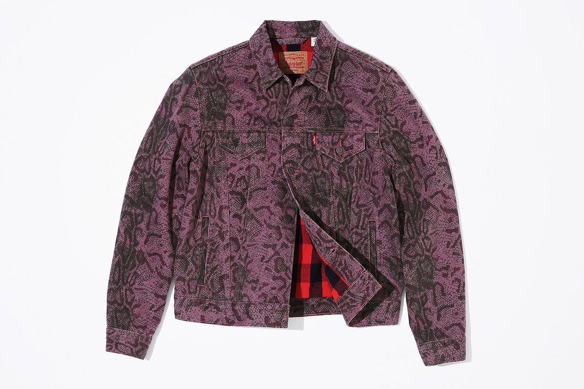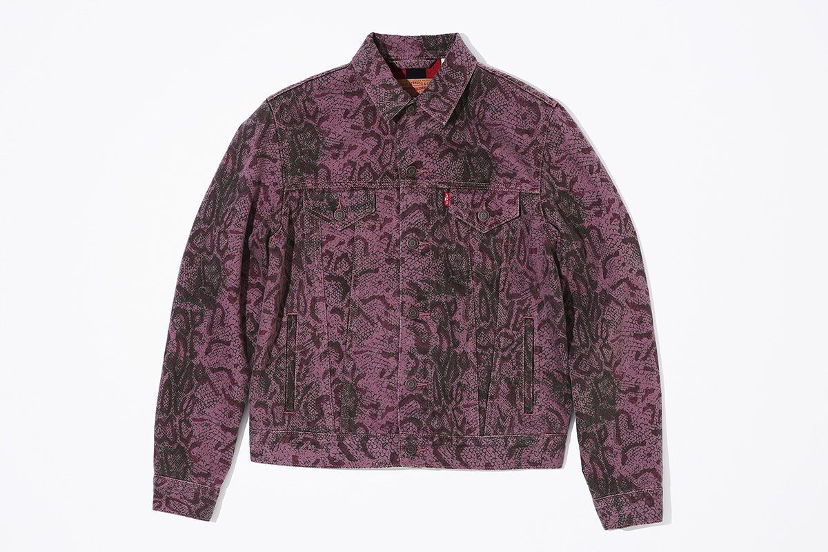 Il serpentato e il denim saranno i protagonisti indiscussi dei capi, casual e ovviamente in puro stile street. Must have sarà la salopette, presentata in tre differenti colori - viola, grigio e denim chiaro, che andranno poi a replicarsi sull'intera collezione. Ad accompagnare questo primo capo ci sarà la Trucker Jacket, elemento iconico del marchio Levi's, proposto nella medesima stampa.