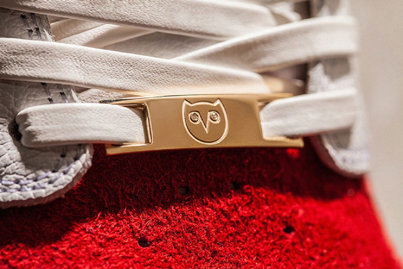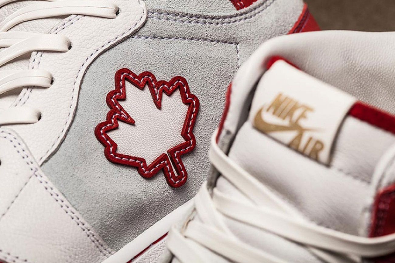 La scelta dei colori, bianco e rosso, è un chiaro rimando alla bandiera canadese, così come la foglia d’acero cucita su un lato della sneaker; mentre il patch del gufo è un omaggio a Ovo, la linea di abbigliamento di Drake.