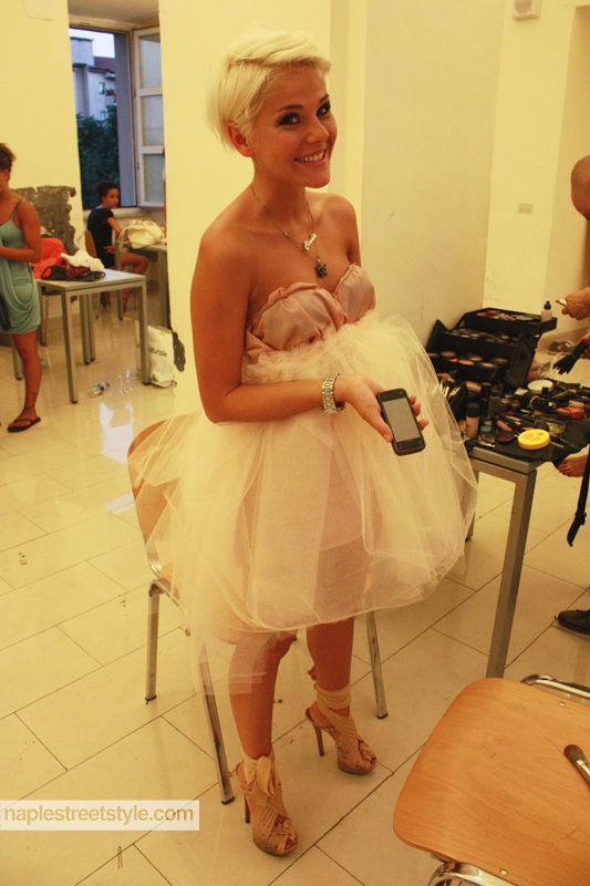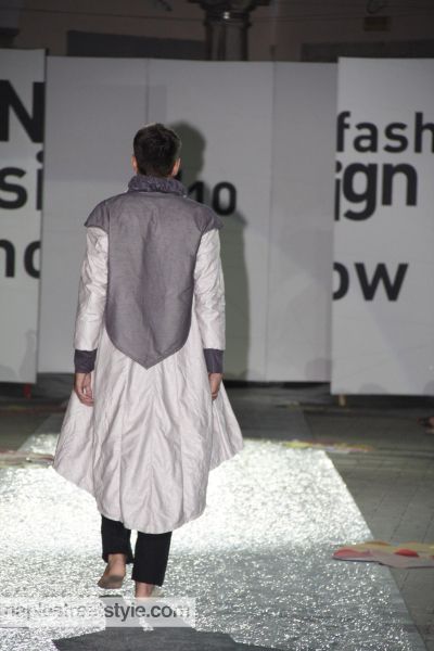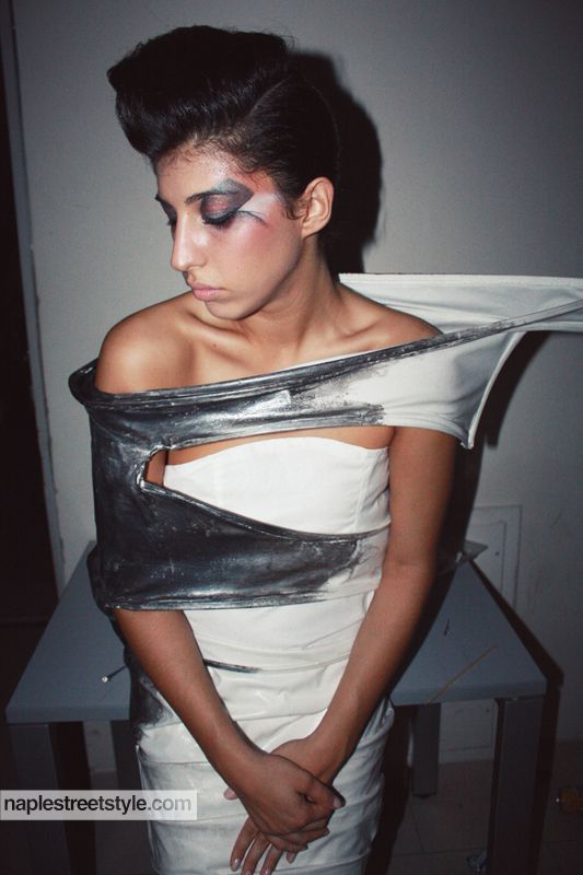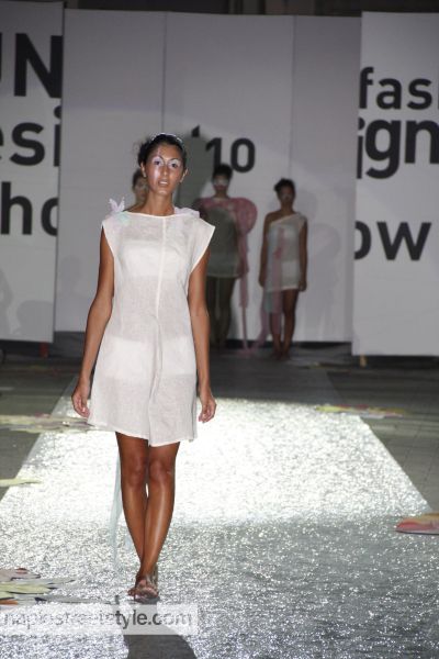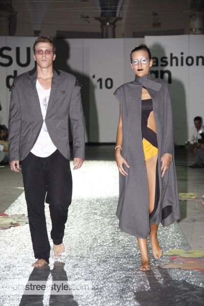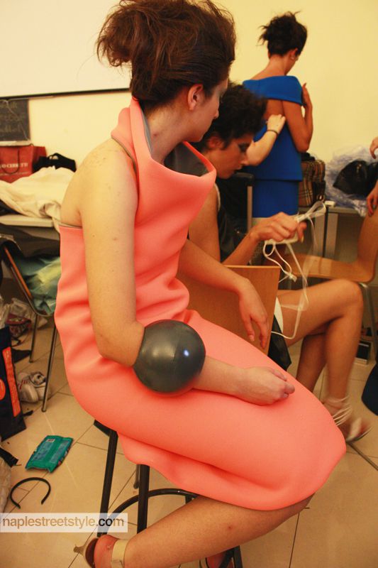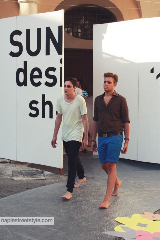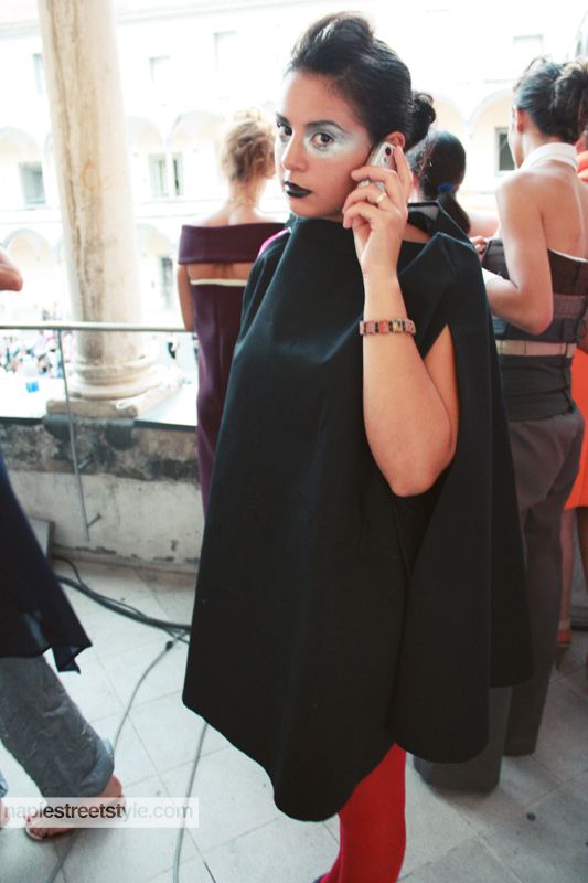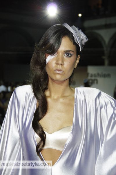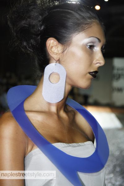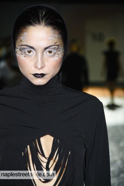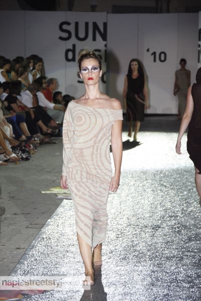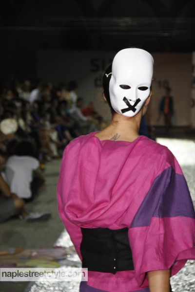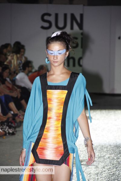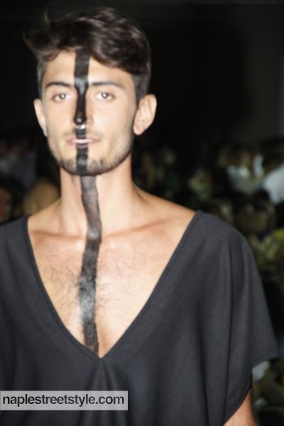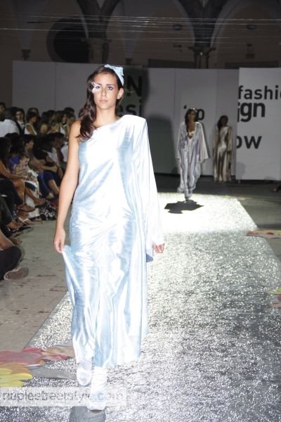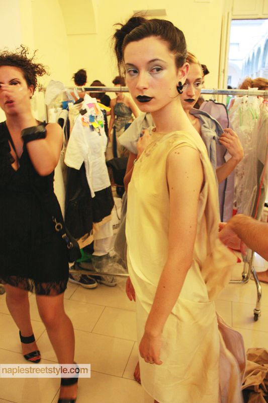 Ma non dimentichiamoci che il SUN Fashion Design Show è il frutto del lavoro di stilisti, si, ma che son sempre studenti. Allora gli oggetti del defilé non sono semplici manifestazioni del loro estro, ma anche prodotti didattici, risultati di un anno intero di corsi e, in alcuni casi, vere e proprie tesi di laurea. Eccola qua, la doppia trepidazione dello stilista-studente. E a noi che siamo intervenuti quella sera da spettatori, da popolo che solamente a sprazzi ha goduto delle luci dei riflettori, solo per quella frazione nella quale i modelli ci passavano davanti, brillando così della loro luce riflessa, cosa è rimasto? E’ rimasto il ricordo di una calda sera d’estate nella suggestiva Abbazia di San Lorenzo ad Septimum, di tre collezioni susseguitesi in maniera piacevole e veloce, scorrendo le quali è stato bello vedere l’evoluzione e la maturità che un simile corso di laurea è in grado di conferire: quella del primo anno che ha rivisitato lo stile Novecentesco in chiave moderna (seguita dai professori Patrizia Ranzo ed Erminia Pagano), quella del secondo anno ispirata al nuovo classicismo sartoriale (seguita dai professori Roberto Liberti ed Erminia Pagano), ed infine quella del terzo anno, degli attesi tesisti ( Maria Antonietta Sbordone, Mario Montanino e Gianni Grasso) con i loro esercizi di stile e la sperimentazione di nuovi materiali tecnologici.