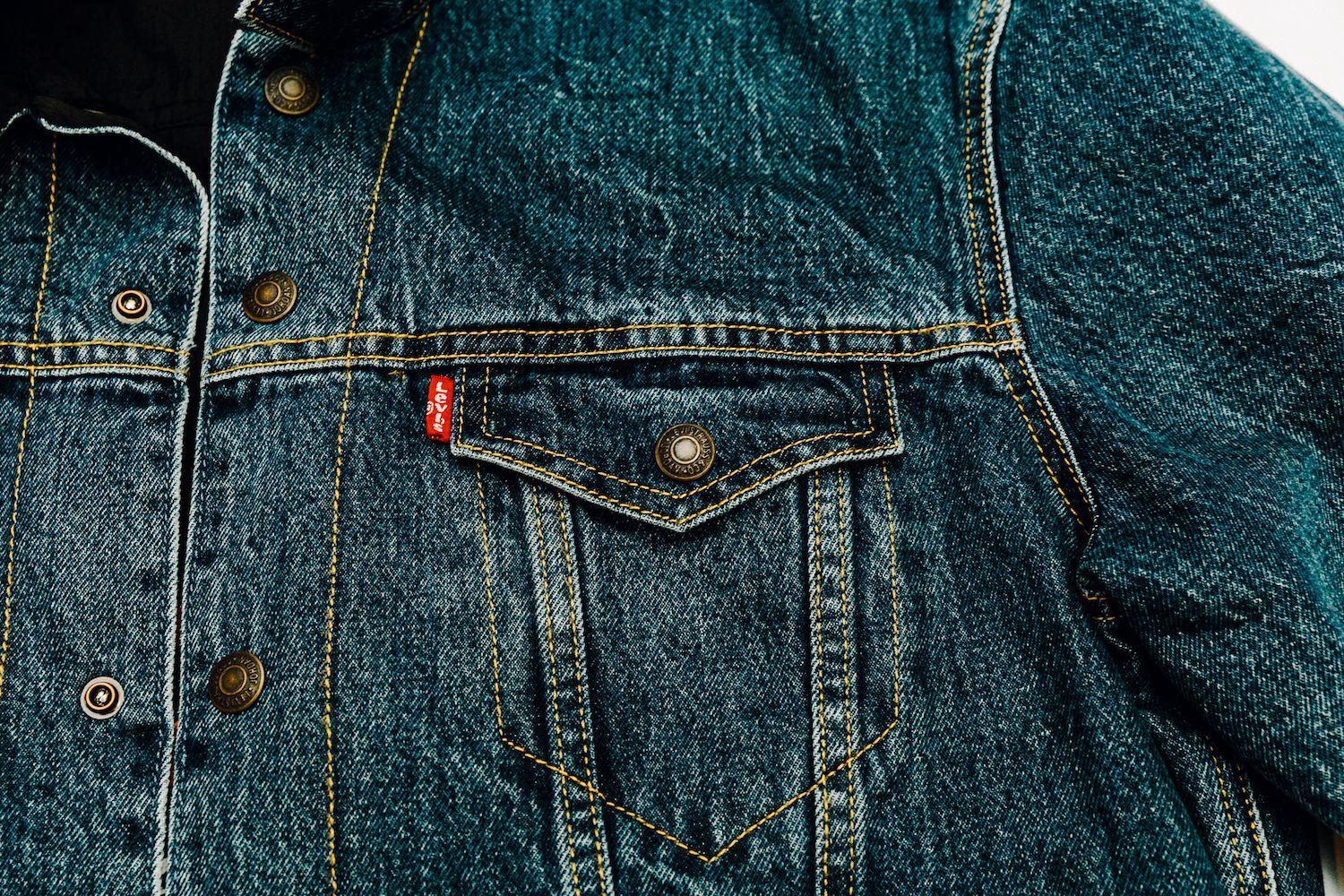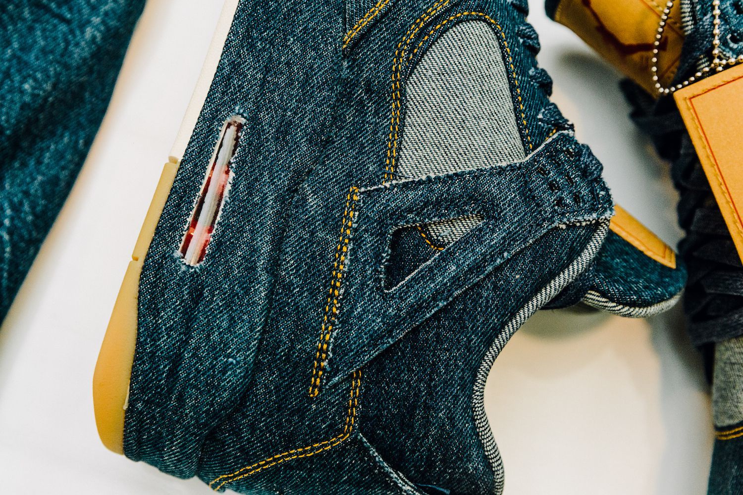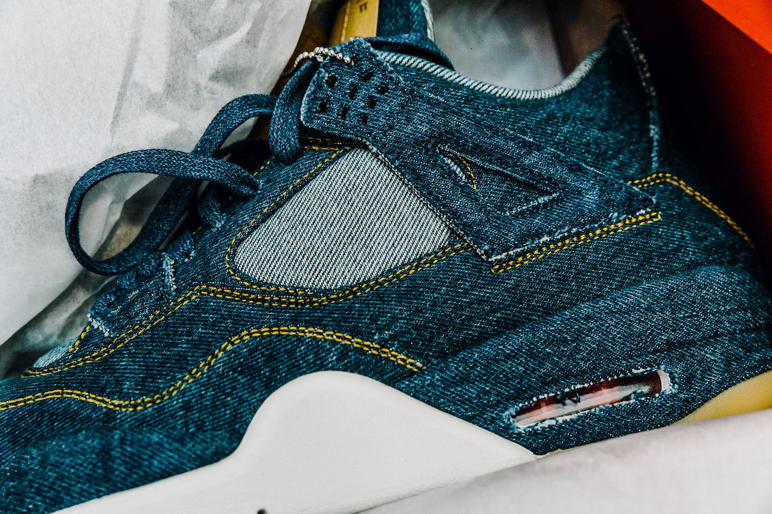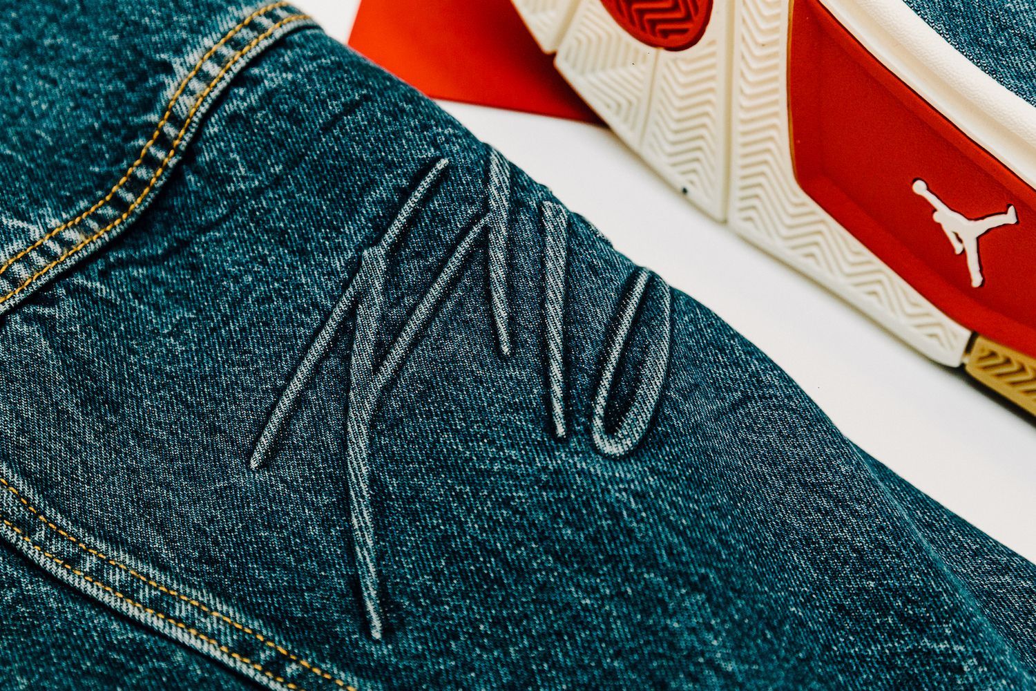 Le sneakers create da Tinker Hatfield nella nuova versione svelano una tomaia ricoperta in tessuto denim, cuciture in oro, lacci color denim, tag Levi's"Two Horse" modificato per includere il logo Jumpman, il classico Levi's Red Tab e dettagli in gomma sulla suola. L’altro elemento di questa mini capsule, la Jordan Reversible Trucker Jacket, combina l’iconico denim al taffetà del classico outfit sportivo del brand lanciato nel 1985.