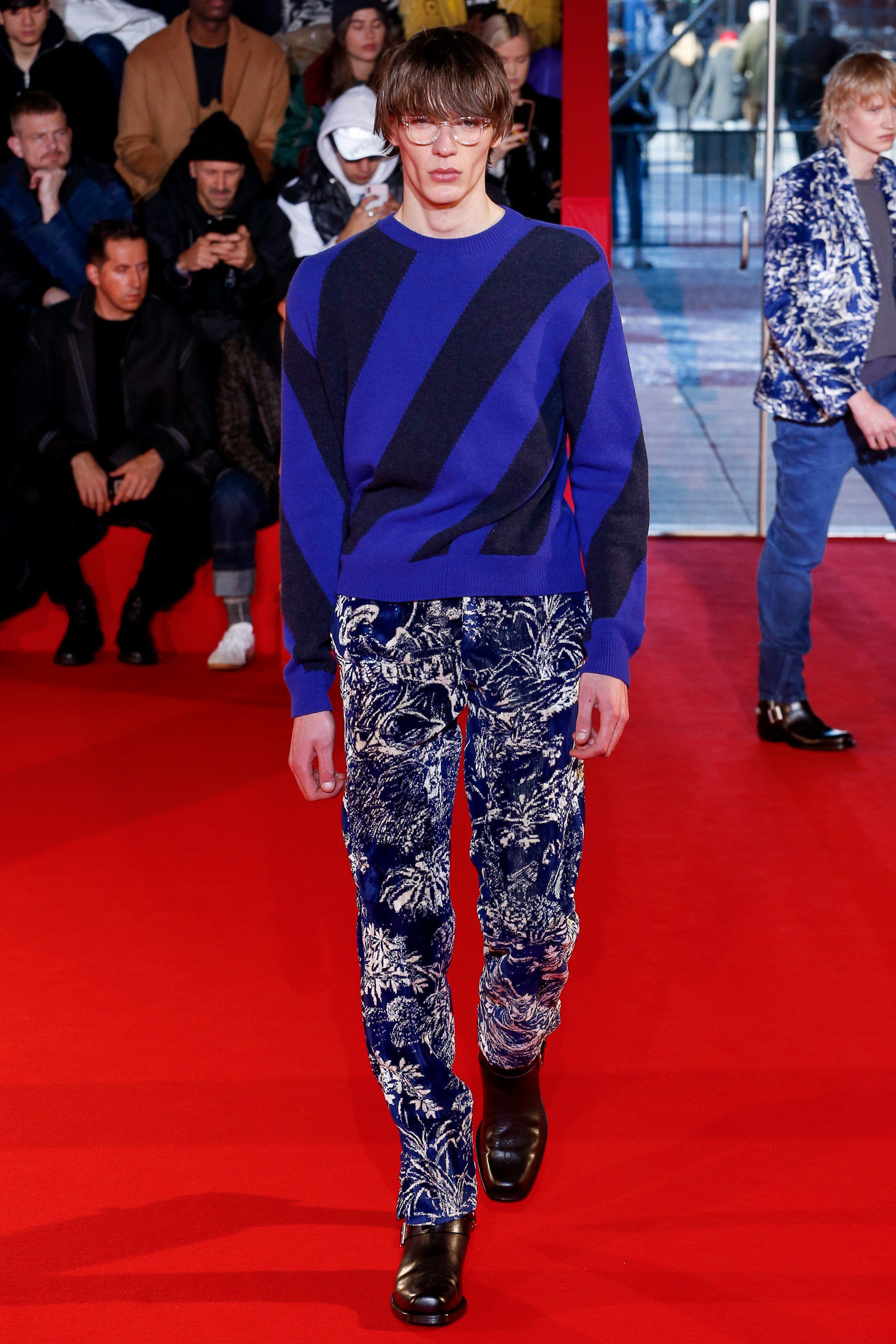 Ai piedi dei modelli spunta un paio di Virgil Abloh x Nike Air Jordan 1 in una colorazione completamente bianca, che si dice che faccia parte di una collezione femminile che arriverà nei negozi alla fine di quest'anno, ma anche un paio di Timberland in velluto bordeaux e blu scuro.
