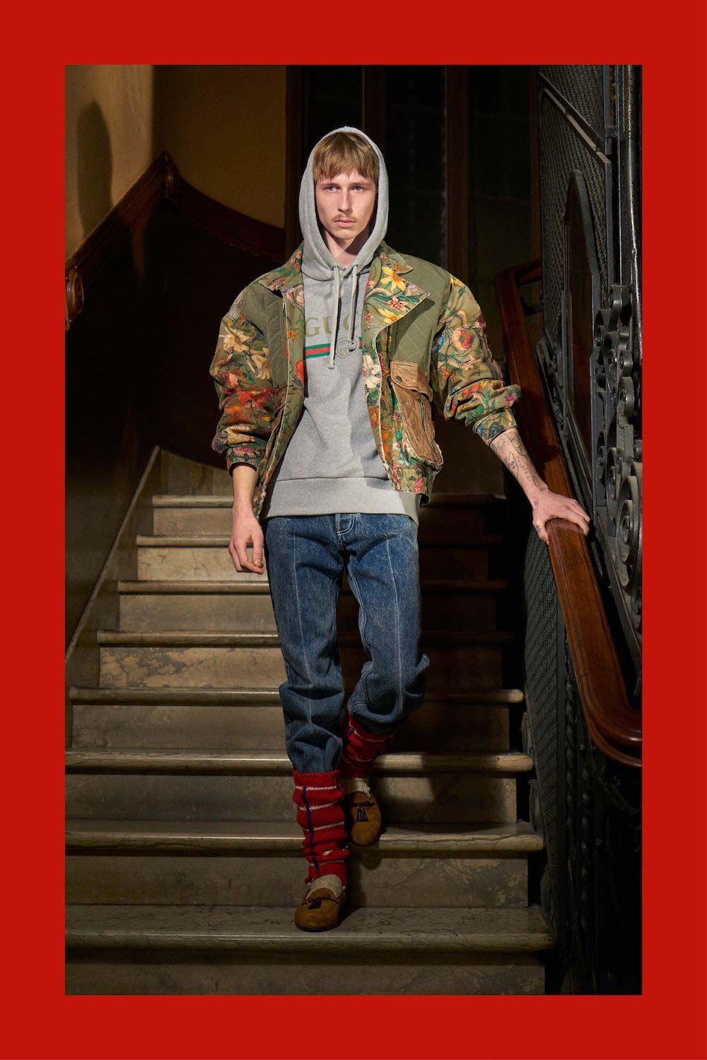 Gucci torna a presentare la sua collezione Pre-Fall 2018, mostrando questa volta i look menswear.