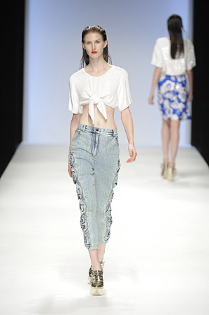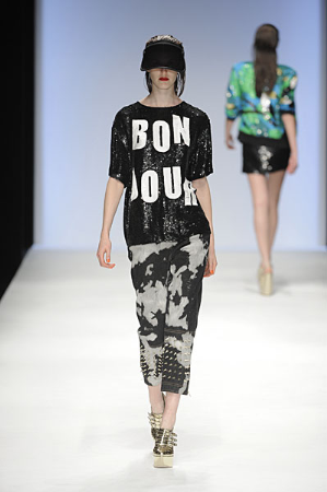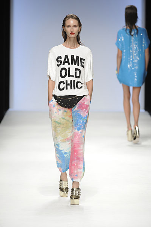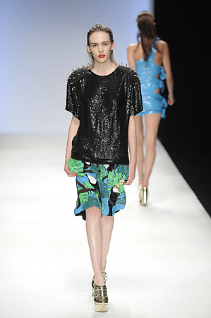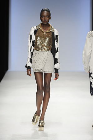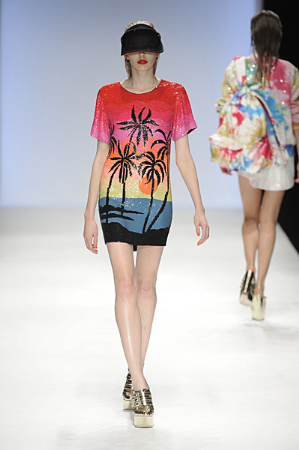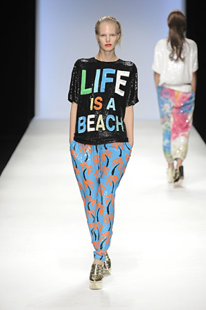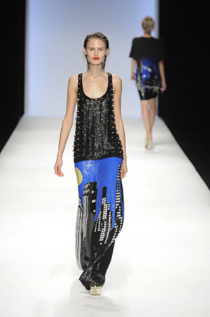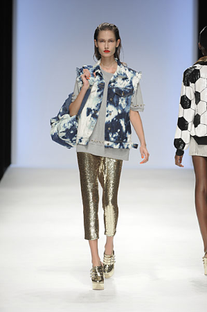 E poi ho sempre pensato che in un posto in cui si suda come la palestra, è impensabile vestirsi di grigio (colore che per eccellenza esalta gli aloni), e le tute son tutte grigie! Mai avrei pensato ad un abbigliamento smaccatamente sportivo che strizzasse l’occhio al glamour delle pailettes, e mi son dovuta ricredere quando ho visto la collezione S/S 10 di Ashish Gupta, stilista londinese che mi ha subito conquistata, perché farmi cambiare idea in ambiti riguardanti la moda non è affatto facile.