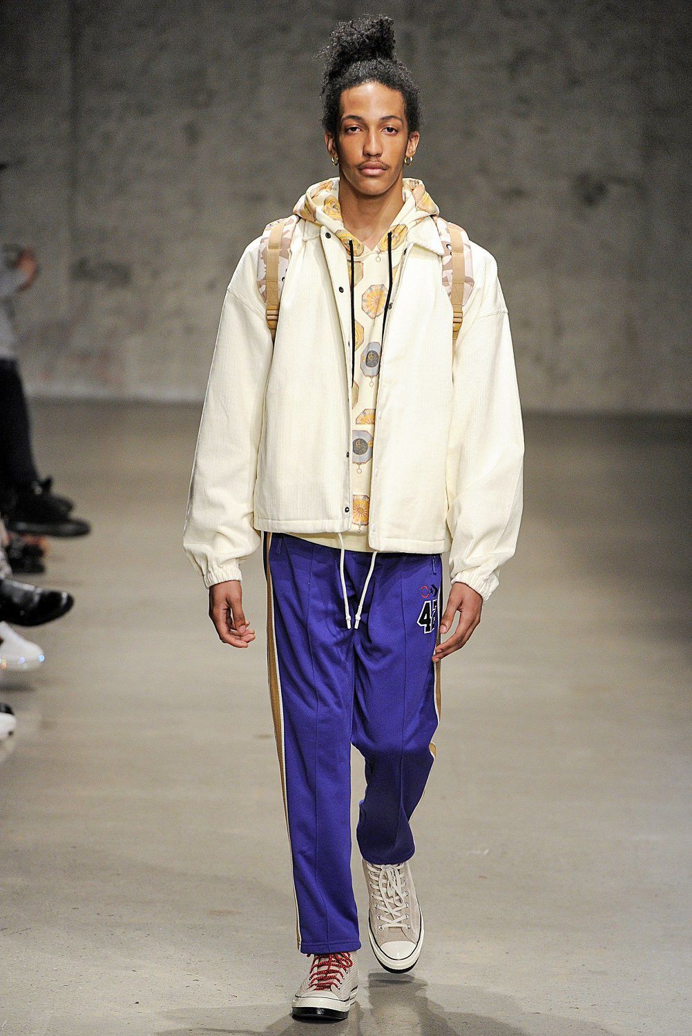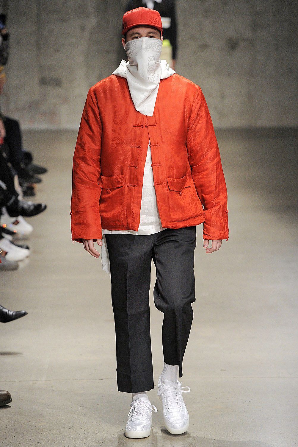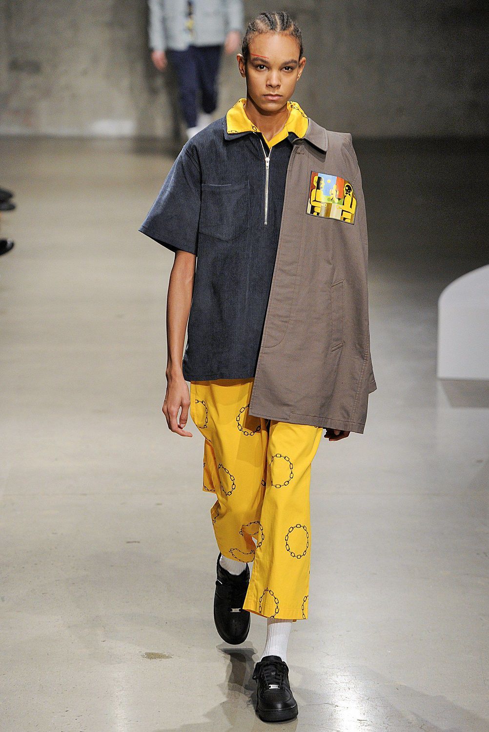 Nel front row giornalisti e fashionistas entusiasti osservano uno dopo l’altro sfilare in passerella gli amici dei due designers come Aleali May, Janae Roubleau, Tabatha McGurr, Berger, Dr. Woo, Cali Dewitt, Nigel Sylvester, Sean Wotherspoon, Matt Sennae Vernie Yeung. Questa insolita crew di modelli con indosso la serie di giacche e pantaloni a quadri, camicie a pannelli con motivi floreali e righe, bomber stile kimono e felpe, sovrapposizioni di capi, tessuti e fantasie, fotografa una coolness contemporanea che conquisterà i millenials.