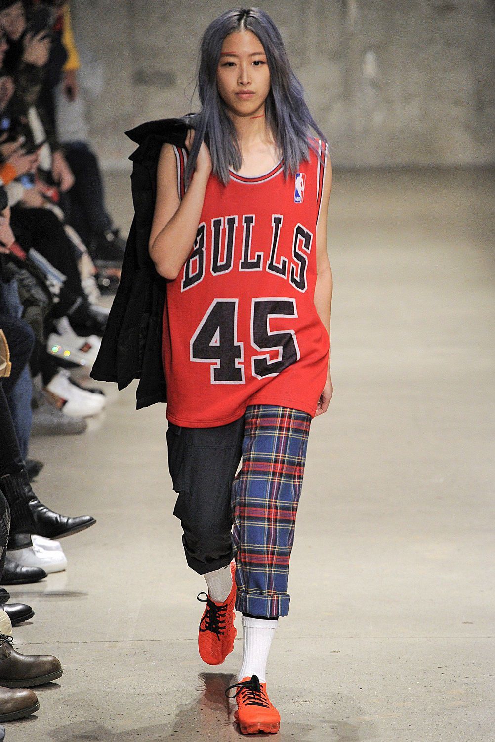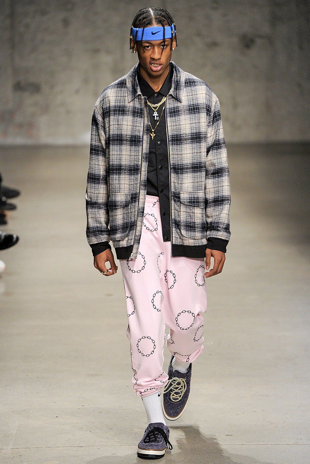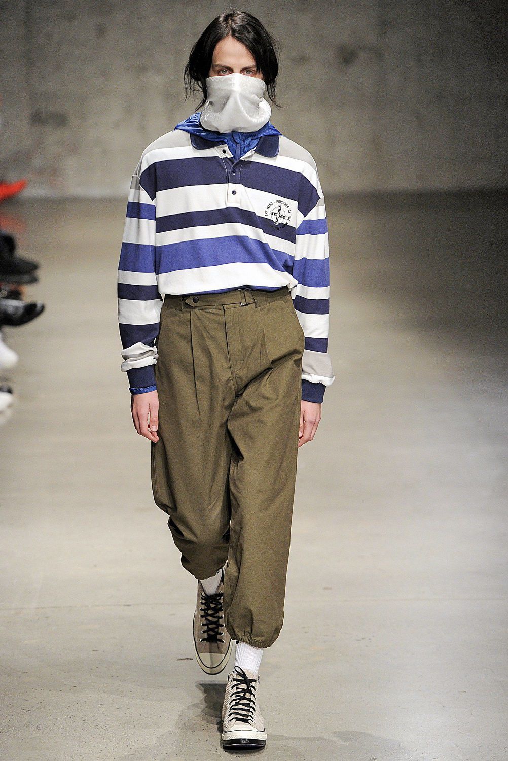 Nel front row giornalisti e fashionistas entusiasti osservano uno dopo l’altro sfilare in passerella gli amici dei due designers come Aleali May, Janae Roubleau, Tabatha McGurr, Berger, Dr. Woo, Cali Dewitt, Nigel Sylvester, Sean Wotherspoon, Matt Sennae Vernie Yeung. Questa insolita crew di modelli con indosso la serie di giacche e pantaloni a quadri, camicie a pannelli con motivi floreali e righe, bomber stile kimono e felpe, sovrapposizioni di capi, tessuti e fantasie, fotografa una coolness contemporanea che conquisterà i millenials.
