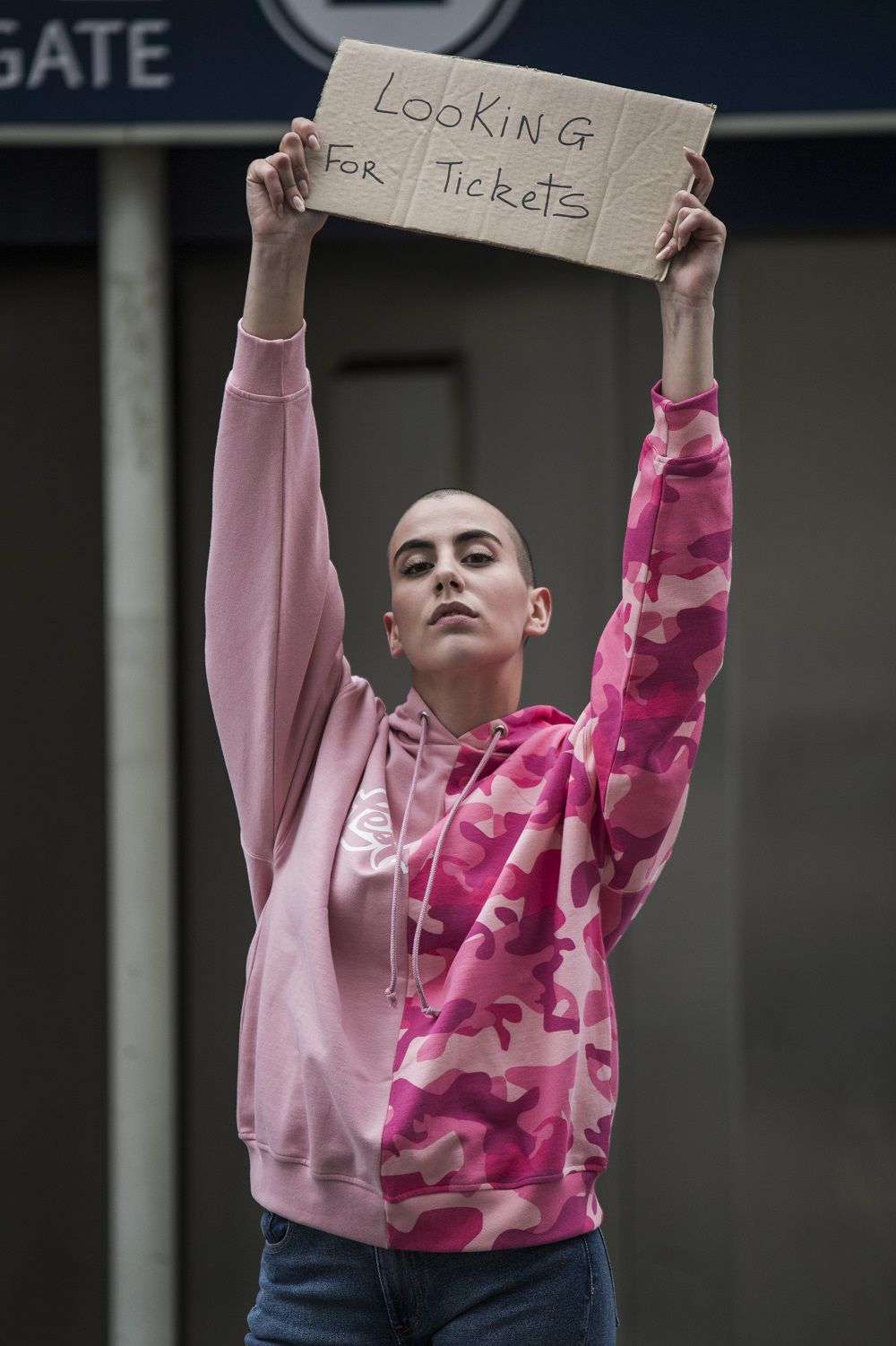 Il motivo camo viene riproposto in versione maschile e femminile, nelle varianti del blu per lui e del rosa per lei. Il logo orna l'intera collezione accompagnato da dettagli glitterati e tartan.
