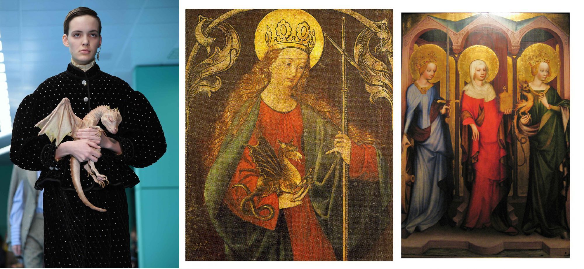 Gucci – “St. Margaret, Der Mühlhausener Altar” in Bamberg, Germany – “St. Catherine of Alexandria, St. Mary Magdalene and St. Margaret of Antioch”, by the Master of the Třeboň Altarpiece