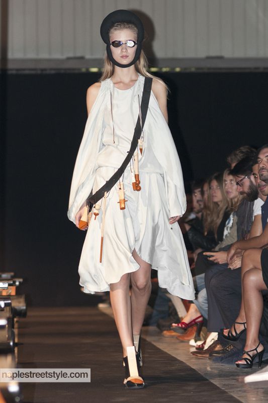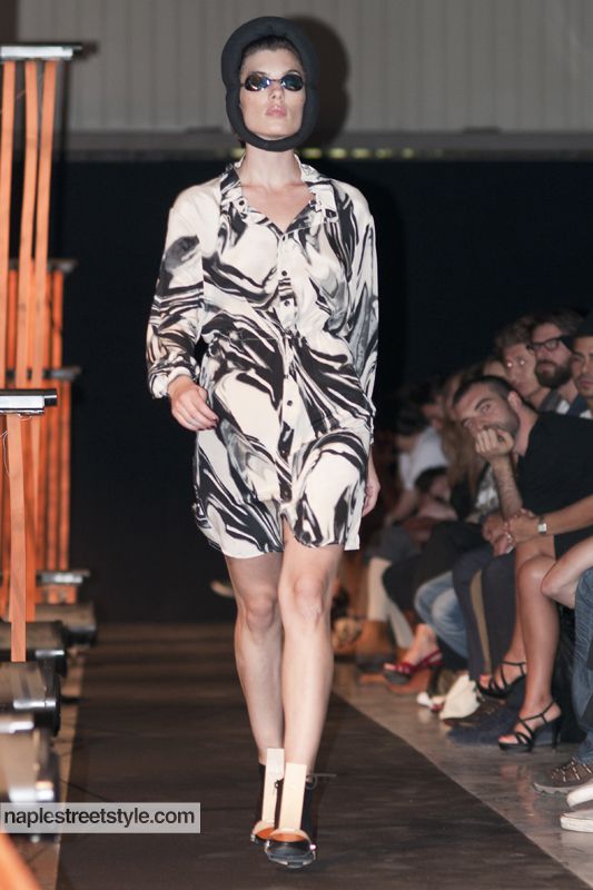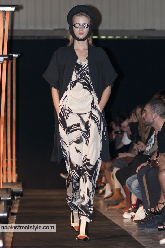 La collezione Spring/Summer 2011 di Henrik Vibskov è ambientata in un universo dominato da un drammatico ed ancora sconosciuto avvenimento che ha appena avuto luogo. Si respira un'atmosfera di incertezza, dinamica, resa mutevole da alcune intallazioni in movimento: un'atmosfera post-apocalittica. Le sagome di miscrorganismi, scialuppe di salvataggio, genitali, funghi, minerali, sono infatti l'ispirazione per stampe e silhouette. Il mood gnerale è "noir" ma con senso di ottimismo reso empirico e percepibile dagli sforzi assoluti di ricercare quello che è stato distrutto. "Abbiamo giocato con la costruzione delle fantasie, abbandonando la tecnica ed utilizzando il drappeggio per un taglio basato su temi bidimensionali" dice il designer. Un vero e proprio studio nelle forme dei capi attraverso cui traspare la bidimensionalità come la prima tra le scienze: forme pure, minime, esasperate all'ennesima potenza.