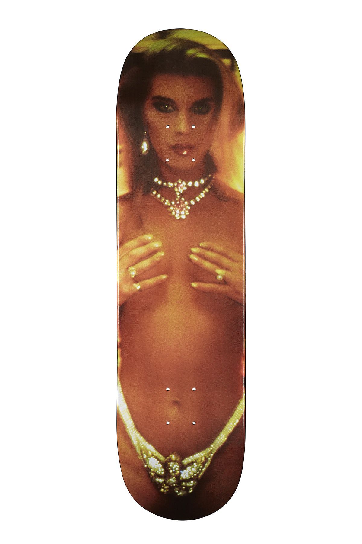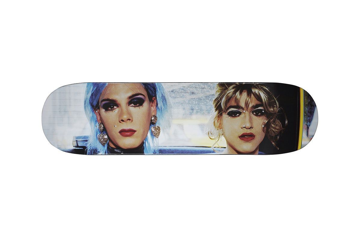 Il marchio streetstyle sceglie tre lavori realizzati dall’artista tra gli anni '70 e '90 per rendere unici coach jacket, tees e un set di tavole da skate: Misty and Jimmy Paulette in a taxi (NYC 1991), Kim in Rhinestones (Paris 1991) e Nan as a Dominatrix (Cambridge MA 1978).