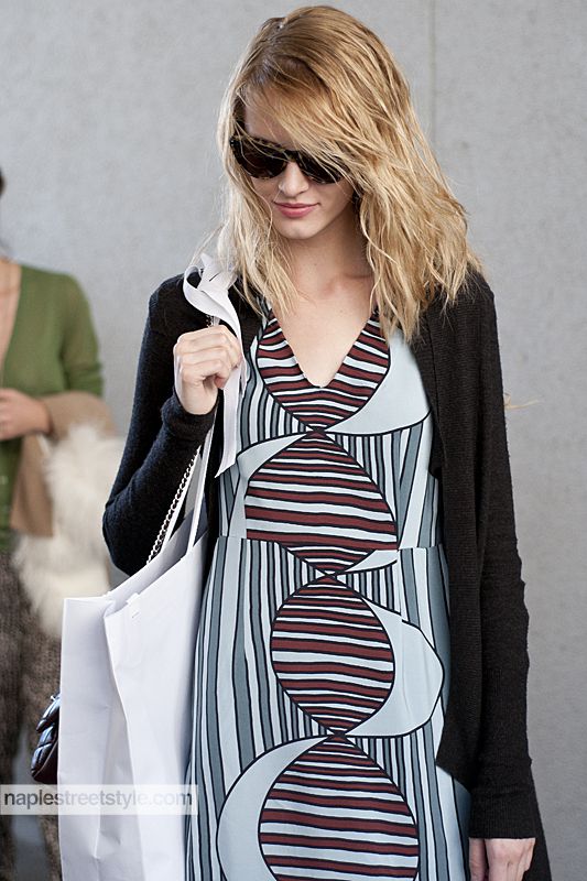 Sesto giorno, per farla breve il penultimo di questo girone di cui Dante Alighieri ha dimenticato di parlare ne "La Divina Commedia". Lo start-up è di Roberto Cavalli che presenta la sua collezione alle ore 11.30. Svestita per la festa!?Un lungo white carpet conduce alla maxi serra daylight allestita sotto l’Arco della Pace: un ingresso trionfale per una sfilata che si annuncia trionfale. Vanno in scena quarant’anni di attività di Roberto Cavalli tra moda, modelle e vip. «Una storia di apoteosi femminile, quella della donna e della sua sensualità», ricorda lo stilista e per conferma manda in passerella una fanciulla svestita per la festa. Abiti succinti, quasi ridotti ai minimi termini, ma che racchiudono tutta l’essenza dell’artigianalità.C’è molta storia del made in Italy e del made in Tuscany, ma senza compiacimento, solo con il desiderio di far vedere che se Cavalli è diventato Cavalli un motivo, forse più di uno, ci sarà.