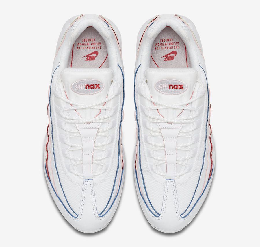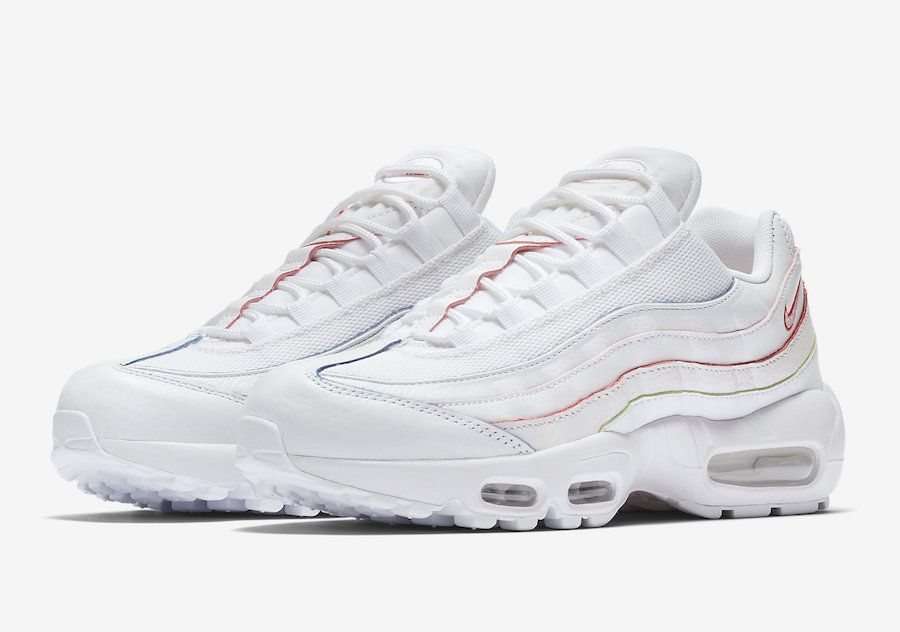 Nike presenta un nuovo paio di Air Max 95 bianche Con tocchi di rosso, arancione, verde e blu