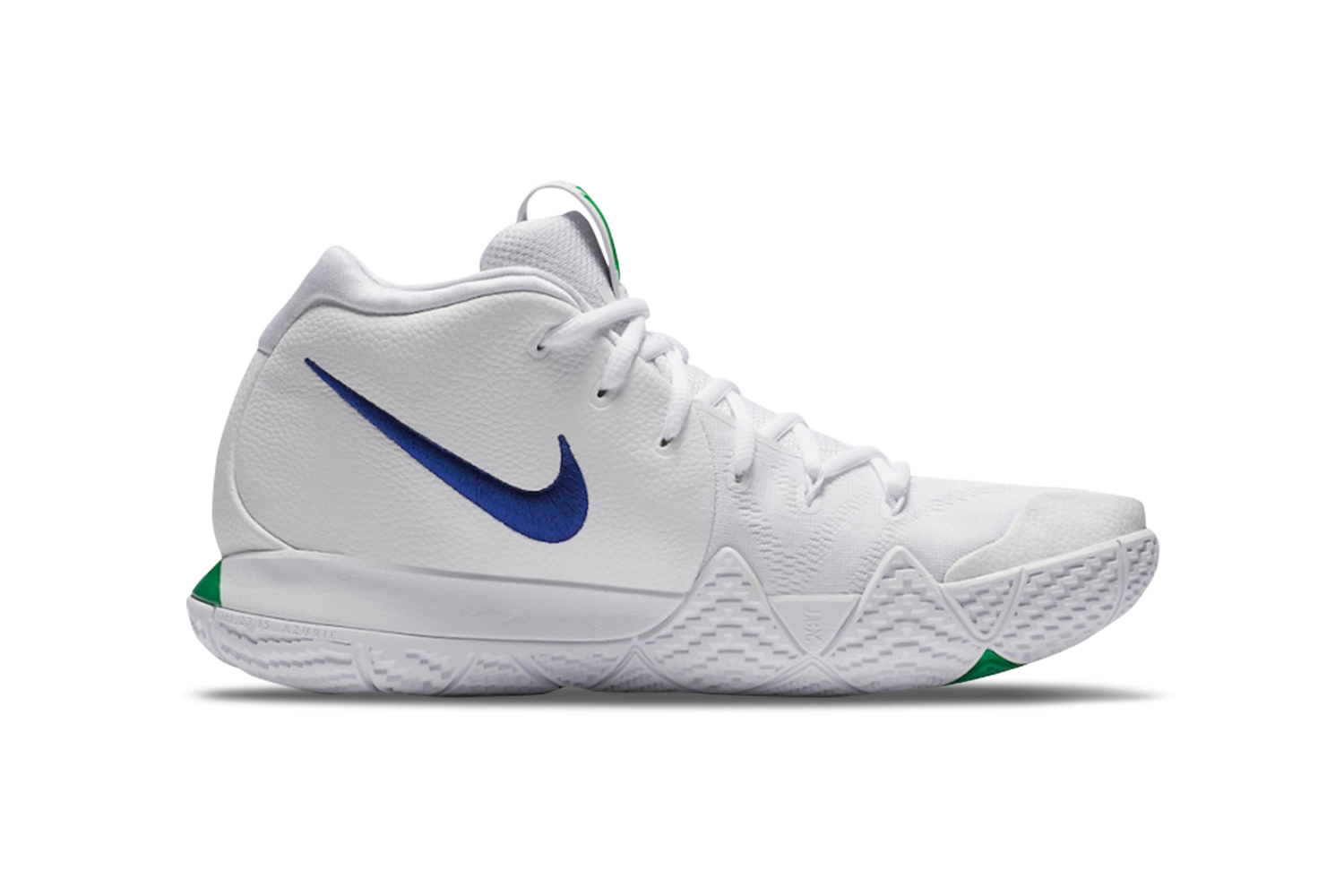 Anche se la sua stagione si è conclusa in modo prematuro, la linea 4 di Kyrie Irving continuerà in primavera e in estate. Una delle prossime chicche nella lista delle release è a base di bianco, con accenti di blu e verde brillante sui loghi, sul tallone e sulla suola. Questa sneaker sarà disponibile a partire dal 21 Aprile al prezzo di 131€ in tutti gli store Nike Basketball selezionati.