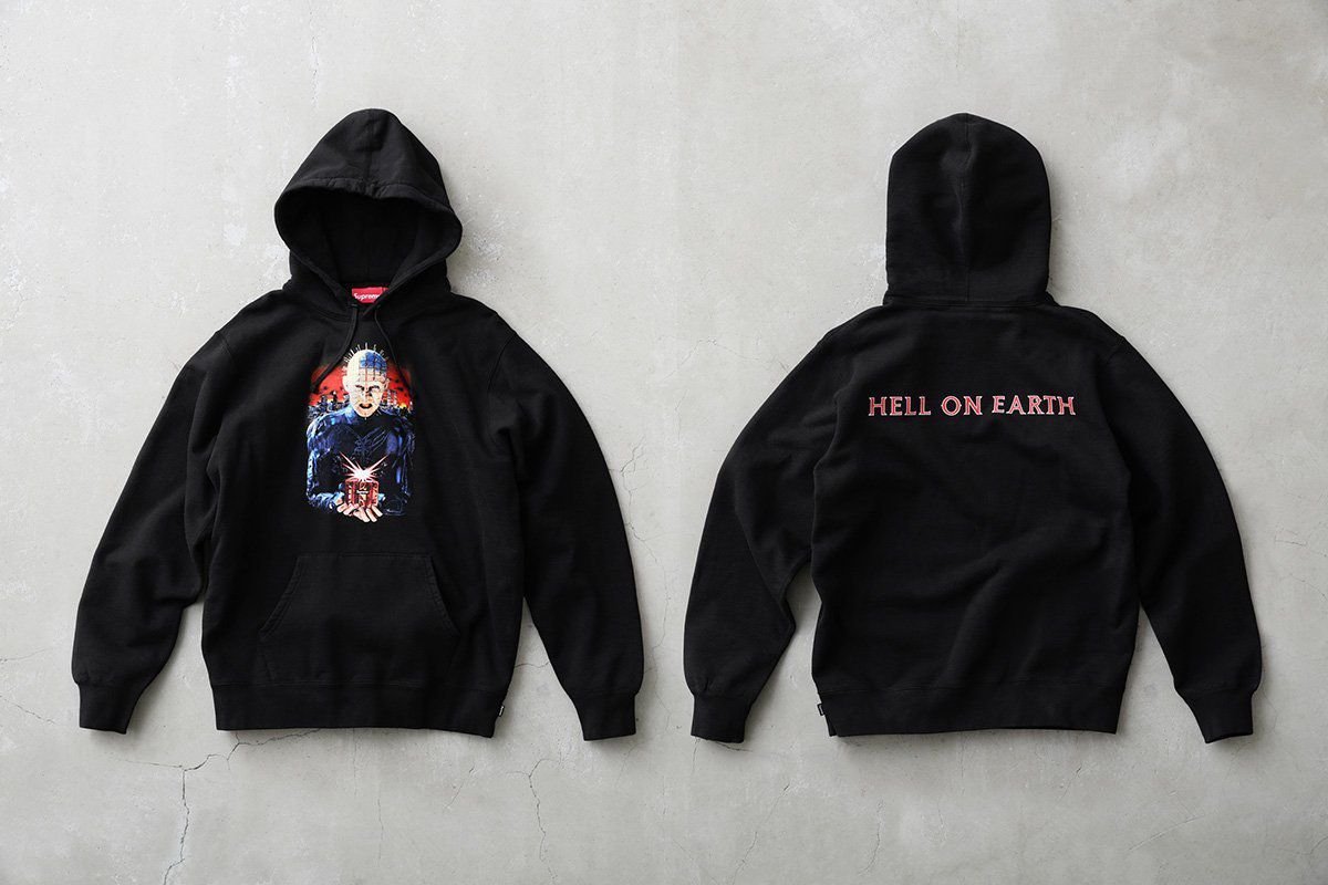 Diversi items sono stati droppati come le Supreme/Hellraiser Hell on Earth Tee, la Supreme/Hellraiser Hell on Earth Hooded Sweatshirt, i Supreme/Hellraiser Skate Pant, una football jersey, degli shorts ed infine sfiziosi accessori. Inoltre in questa decima collabo è stato rilasciato uno degli articoli più curiosi e voluti di sempre, il Supreme/Rawlings Catcher's Mask!