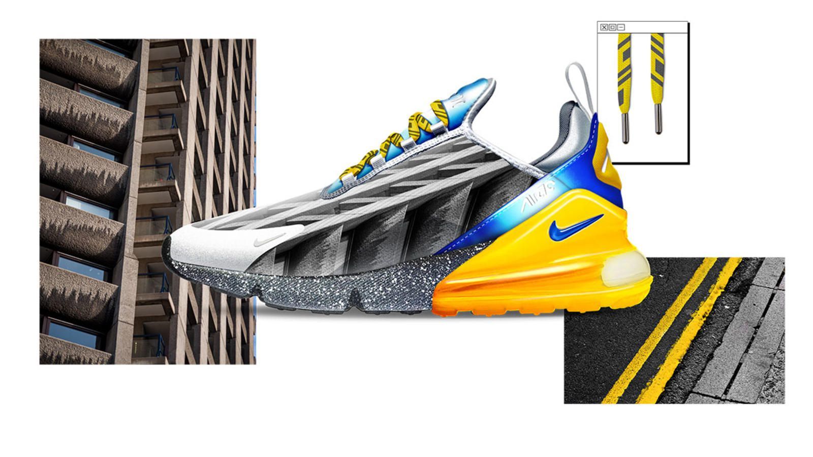 London: l'estate londinese ha ispirato l'Air Max 97 di Jasmine Lasode, mentre le migrazioni di inizio 1900 hanno spinto Reuben Charters-Bastide a creare la sua Air Max 98, mentre Shamima Ahmed ha trovato l'ispirazione nell'architettura della città per la sua Air Max 270.