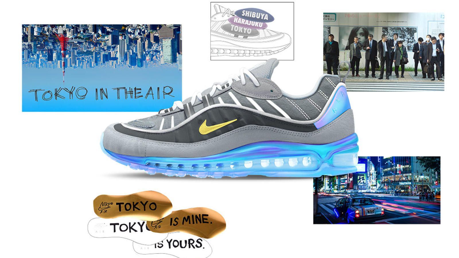 Tokyo: Nari Kakuwa ha messo Tokyo sottosopra per la sua Air Max 98, Yuta Takuman ha realizzato una Air Max 1 ispirata dai pattern presenti nella metro della città, e WOOD ha creato una Air Max 95 ispirata dagli yokai, spiriti e demoni del folklore giapponese.