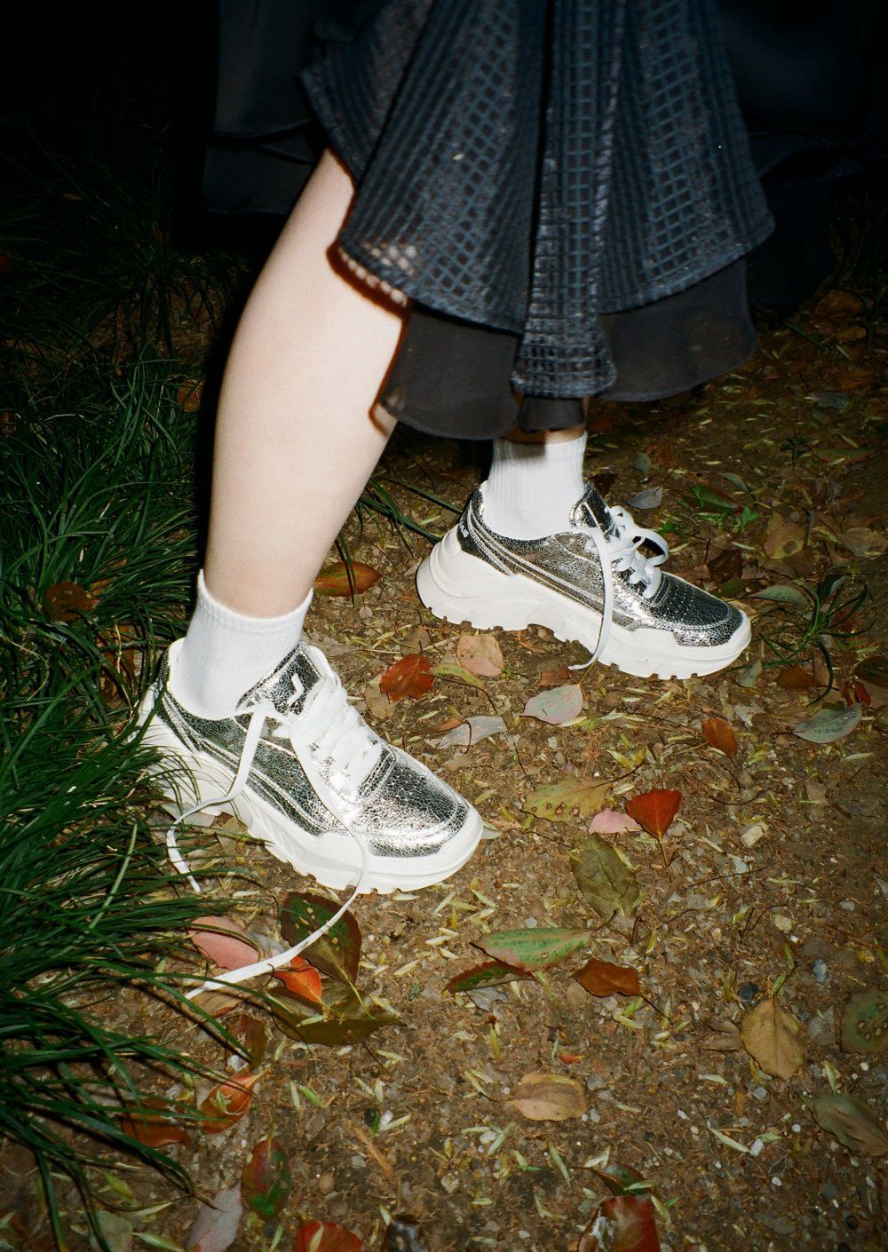 La collezione si compone di due sneaker, total black e total white, una versione in jersey grigio, e due modelli, CRASH HOLO e LIGHT HOLO, caratterizzati da un effetto metallico prodotto dalla pelle utilizzata.