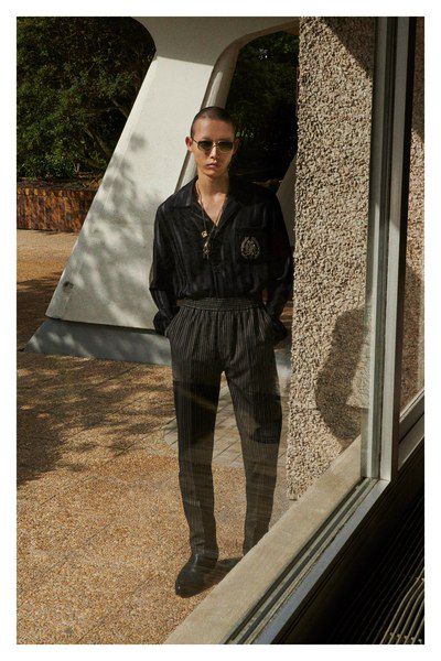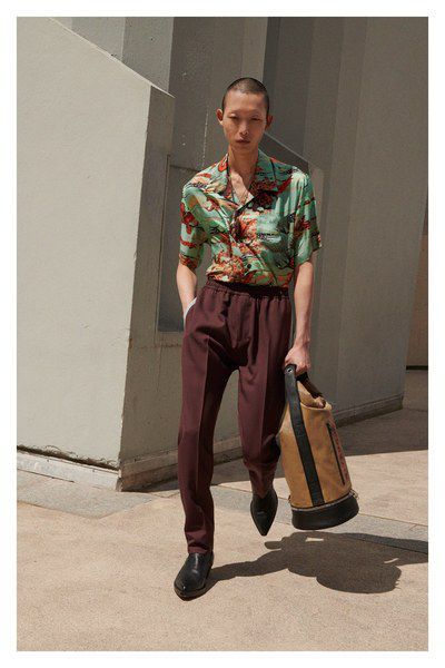 Il risultato è una combinazione accattivante tra abbigliamento sportivo e pezzi orientali, caratterizzata da stampe grafiche, forme a V, camicette con volant, pantaloni da ginnastica, top second skin in tessuti tecnici, giacche in jersey con zip, gonne di pelle sotto il ginocchio, camicie grafiche a collo piatto in stile cubano e accenni di colori vibranti come fucsia, blu cobalto, giallo o rosso.