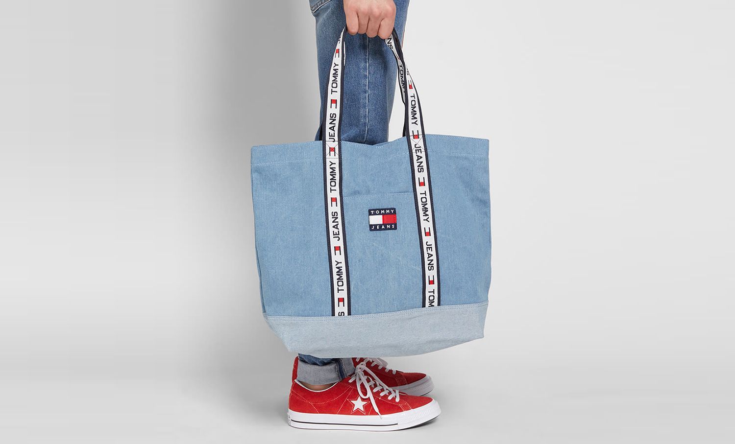Tutti gli articoli, dai jeans alle giacche in denim, dalle polo alle giacche della tuta, dalle borse a tracolla ai bucce hats, sono caratterizzati dall'iconico logo blu, rosso e bianco di Tommy Jeans.