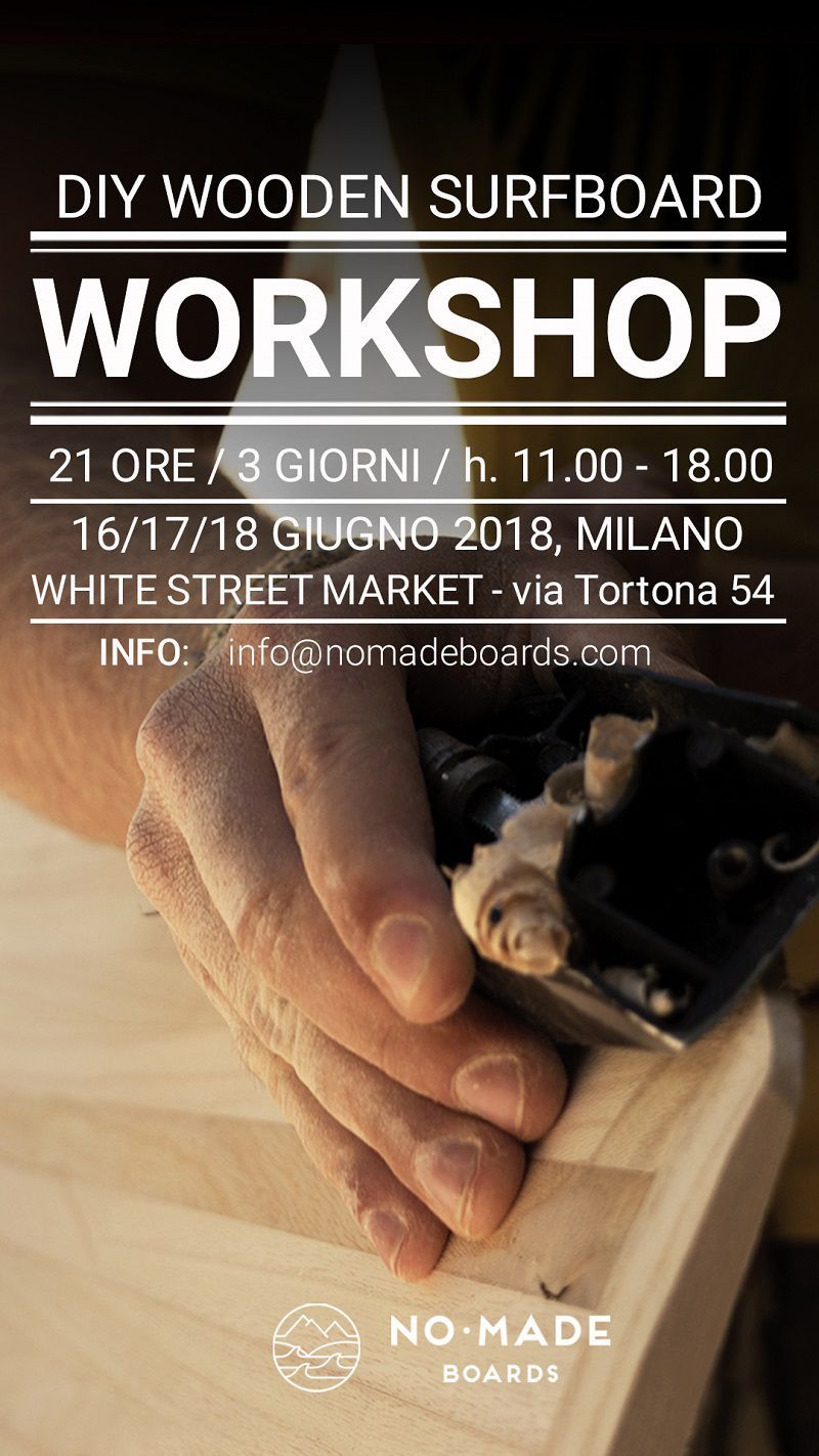 Ultimo protagonista di WSM sarà il team di No-Made Boards. Label che, partendo dalla passione sfrenata di Federico Celli, Federica Ciarrocchi ed Eugenio Celli per il serf, abbraccia il tema della sostenibilità fondando la produzione di tavole sull'utilizzo esclusivo del legno, per un minor impatto ambientale possibile. Durante le giornate del 16, 17 e 18 giugno, partecipando al workshop Wooden Surfboard, in via Tortona 54, sarà possibile realizzare una speciale tavola personalizzata, da ideare e costruire a piacimento, liberando creatività di ciascuno con l'aiuto di No-Made Boards.