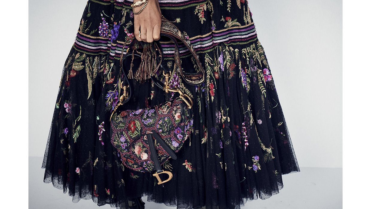 Immancabili le iconiche Saddle Bag, la tracolla J’Adior e la Book Tote che, per l’occasione, si conformano al mood etnico grazie a pattern folcloristici e ricami colorati.