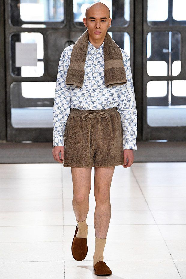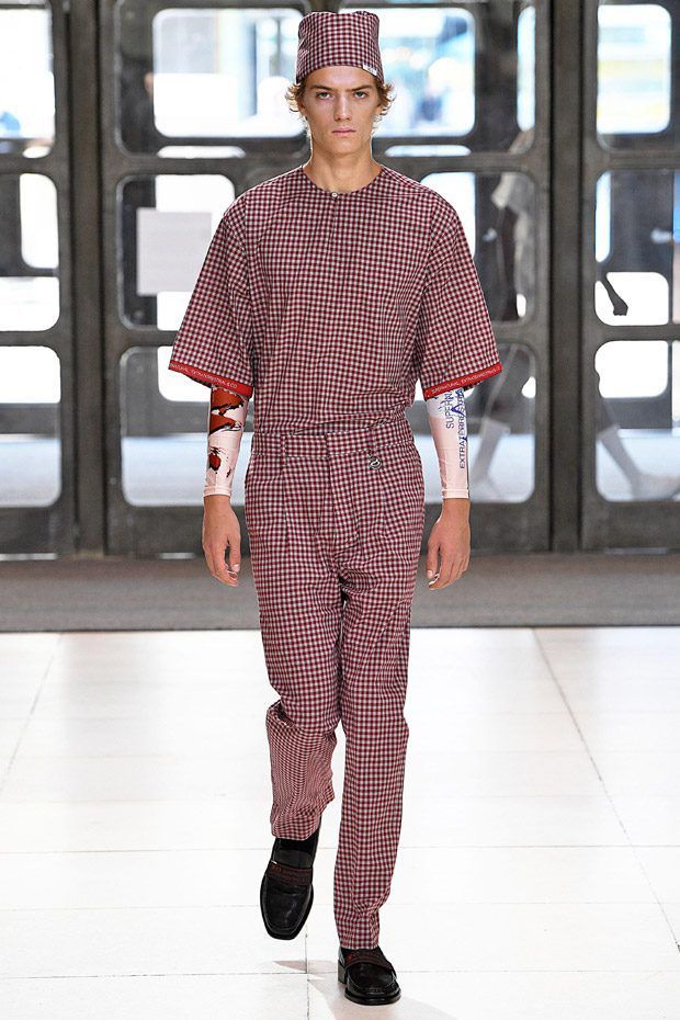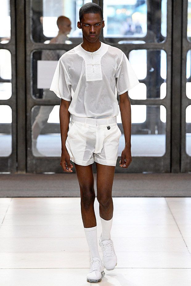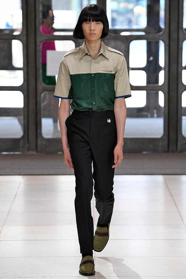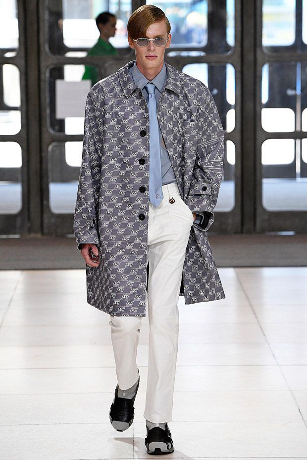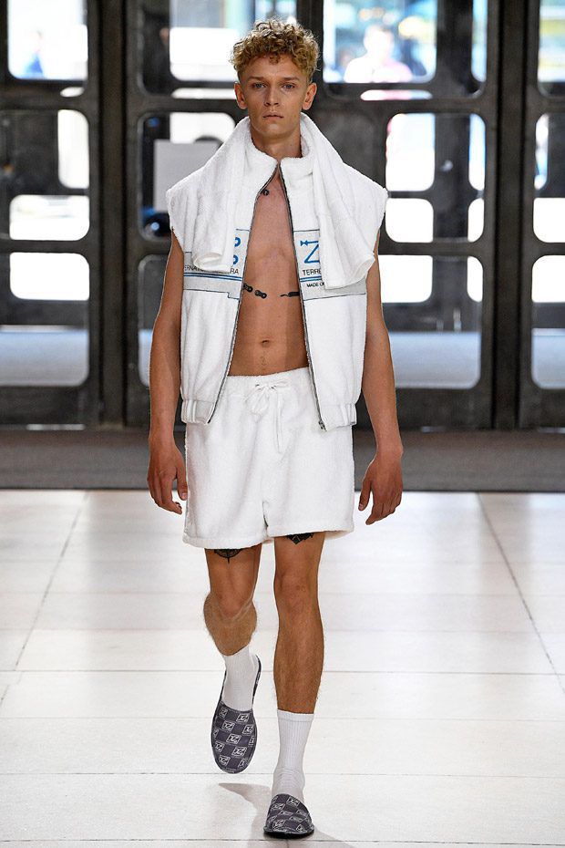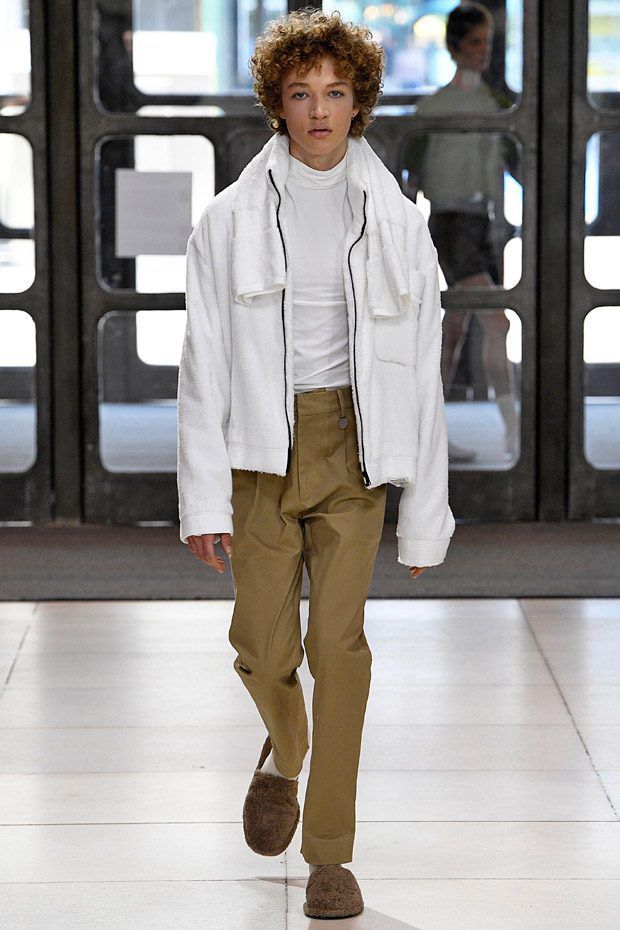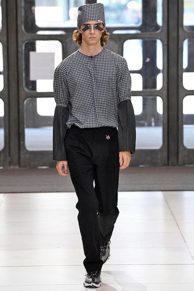 L’estetica sartoriale sportswear, che lo contraddistingue da tempo, fatta di abiti da lavoro, si arricchisce di tessuti futuristici, tavolozze cromatiche lavate con l'acido e trame contaminate; ma sono i dettagli, ispirati alle protesi chirurgiche e opera della truccatrice Isamaya Ffrench, a sorprendere.