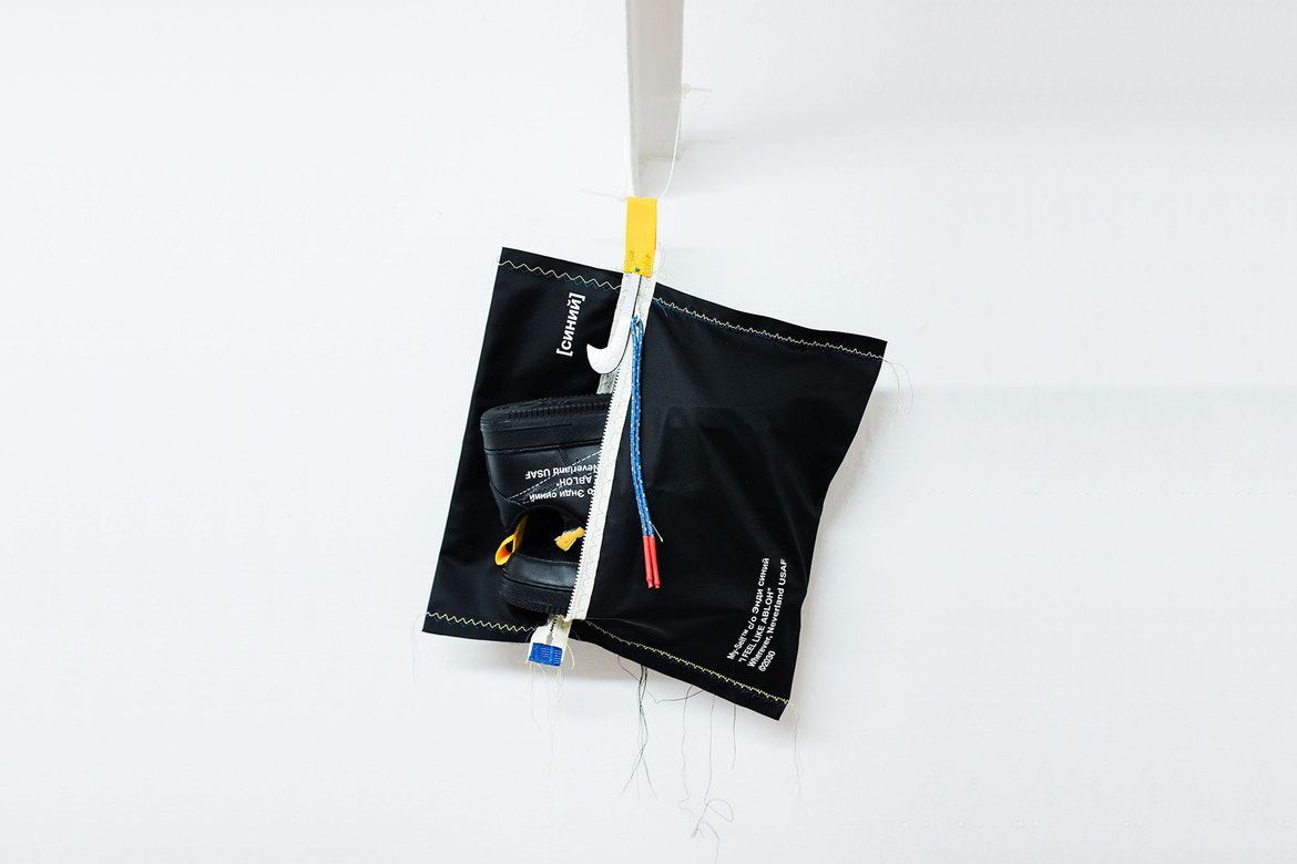 Sulla parte laterale delle scarpe noterete la criptica scritta “My-Self c/o Энди синий/ I FEEL LIKE ABLOH/Wherever, Neverland USAF/ © 2030” che mixa inglese e cirillico.