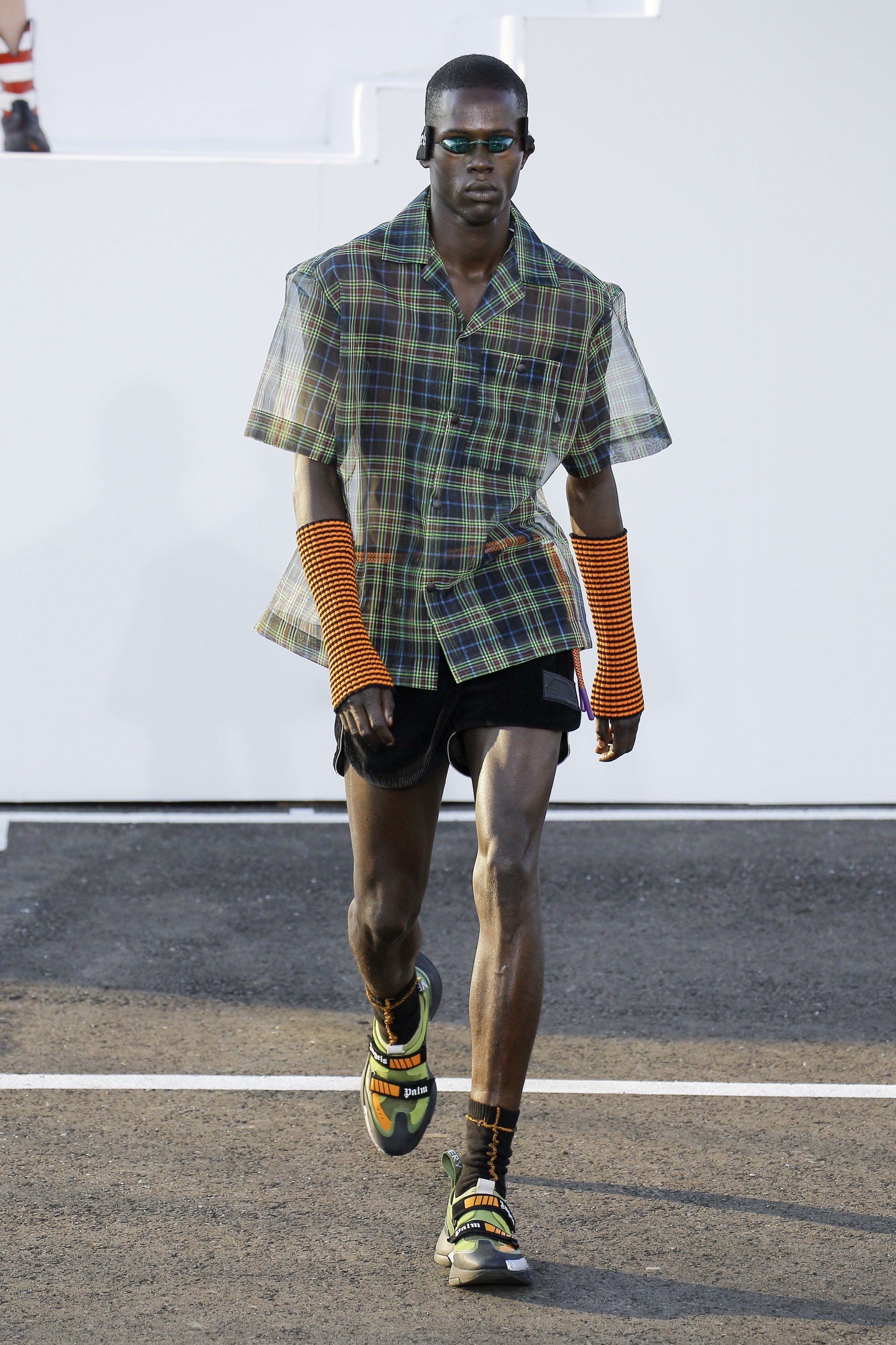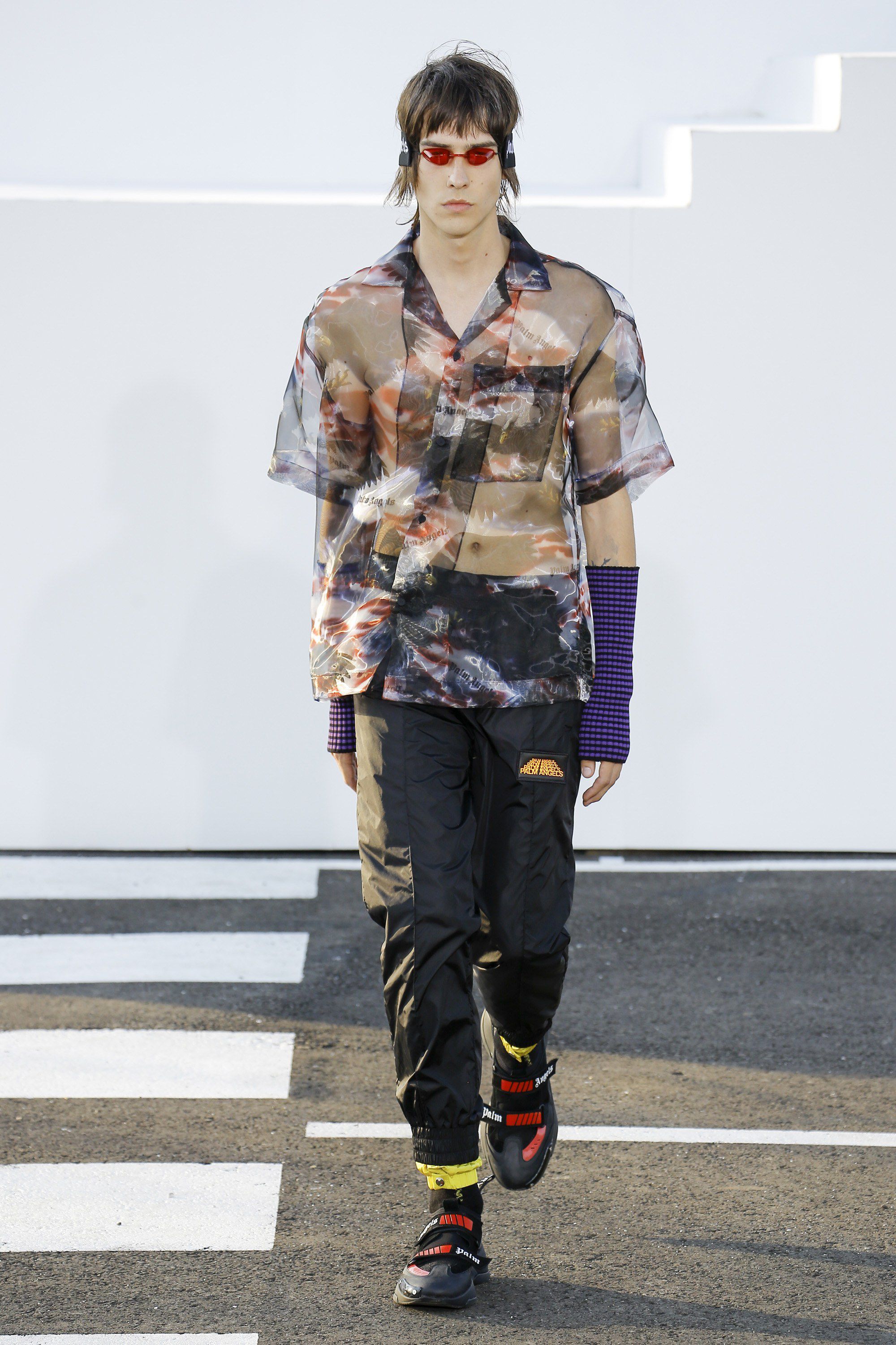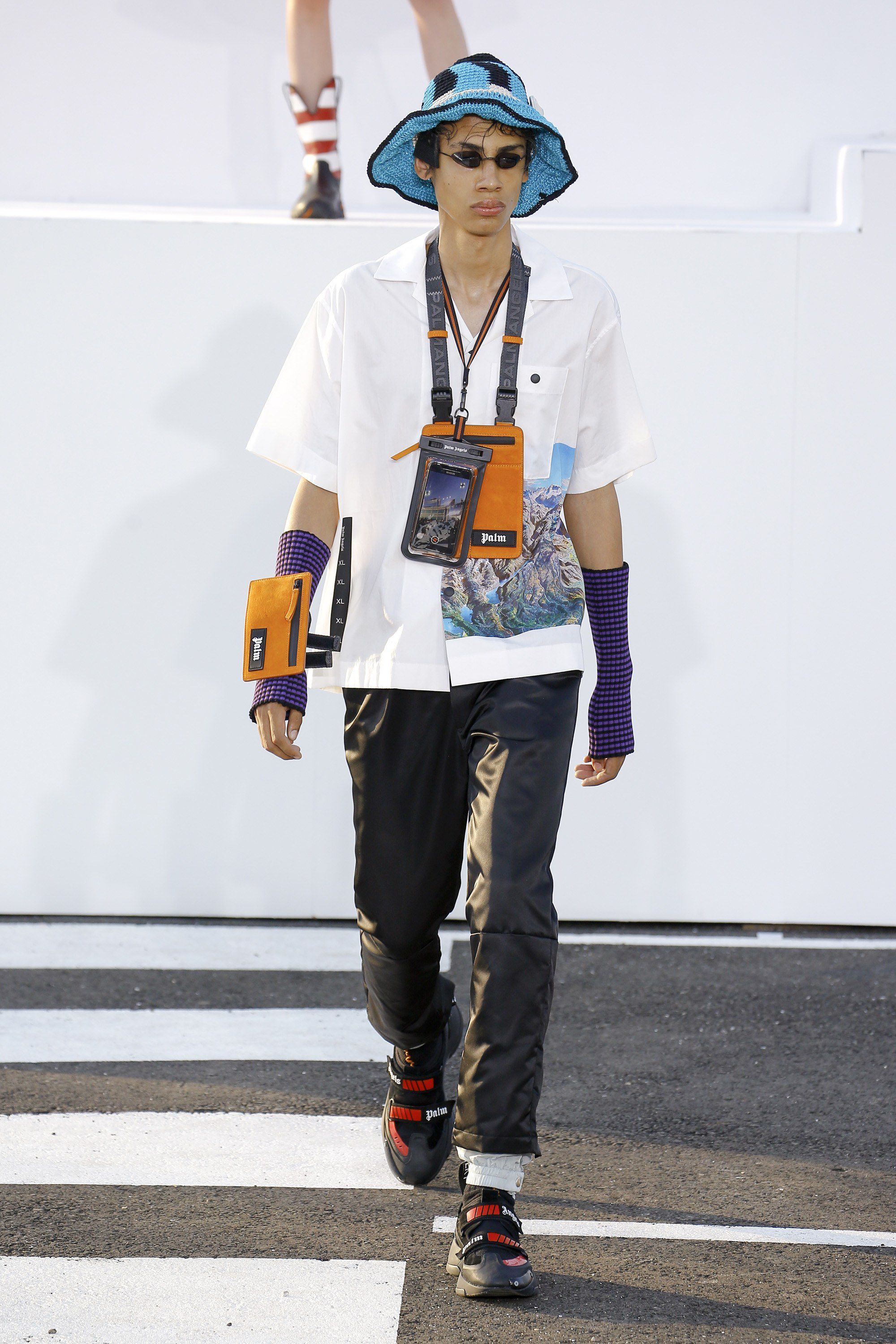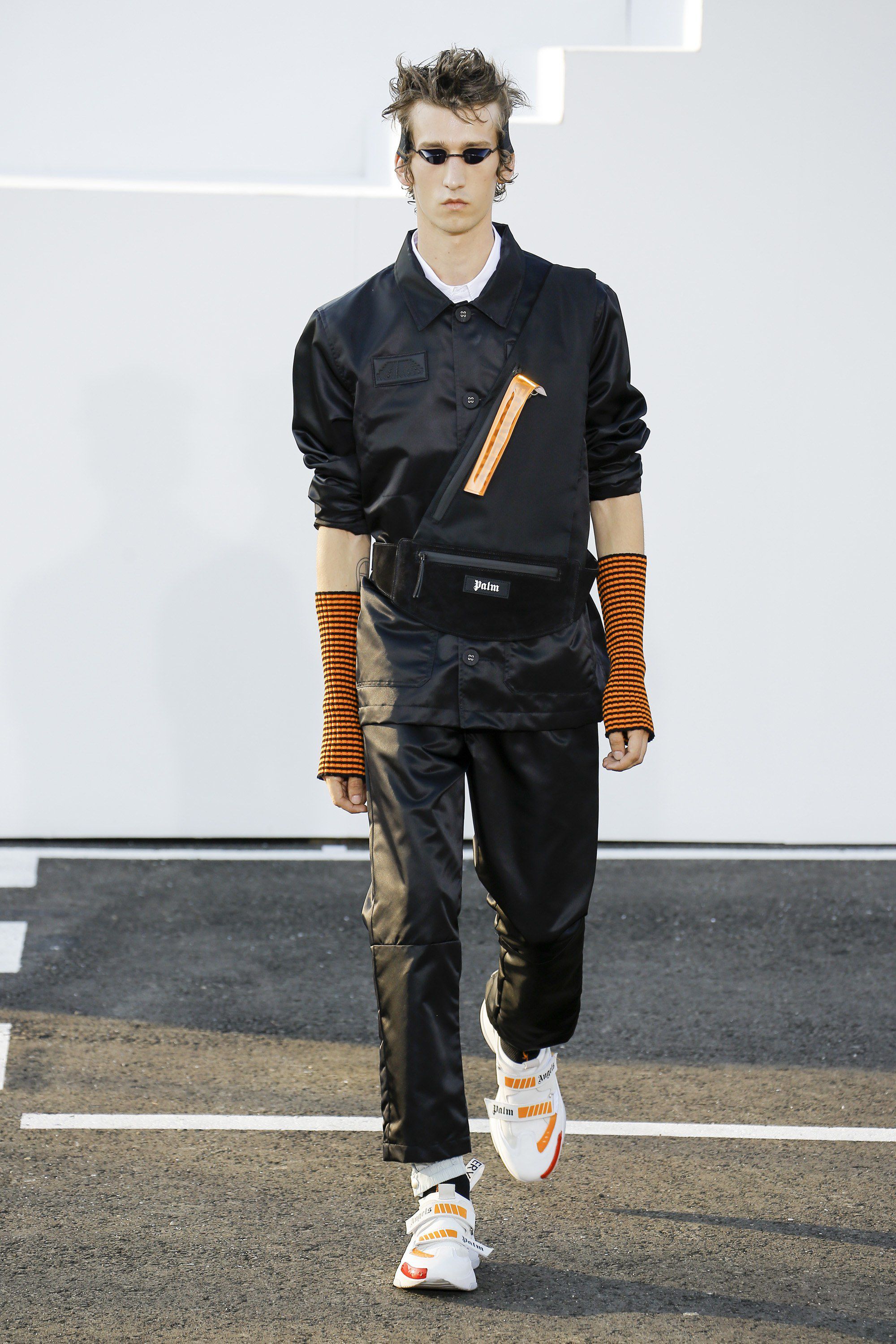 Palm Angels porta in passerella un athleisure distorto, dalla forte attitude streetwear e underground, con elementi "rave" (forse un link alla collaborazione con Swedish House lanciata alla Miami Music Week) e dettagli, come gli occhiali da sole micro stile Matrix dal sapore sci-fi.