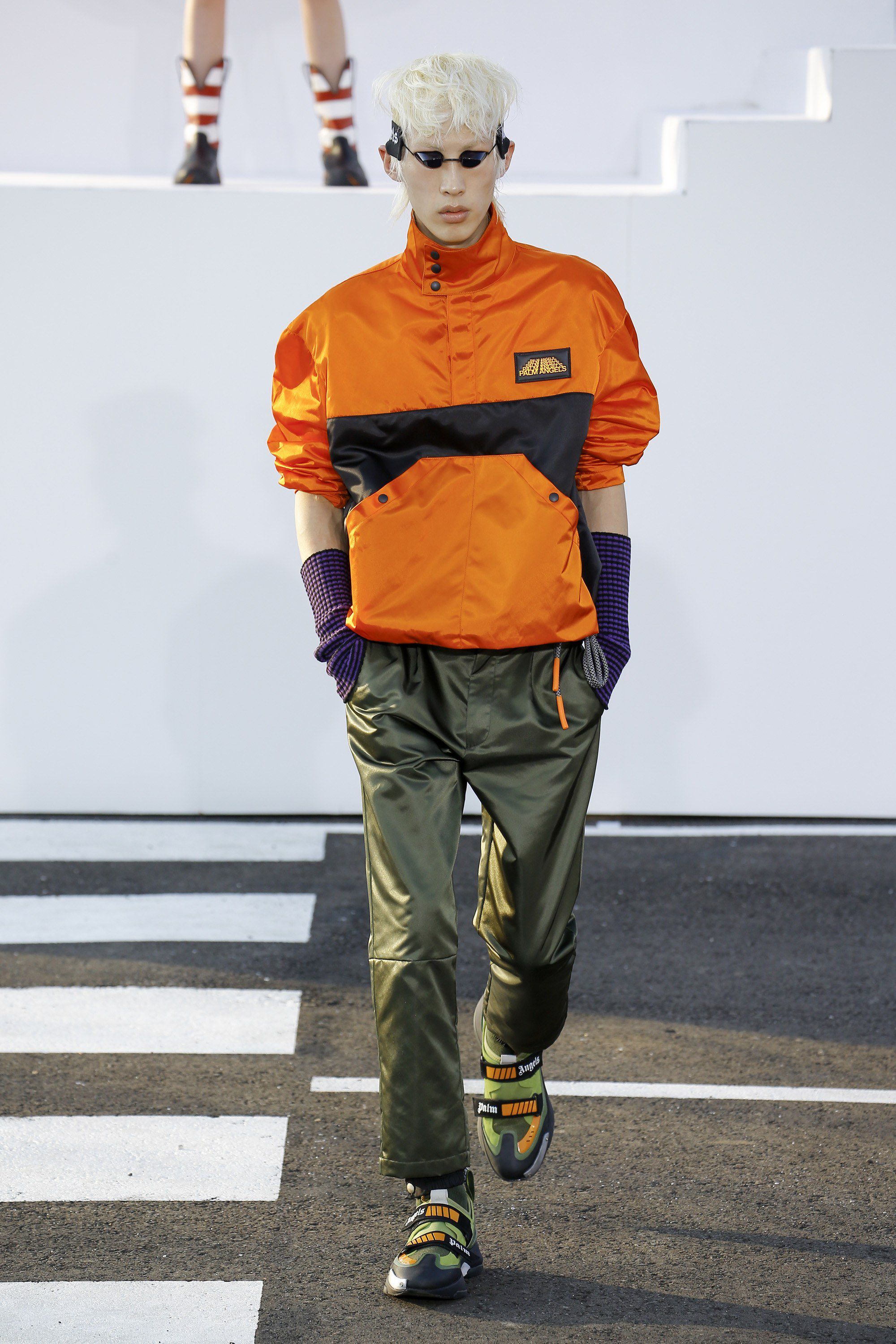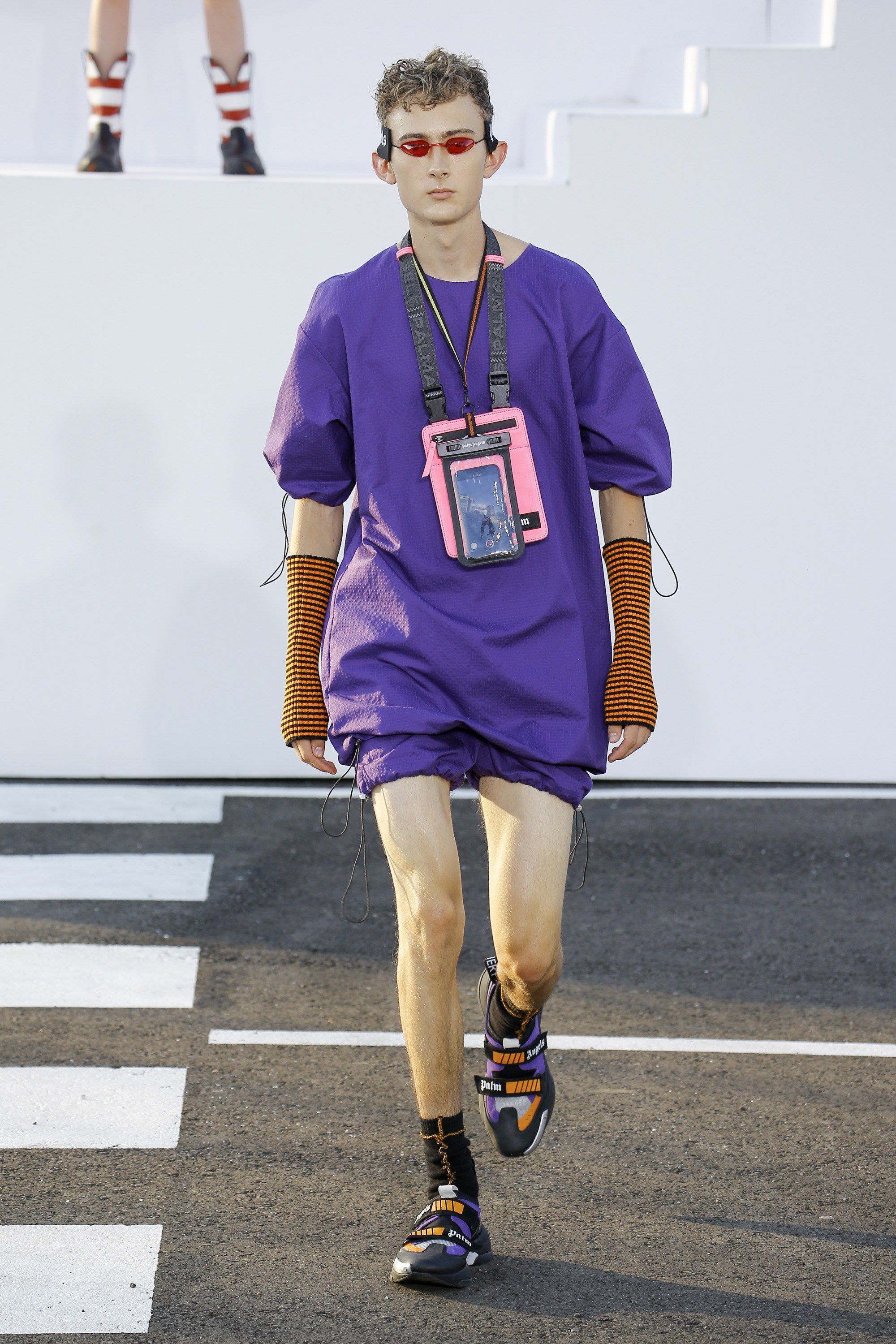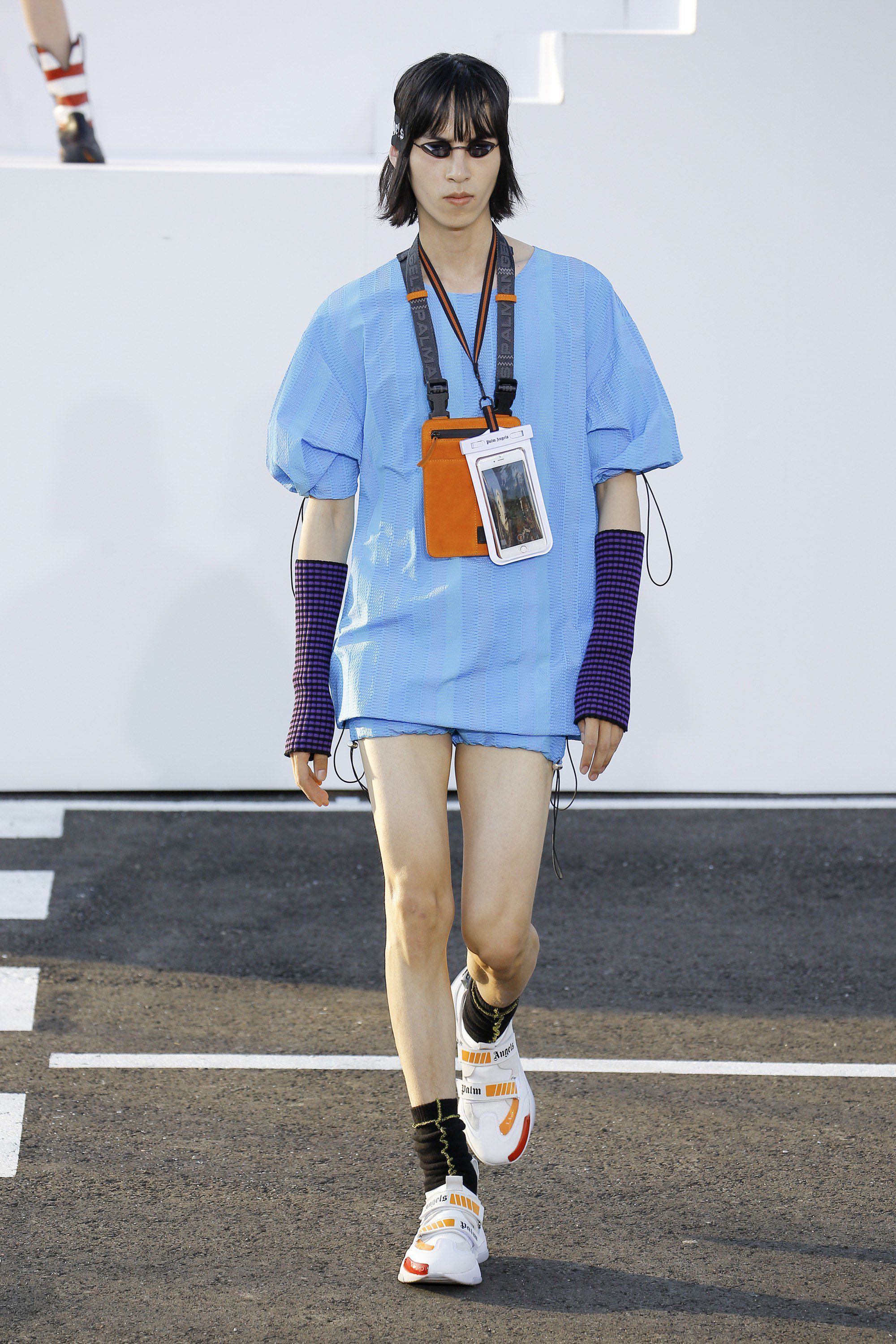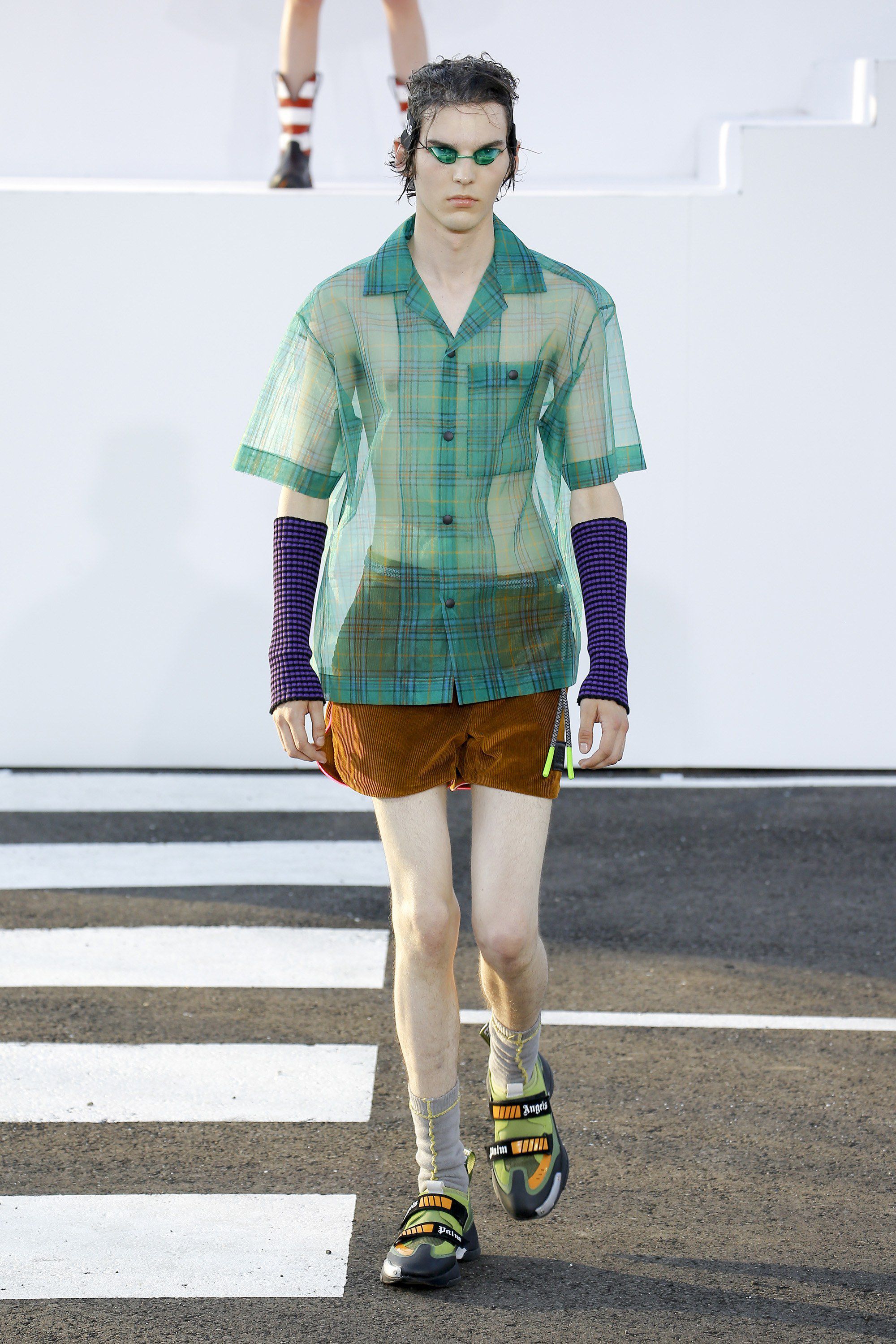 Palm Angels porta in passerella un athleisure distorto, dalla forte attitude streetwear e underground, con elementi "rave" (forse un link alla collaborazione con Swedish House lanciata alla Miami Music Week) e dettagli, come gli occhiali da sole micro stile Matrix dal sapore sci-fi.
