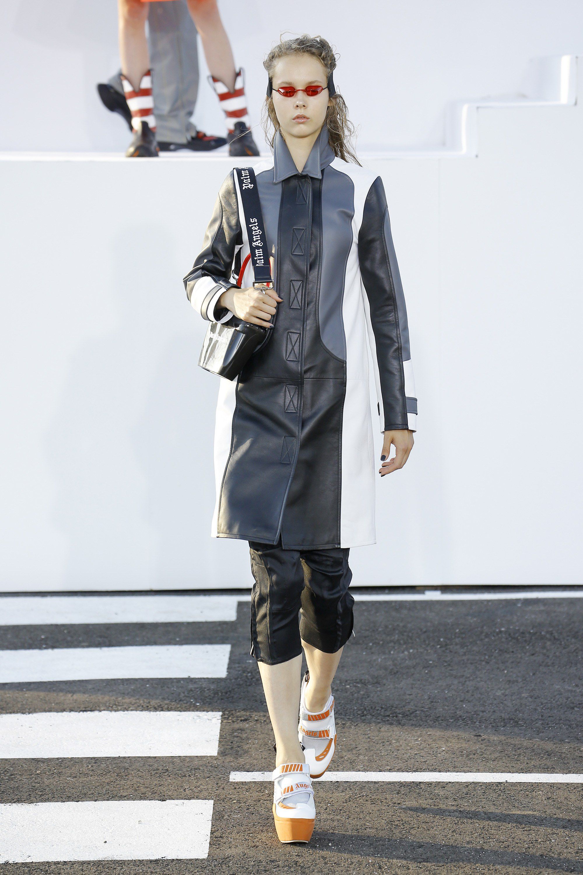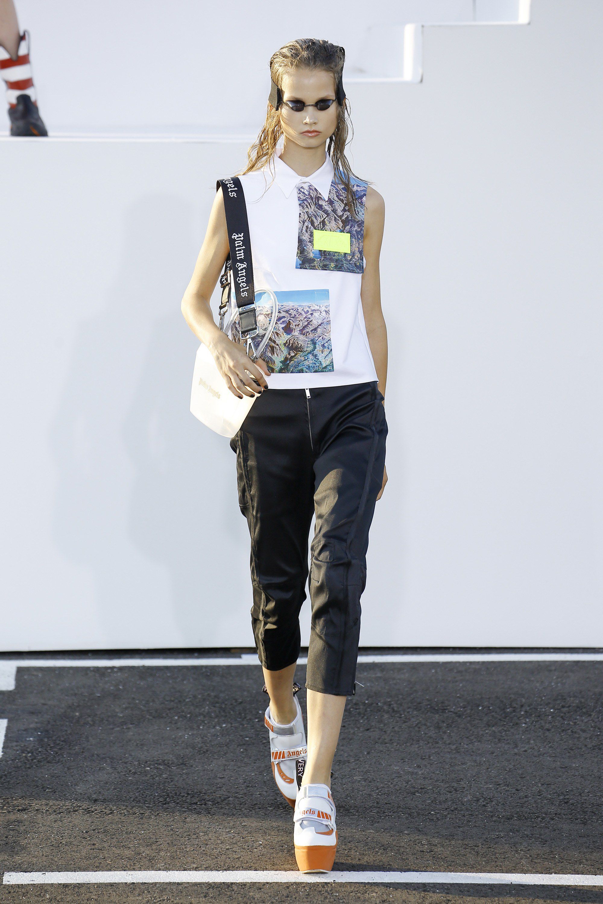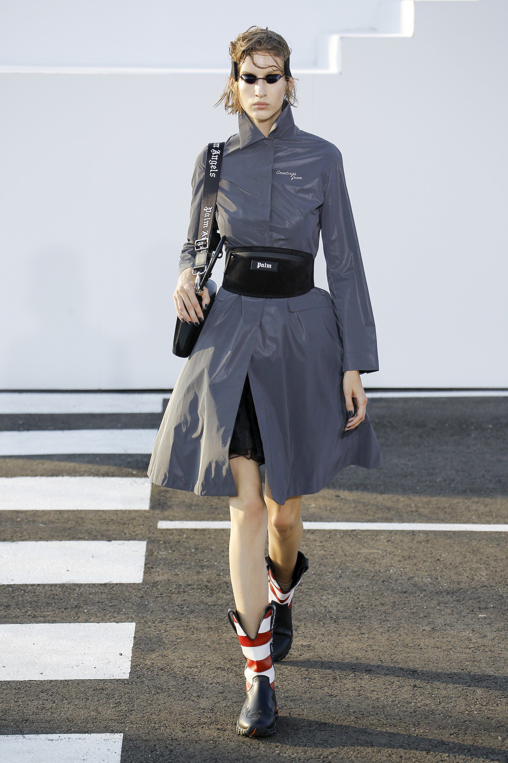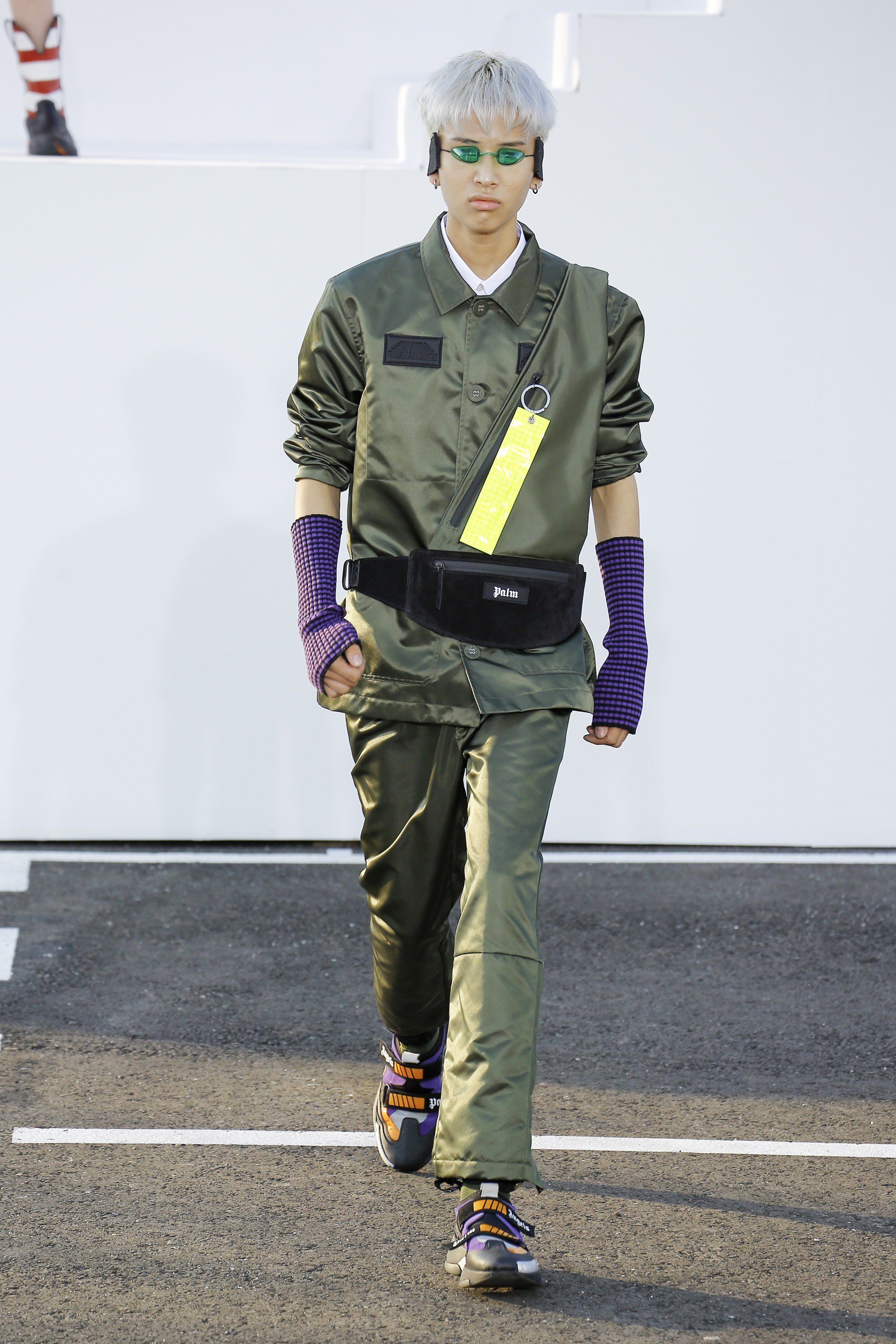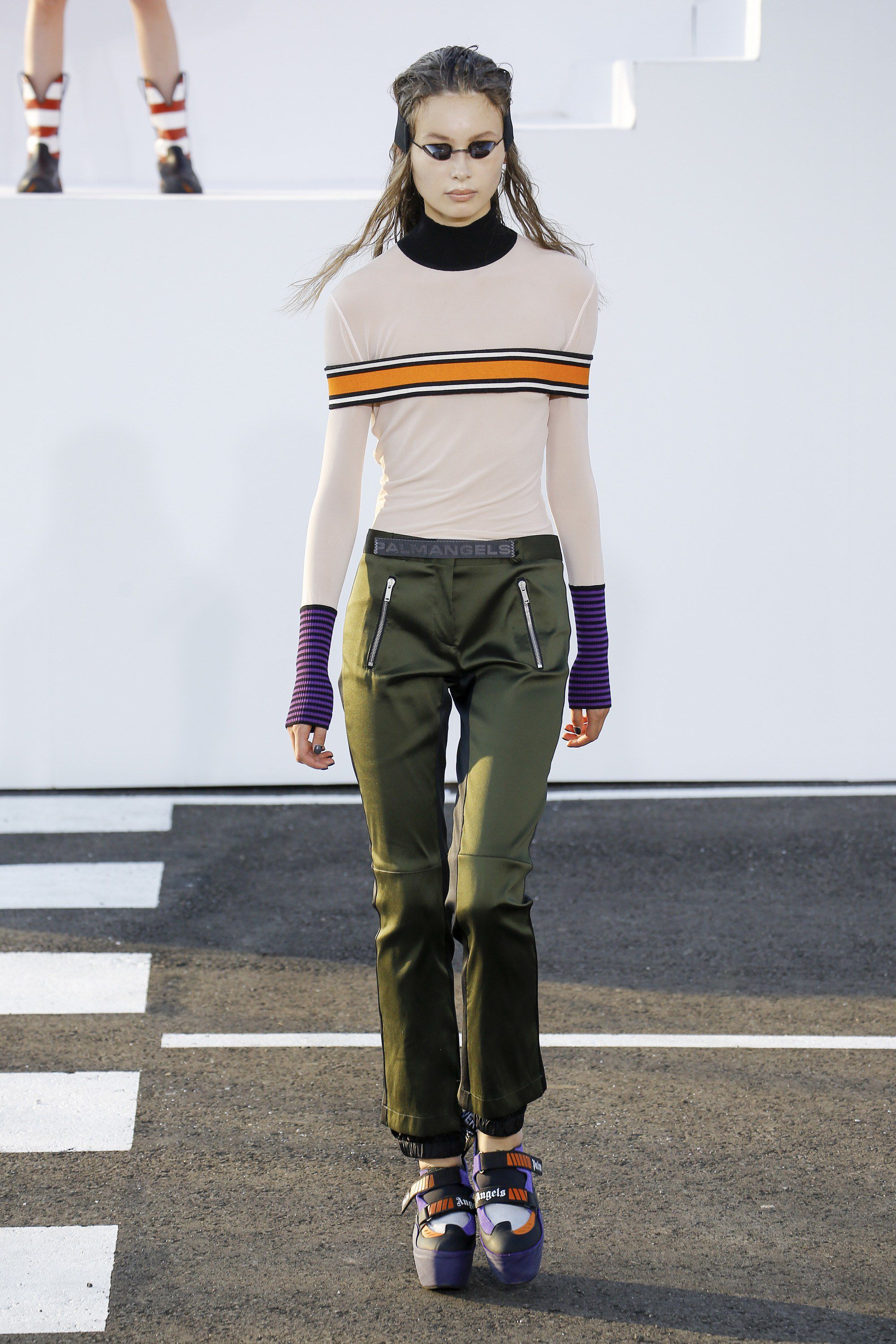 Palm Angels porta in passerella un athleisure distorto, dalla forte attitude streetwear e underground, con elementi "rave" (forse un link alla collaborazione con Swedish House lanciata alla Miami Music Week) e dettagli, come gli occhiali da sole micro stile Matrix dal sapore sci-fi.