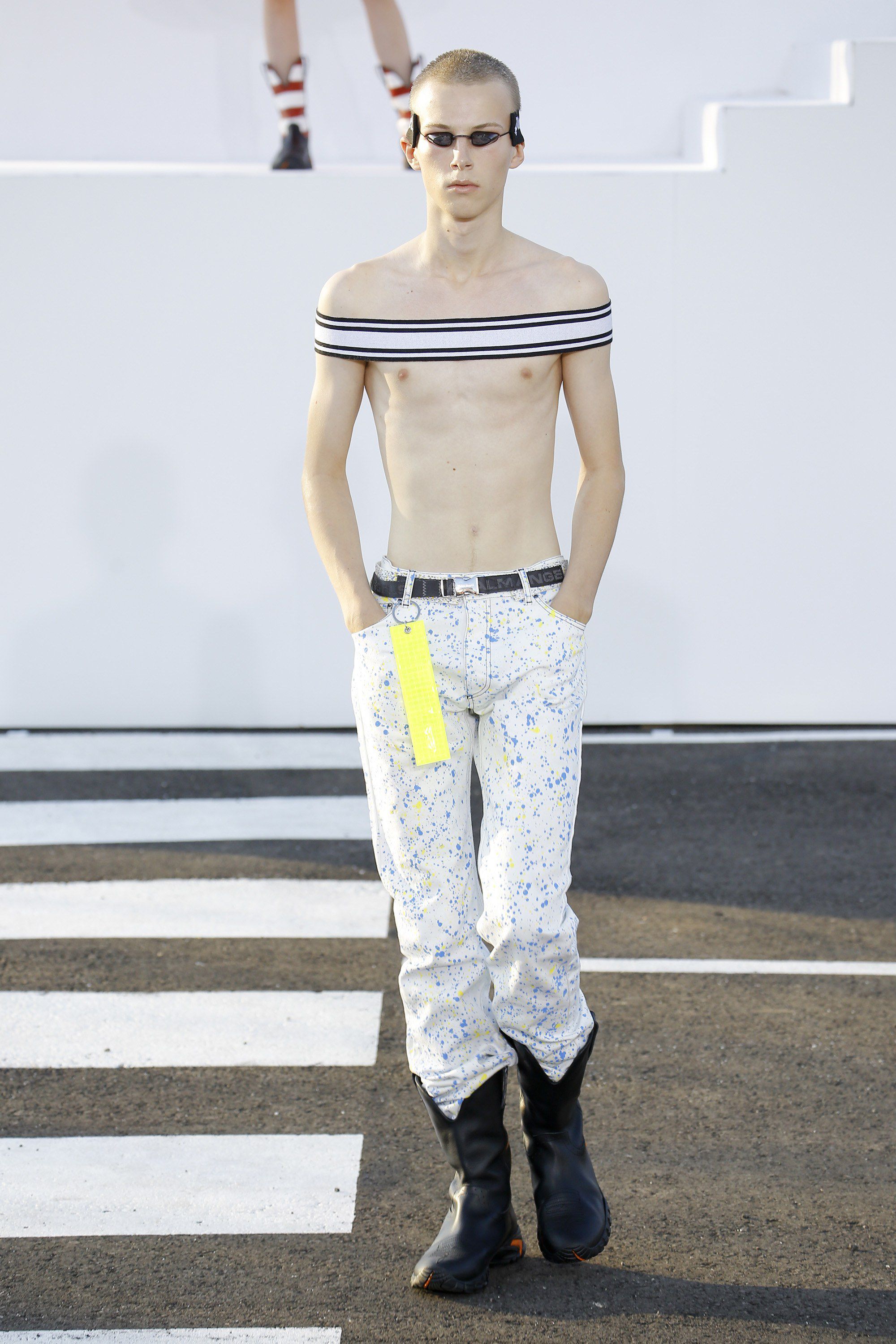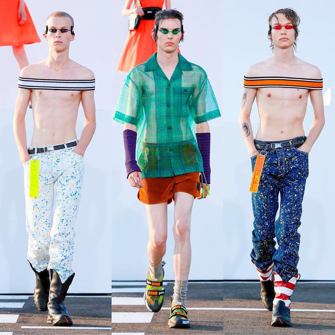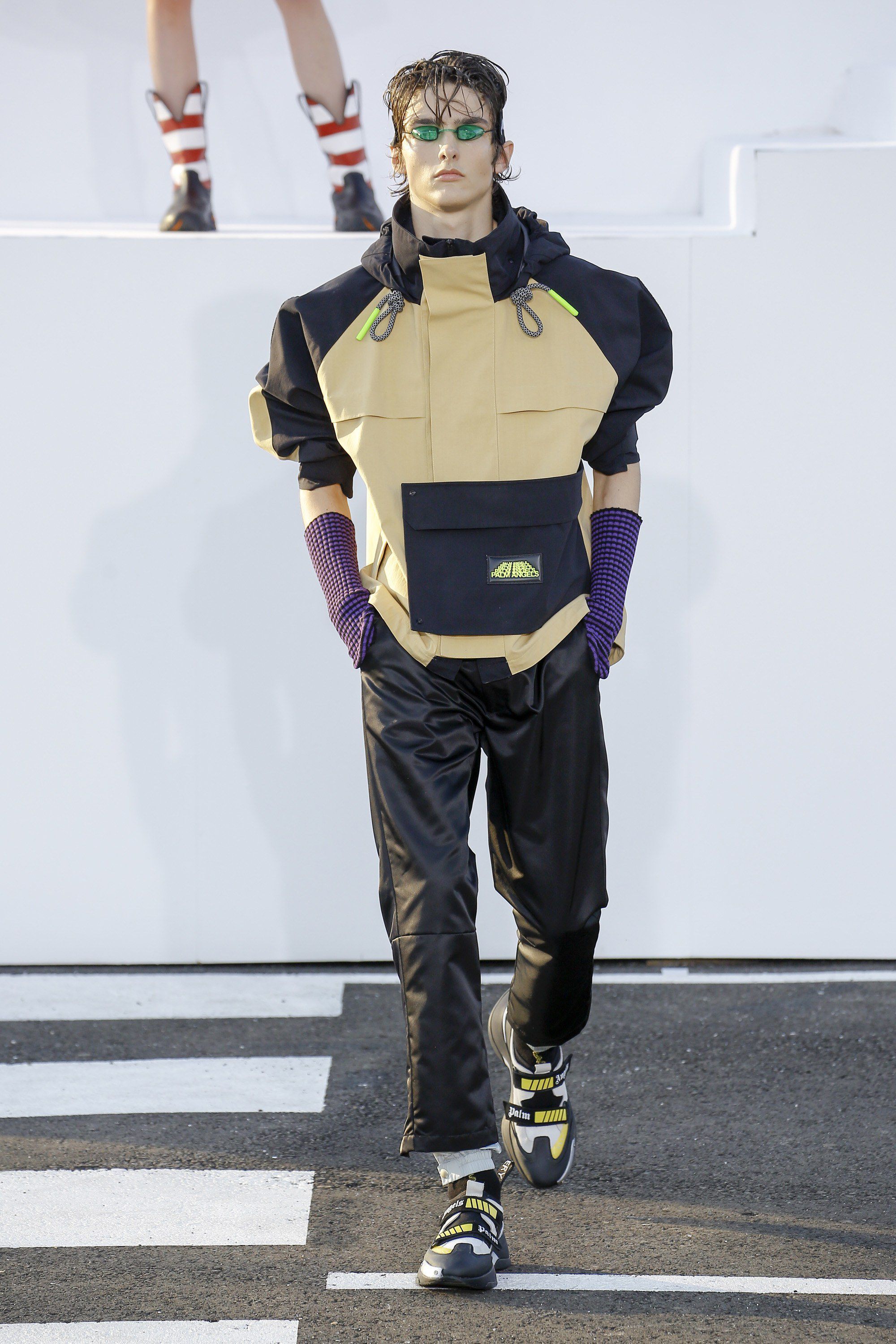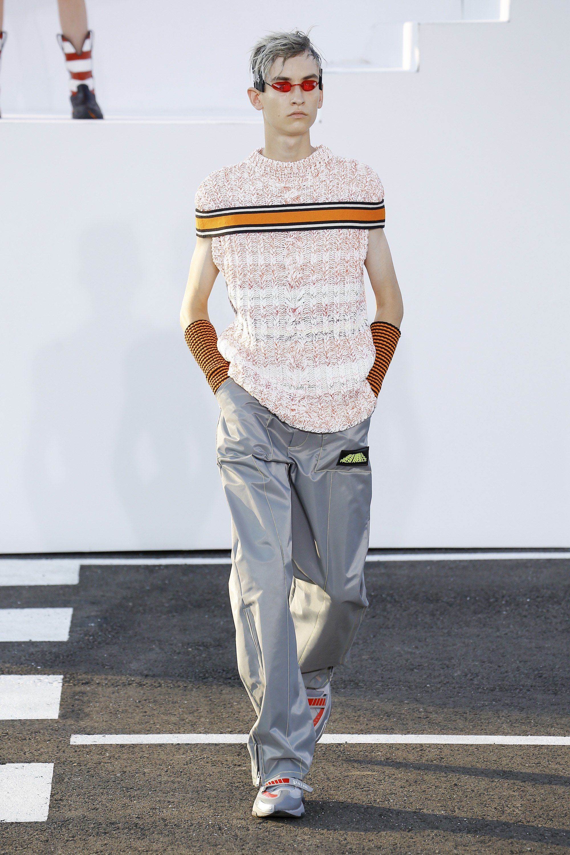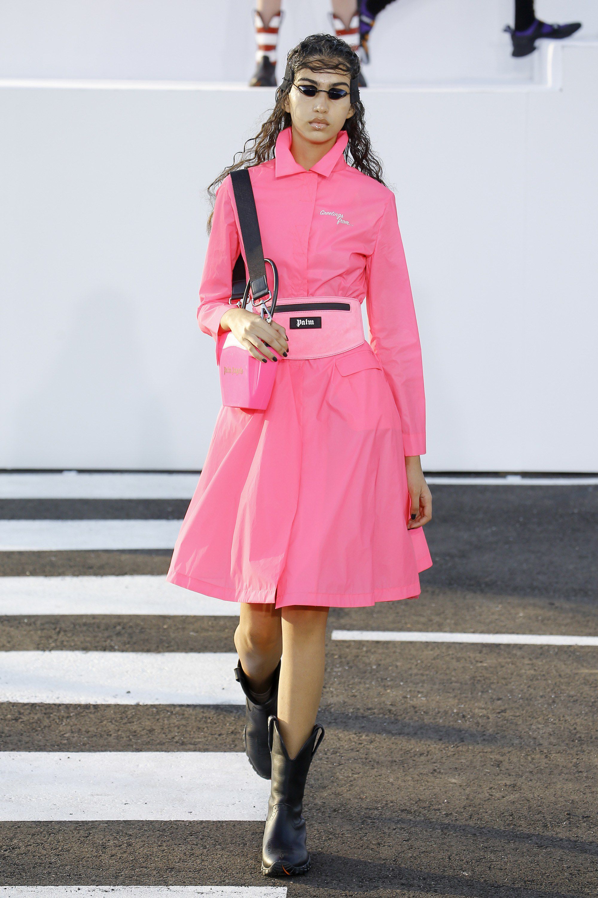 Palm Angels porta in passerella un athleisure distorto, dalla forte attitude streetwear e underground, con elementi "rave" (forse un link alla collaborazione con Swedish House lanciata alla Miami Music Week) e dettagli, come gli occhiali da sole micro stile Matrix dal sapore sci-fi.