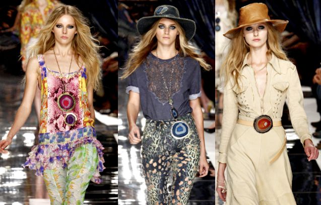 Puntando invece lo sguardo in avanti, troveremo un Roberto Cavalli che ha pensato la P/E 2011 della sua linea Just costellata di pietre tagliate al laser, dai colori sgargianti, utilizzate come bracciali, pendenti, fibbie di cinture e persino spille.