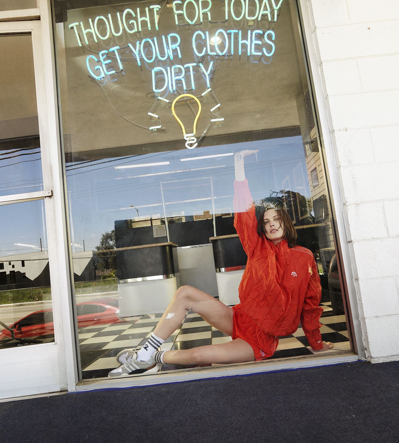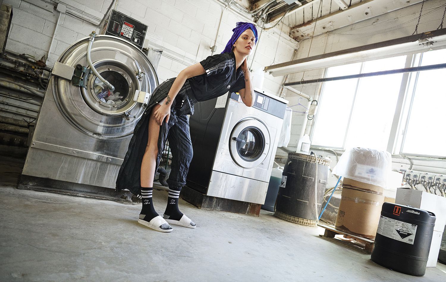 Tute, maglie, canottiere e sneakers prendono vita, indossate da Haley Wollens, Cat McNeil e Lexi Boling, nel lookbook scattato da Brianna Capozzi all'interno di una lavanderia a gettoni.