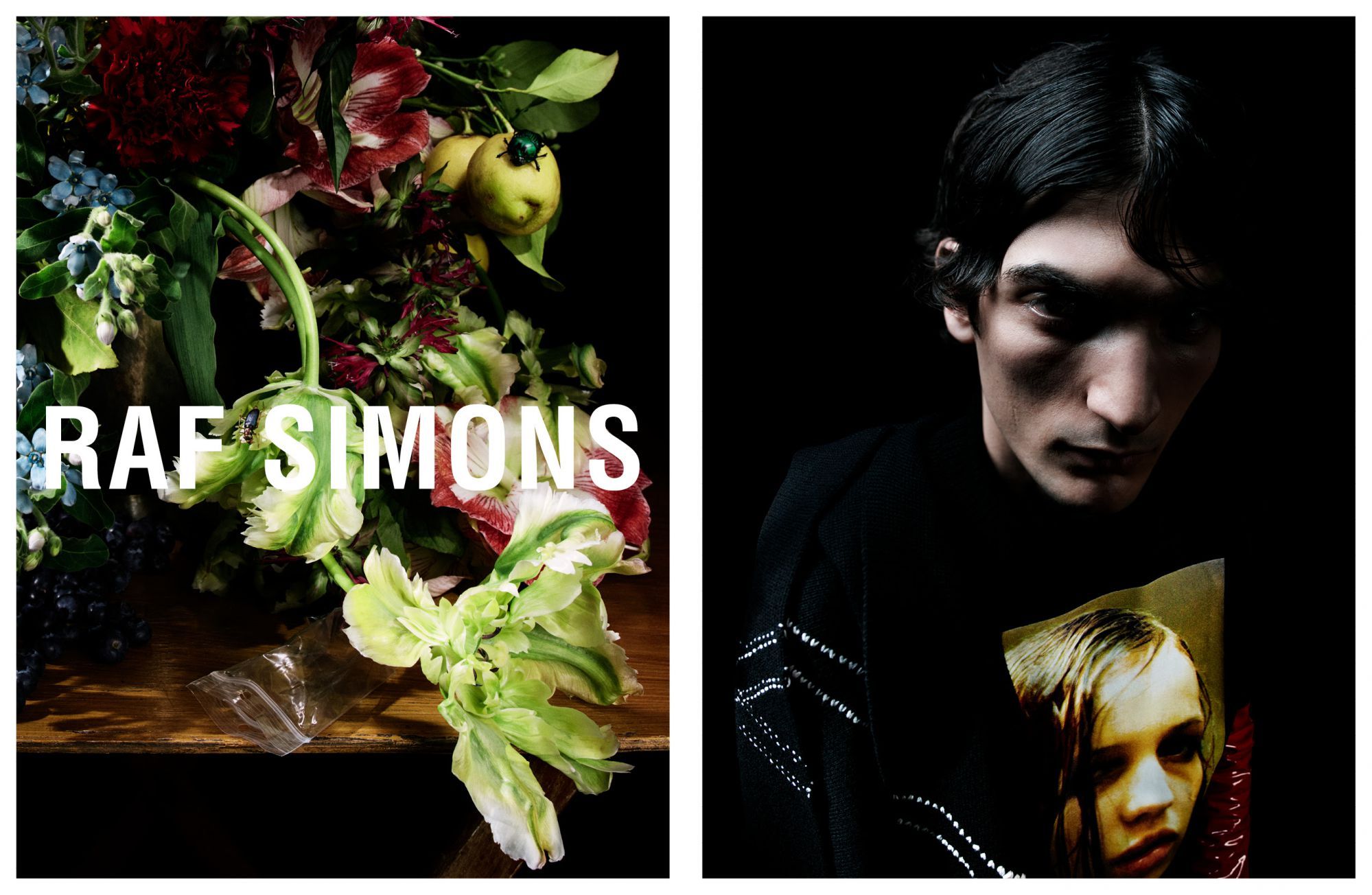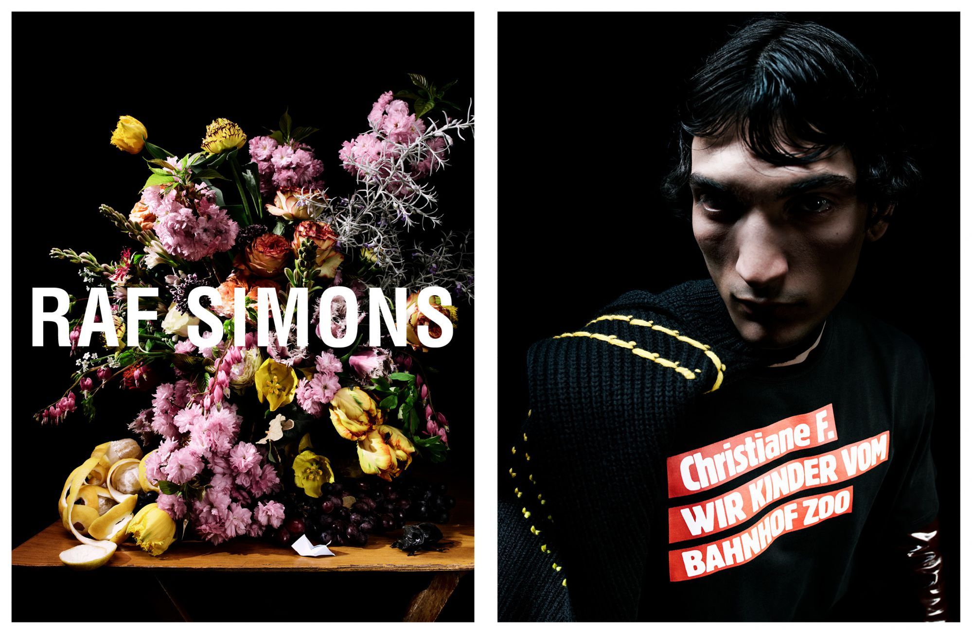 Uno dei temi ricorrenti nel lavoro di Raf Simons sono i fiori, nelle versioni più diverse: come sfondo delle sue stravaganti sfilate, come stampa per i suoi tessuti, o semplicemente come decorazione suntuosa, i fiori sono sempre stati centrali nelle sue creazioni. I fiori sono ancora una volta protagonisti della campagna pubblicitaria FW18: una serie di fotografie di nature morte scattate dall’illustre fotografo Willy Vanderperre. La serie affianca composizioni di bellissimi fiori, attorno cui volano dei piccoli insetti, e materiali e strumenti per drogarsi, il tutto su uno sfondo scuro. Modelli imbronciati indossano la collezione, che richiama la spirale infernale del film Christiane F. In un paradiso floreale, gli insetti possono rovinare tutto.