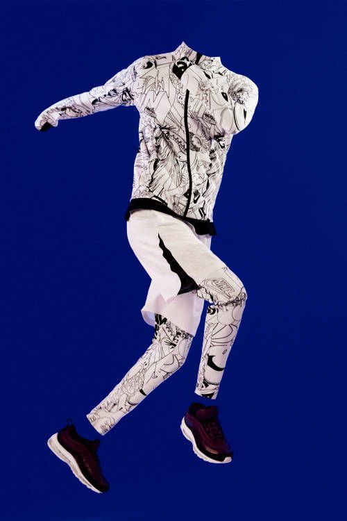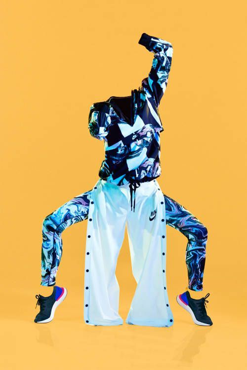Stampe colorate a spirale, illustrazioni lineari e colorblock creativi danno ai leggings, agli shorts, ai pantaloni sportivi e alle giacche della tuta, insomma a tutta la capsule, un tocco pop accattivante.