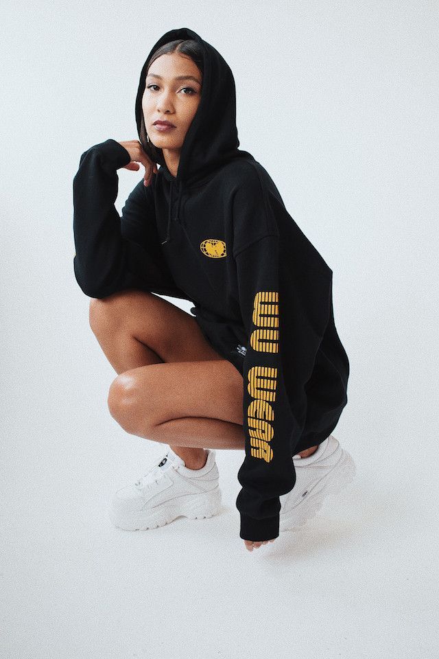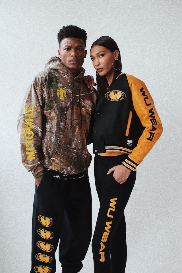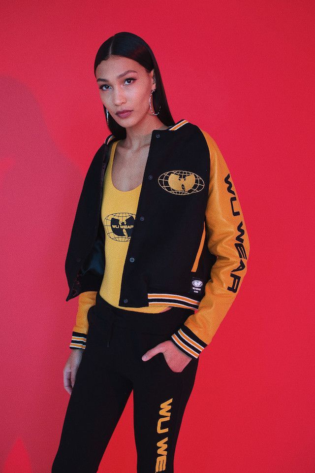 Wu Wear ritorna con una linea uomo e donna perfetta per l'estate, con le classiche T-shirt, felpe e pantaloni della tuta per i ragazzi. Il capo che spicca è la varsity jacket in pelle nera e gialla, che riporta l'orologio indietro direttamente all'hip-hop anni '90. Per le ragazze invece ci sono body e crop top, decorati con il logo e le parole delle canzoni di Wu.