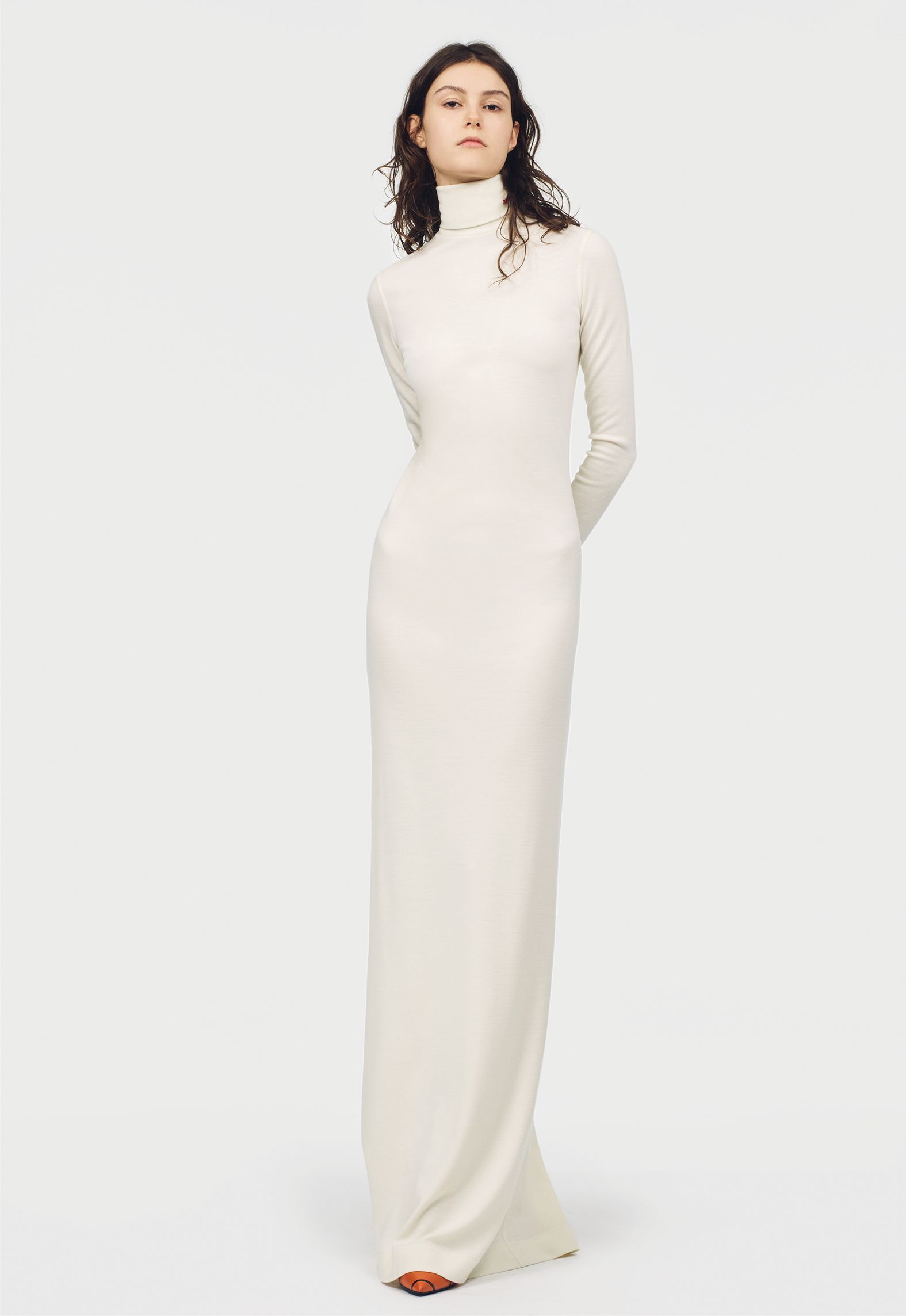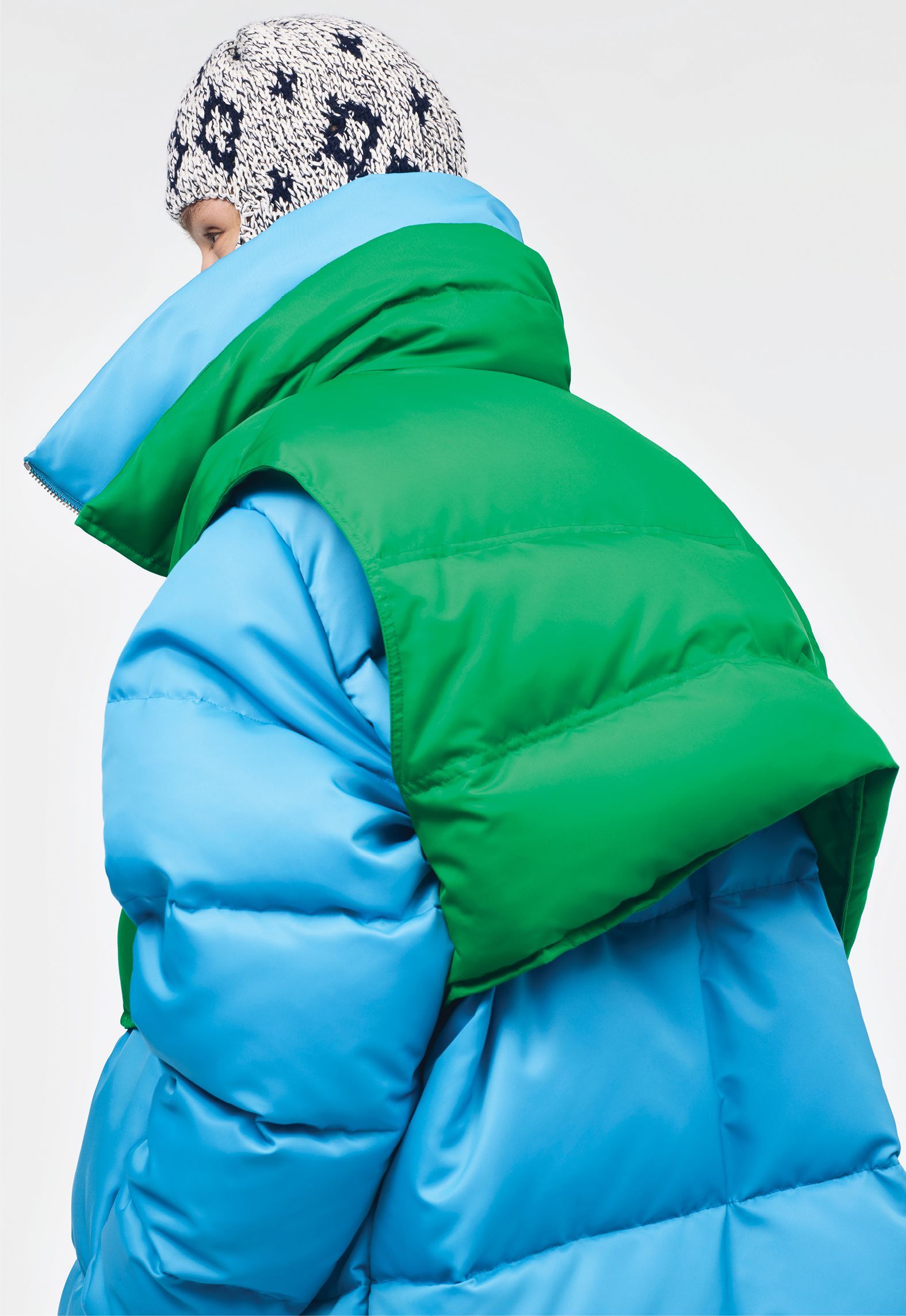 I pezzi chiave della collezione? I maglioni lupetto allungati fino a diventare un abito da sera, le giacche trapuntate create da vecchi sacchi a pelo, l'attrezzatura da immersione e sport acquatici che diventano pantaloni slim e caban.