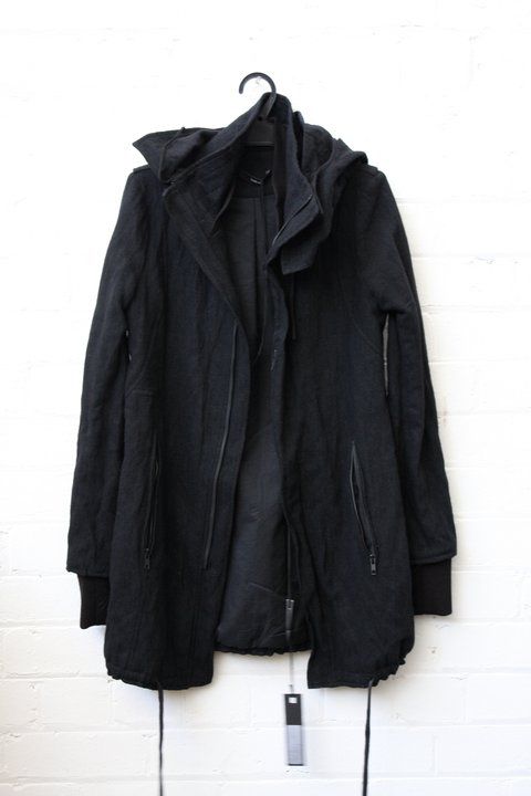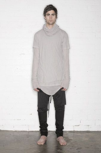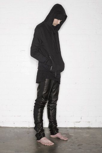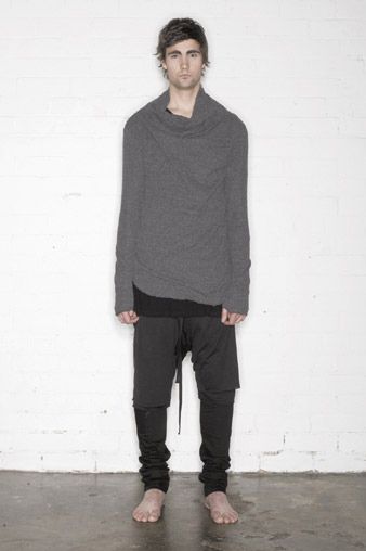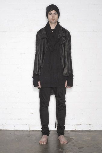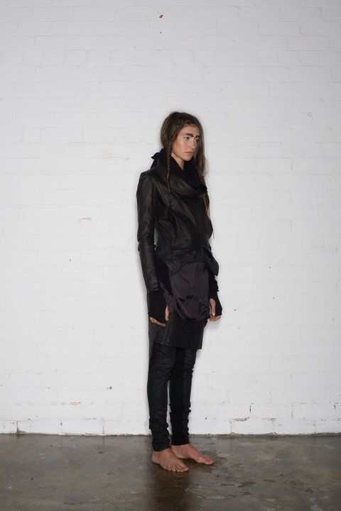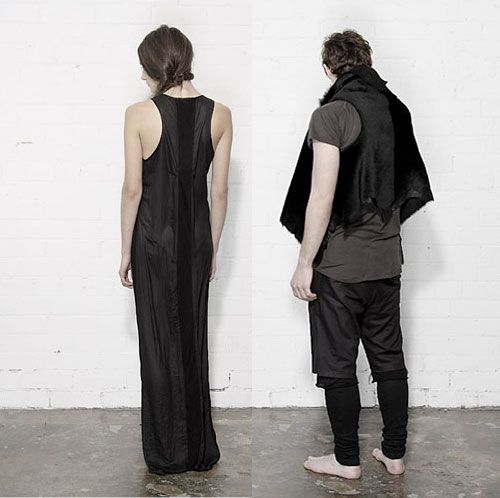 Tessuti pesanti e grezzi, cuciture a dente, sacchi e colori scuri. Sovrapposizioni di pelle, nappa, seta e lana che plasmano looser jackets, mantelle, pants, colli, cappucci e gonne maschili. Una sorta di guardaroba ideale per il perfetto guerriero medievale, che si declina in una collezione praticamente unisex, con tanto di arma gentilmente offerta dalla casa: il dente firmato Claude Maus che pende da ciascun capo. Rob Maniscalco, la personalità che si cela dietro il brand, calca le scene della moda da undici anni ormai, una sorta di pioniere del mood australiano che da quattro anni a questa parte si sta facendo strada all’interno delle nuove proposte del mondo della moda.