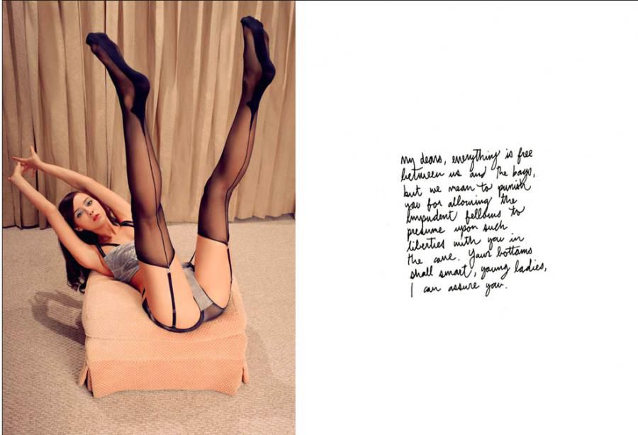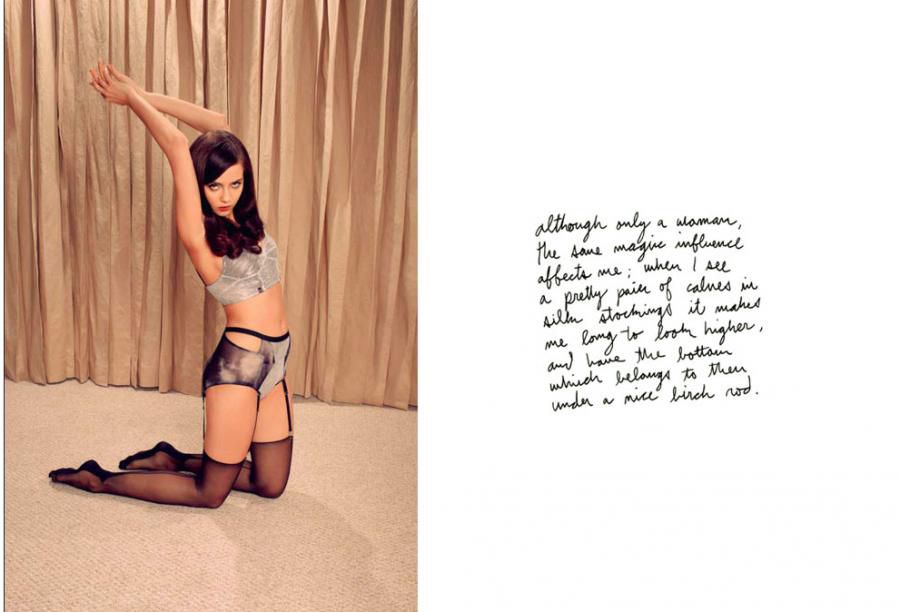 In un’atmosfera che richiama i colori e i sapori di un film anni ’60 o ’70, ritroviamo le modelle intente a rivestire il ruolo di protagoniste e antagoniste nella foto, giocando ora con se stesse, ora con le altre, ora con lo spettatore. L’obiettivo della macchina fotografica è semplice: cogliere le ragazze in pose più goffe e spontanee che impostate; mentre interagiscono tra di loro prima dello scatto e non quando sono già pronte per essere ritratte. Come da un buco della serratura, si ha così l’idea di spiarle, di studiarle prima della loro messa in scena, cogliendole in un loro momento intimo e privato.