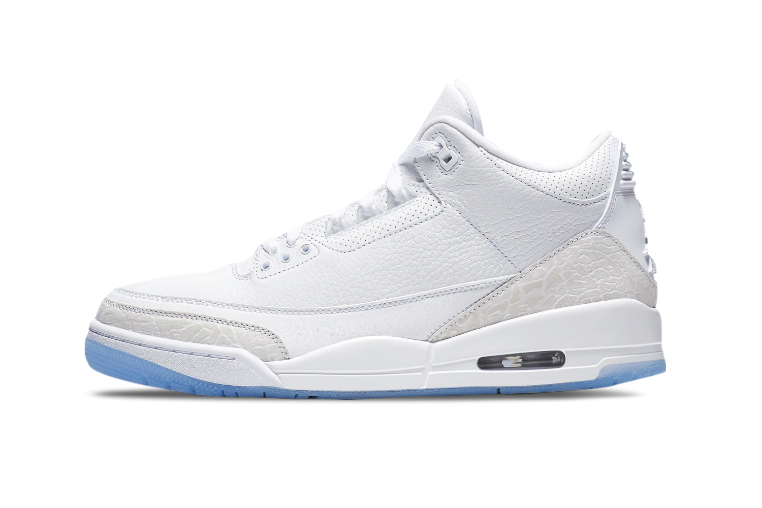 Tomaia total white in pelle, stampa Elephant e suola ice, sono questi i dettagli che caratterizzano la nuova Air Jordan III “Pure White”. La sneakers sarà rilasciata il 21 luglio sull’app SNEAKRS e presso selezionati retailers Jordan Brand. Il retail price è di 192€.
