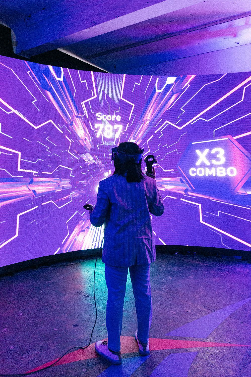 Un alto palazzo dalle ispirazioni berlinesi ha accolto gli invitati che, nel corso della giornata, si sono sbizzarriti tra le mille attività distribuite sui differenti piani. La prima location, totalmente dedicata all'interattività, era allestita con schermi e proiettori che riproponevano alcuni dei migliori video degli anni '90: dai cartoon più celebri ad una scintillante Pamela Anderson nel bikini total red di Baywatch, e poi film e clip musicali di artisti che hanno segnato la storia hip-hop e rap.