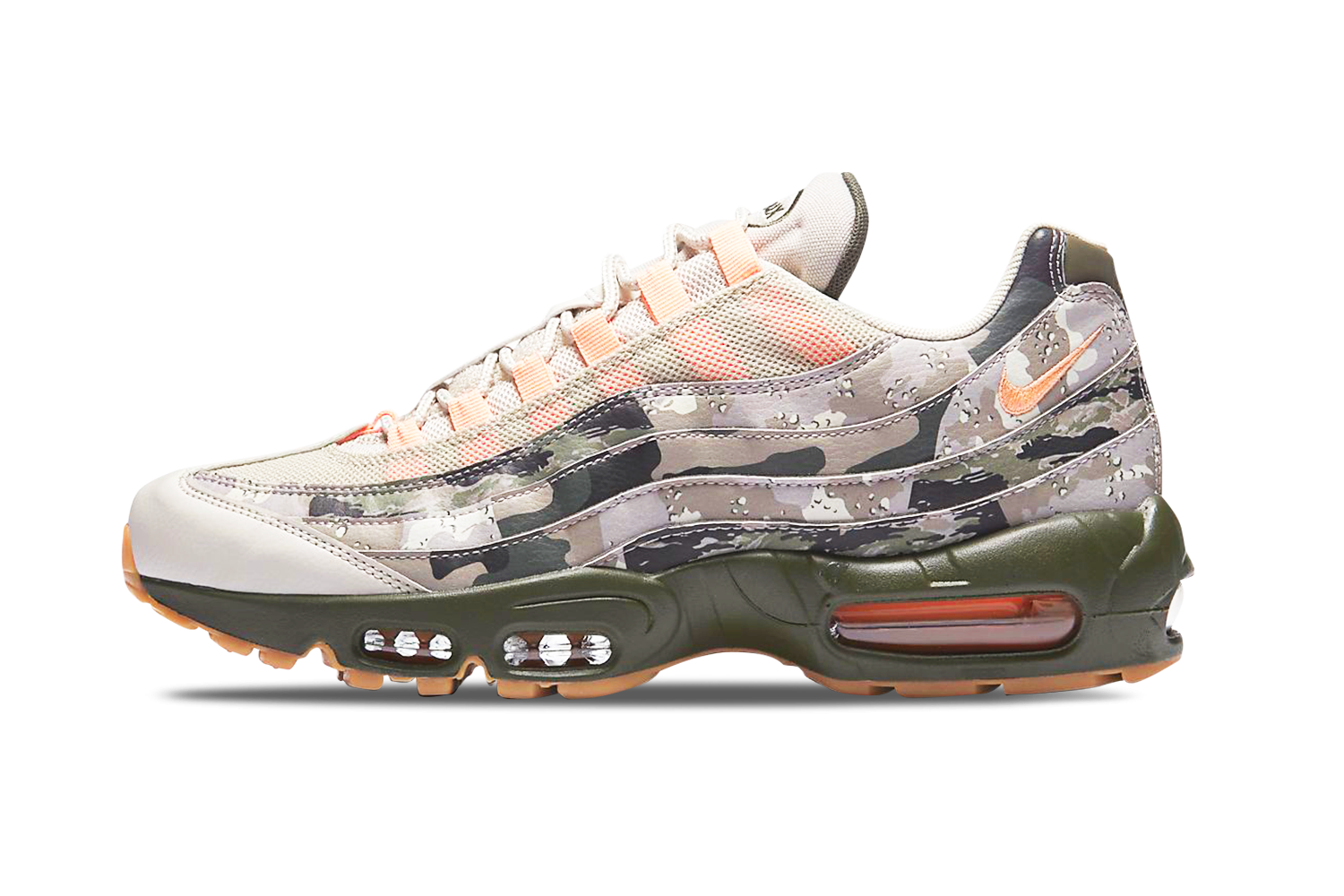 La nuova Air Max 95 Camo “Sunset Tint” abbina il Desert Camo, le tonalità sabbia e il Sunset Tint, offrendo una nuova versione della OG Air Max 95. La sneakers sarà disponibile a partire dal 28 luglio. Il retail price è di 180$.