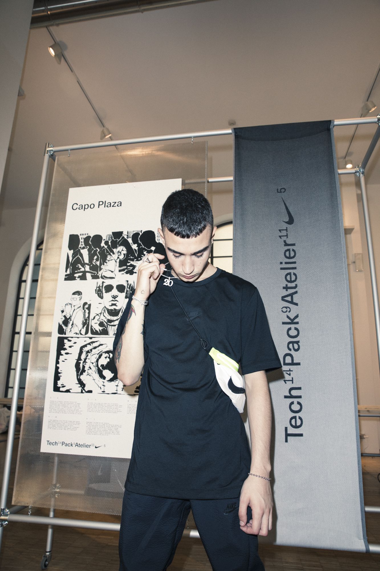 All’atelier di Nike Tech Pack hanno partecipato come protagonisti tre talent davvero speciali: il team di One Block Down, il calciatore Federico Bernardeschi e la nuova promessa della trap, Capo Plaza. Tutti i protagonisti sono stati abbinati ad un creator per realizzare i loro capi customizzati di Tech Pack, che fanno riferimento al tema del codice crittografico menzionato nel nostro recap sull'atelier, in ordine: la designer Mini Swoosh, la stylist Valeria Semushina e la fotografa Virginia Arcaro. Ciascuna coppia ha creato un pezzo completamente unico progettato per l'occasione.