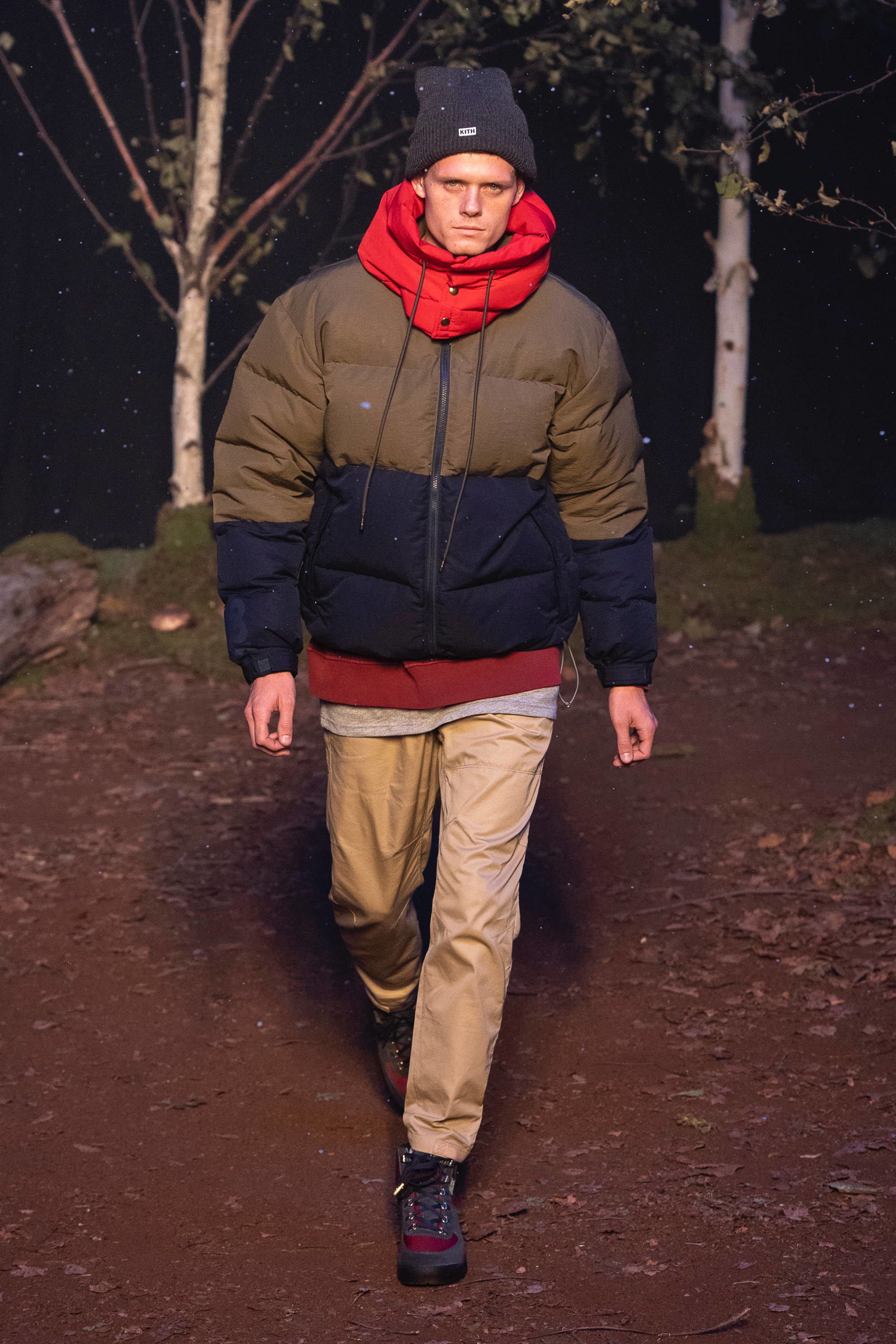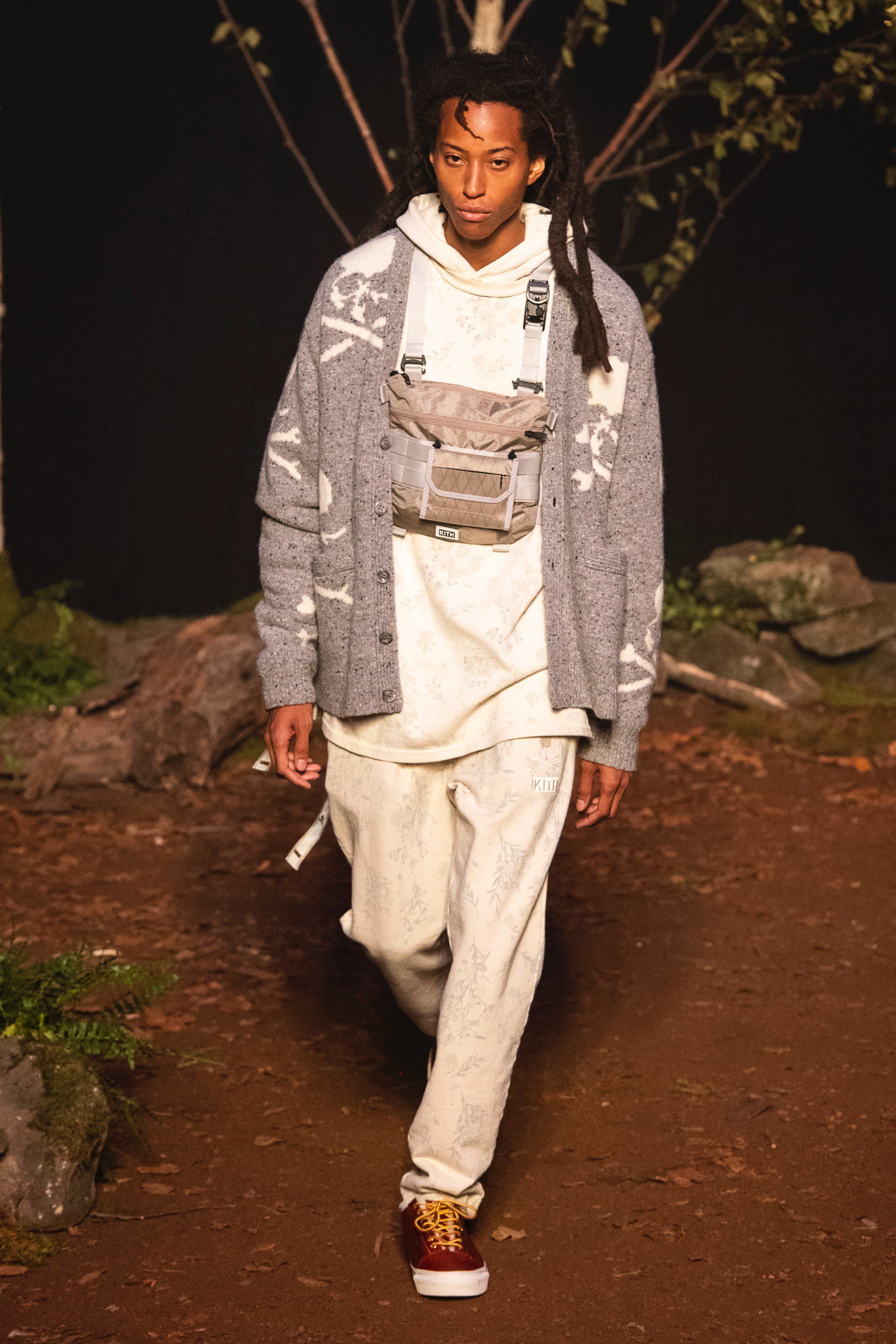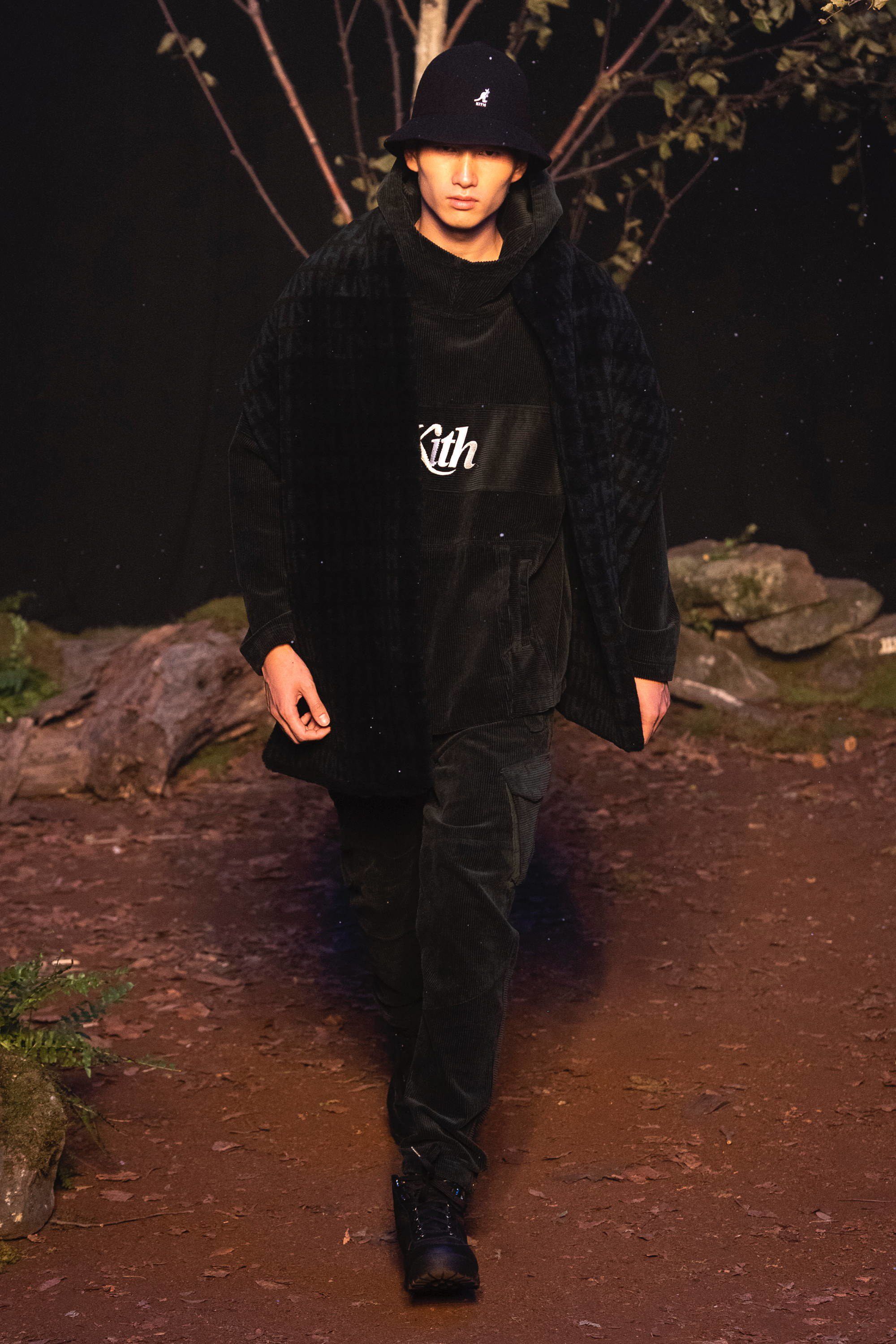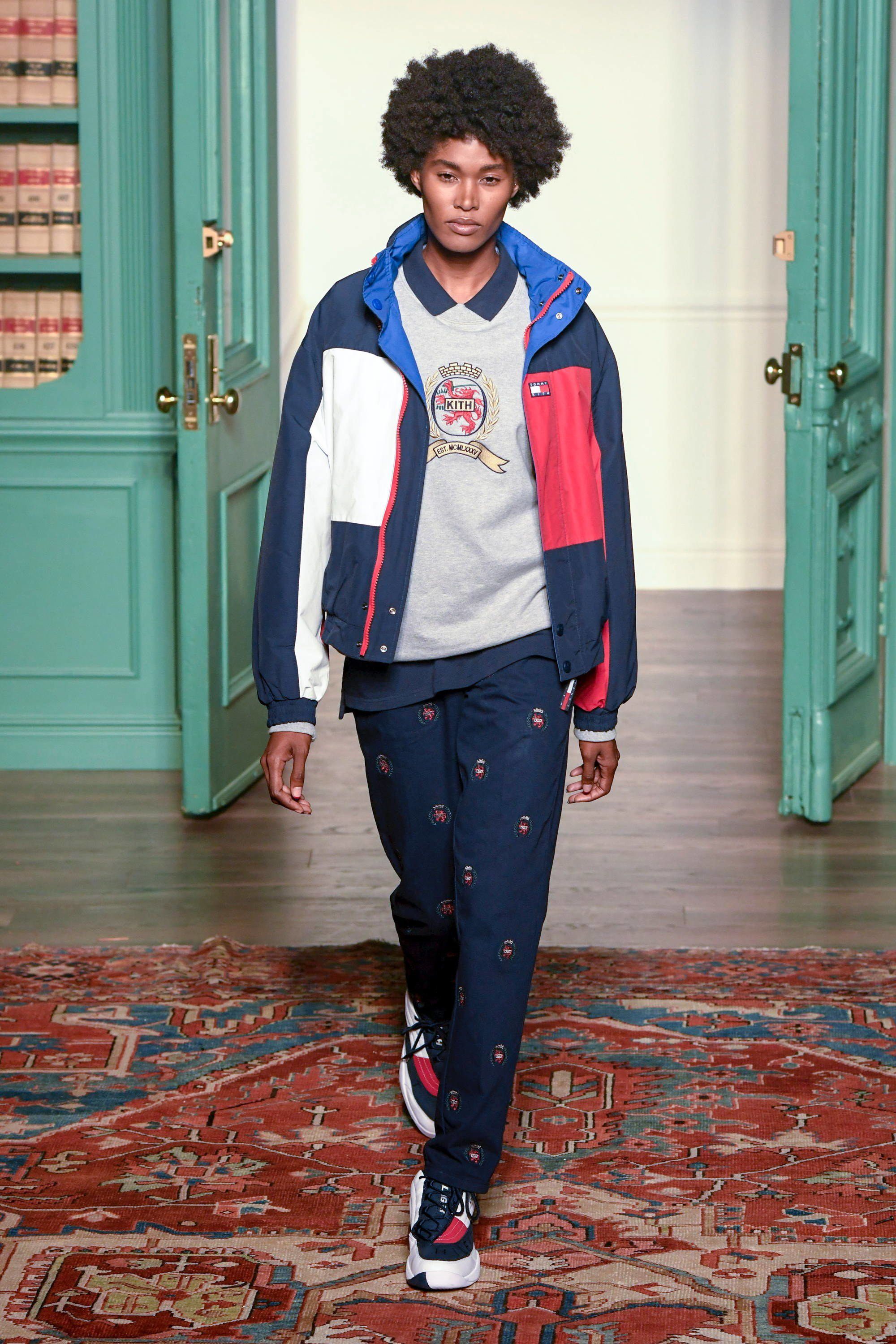 Presso la Duggal Greenhouse a Brooklyn, davanti ad un pubblico che comprende i più grandi nomi dello sport, della musica e della moda come LeBron James, Justin Bieber, Alexandre Arnault, 2 Chainz, Heron Preston e Fabolous vanno in scena quattro distinti idee di moda corrispondenti ad altrettante collezioni: la linea omonima di Kith, una capsule collection con Tommy Hilfiger, una con Greg Lauren e una in collaborazione con Versace. Oltre 120 look, womenswear e menswear insieme, che sottolineano come la moda non sia più legata al tradizionale concetto di stagionalità e come le sfilate siano sempre più spettacoli coinvolgenti. Lo show si apre in un bosco autunnale con le nuove creazioni di Fieg, un tripudio di piumini, tartan, elementi street e sportswear, volumi oversize contrapposti a silhouettes aderenti, sovrapposizioni e worker jackets. Tra i capi proposti spiccano le partnership con Bergdorf Goodman, Columbia e con MASTERMIND Japan.