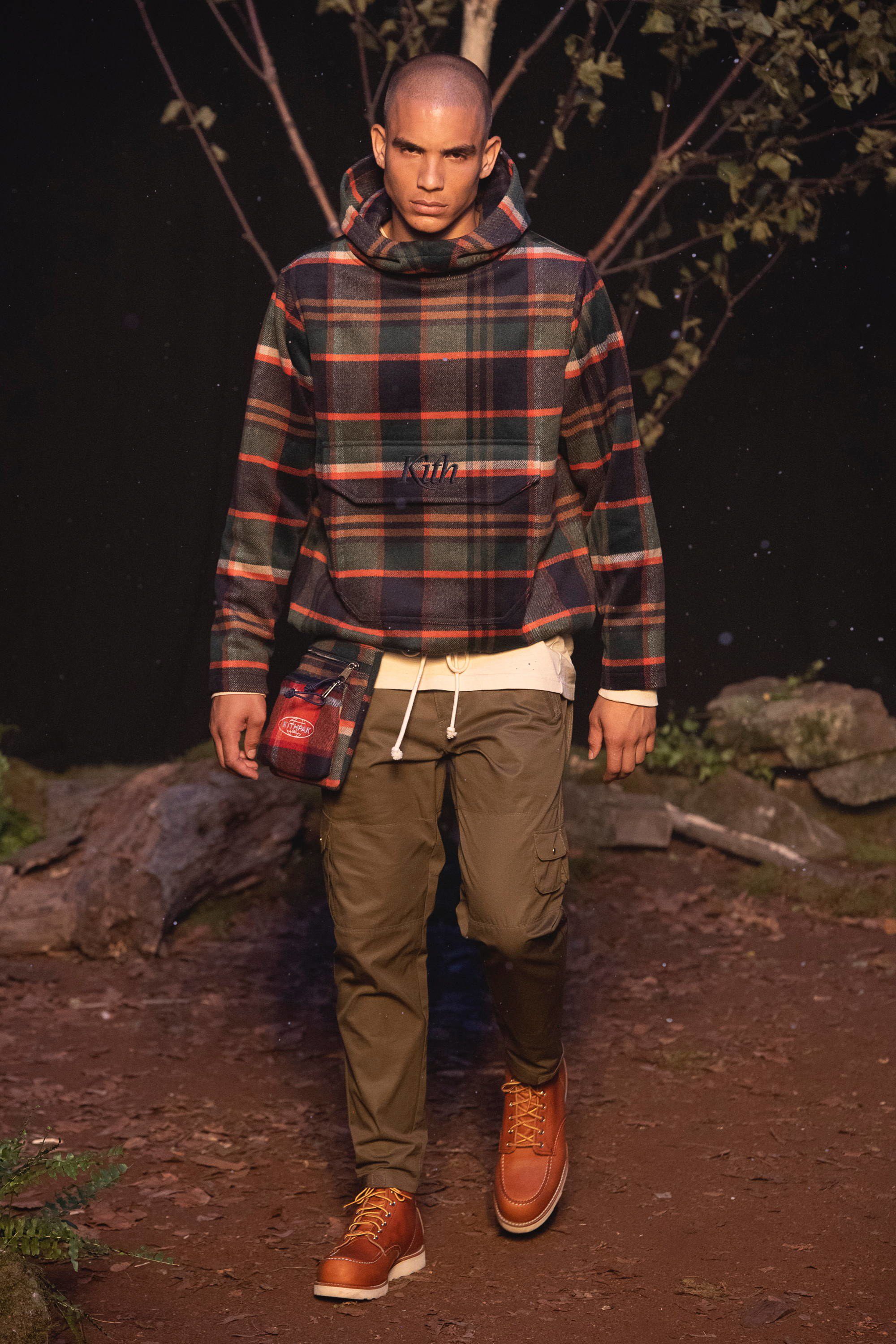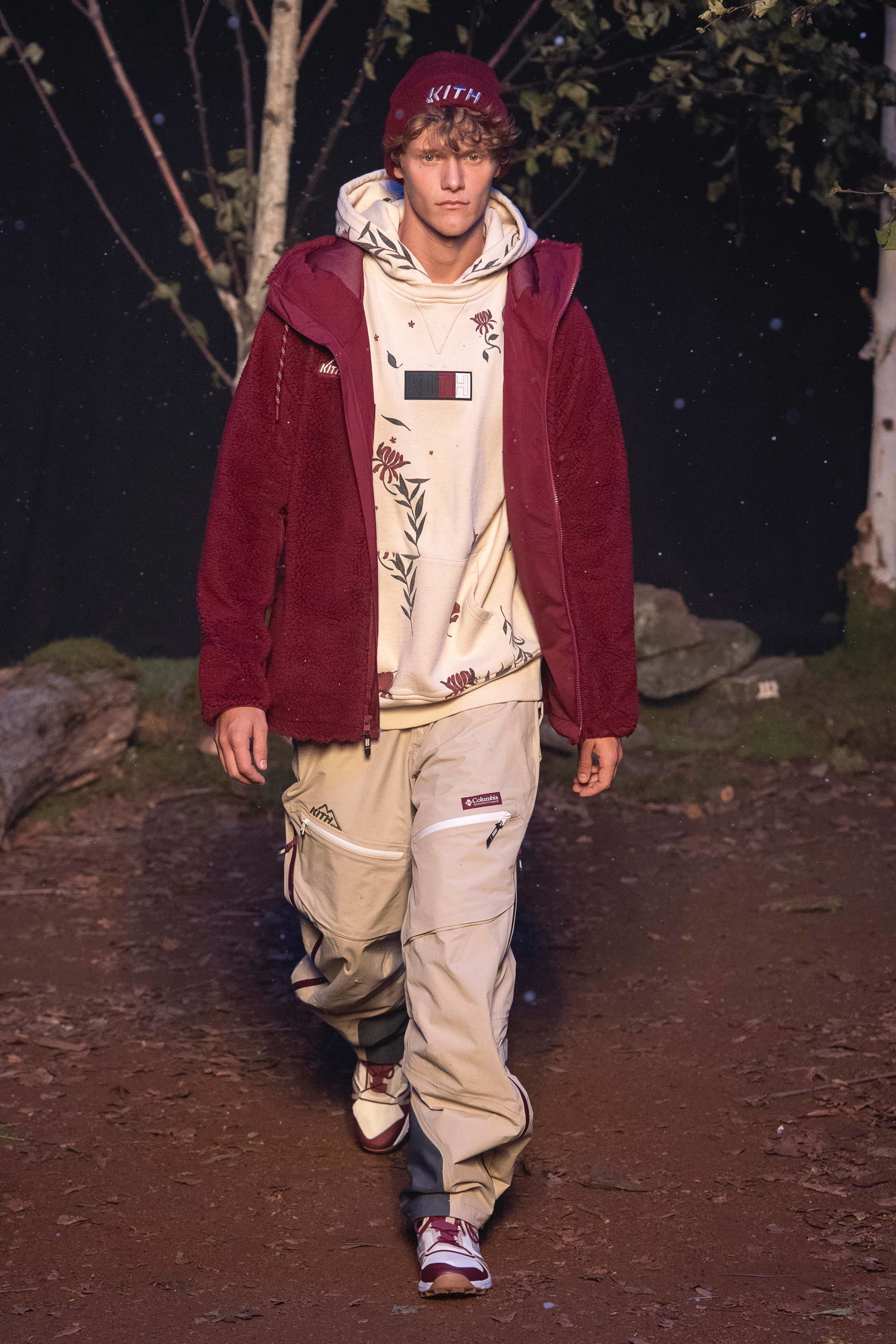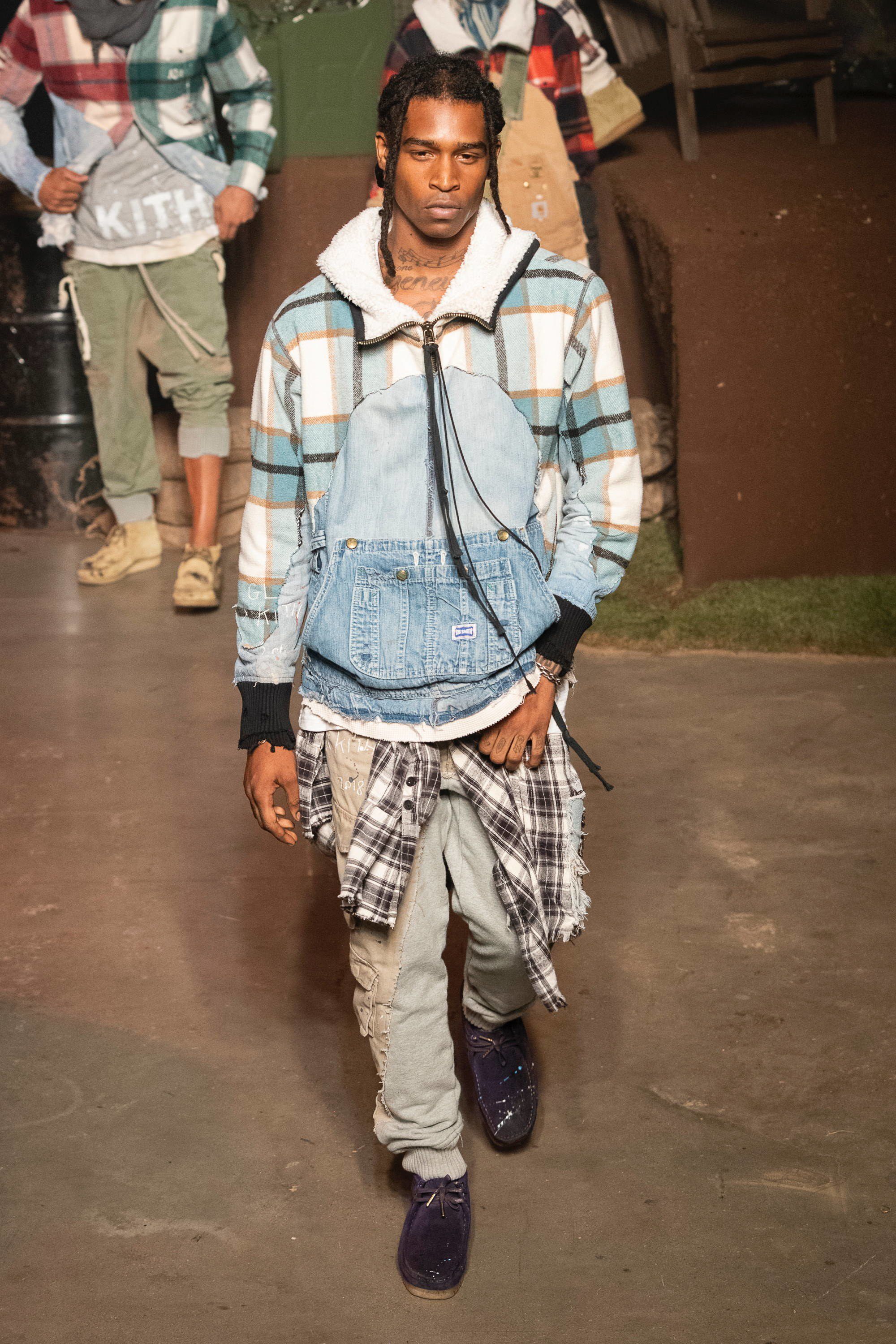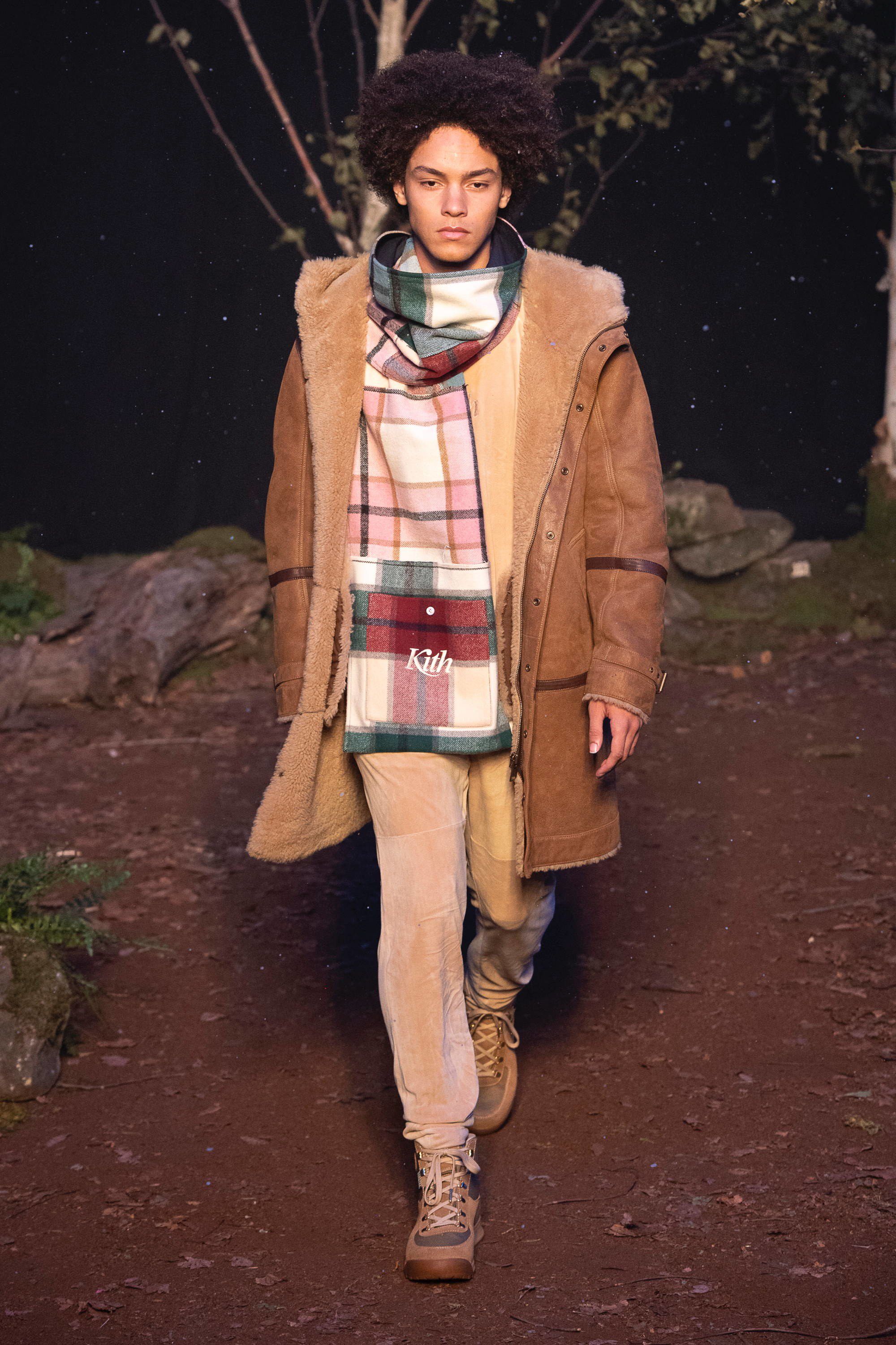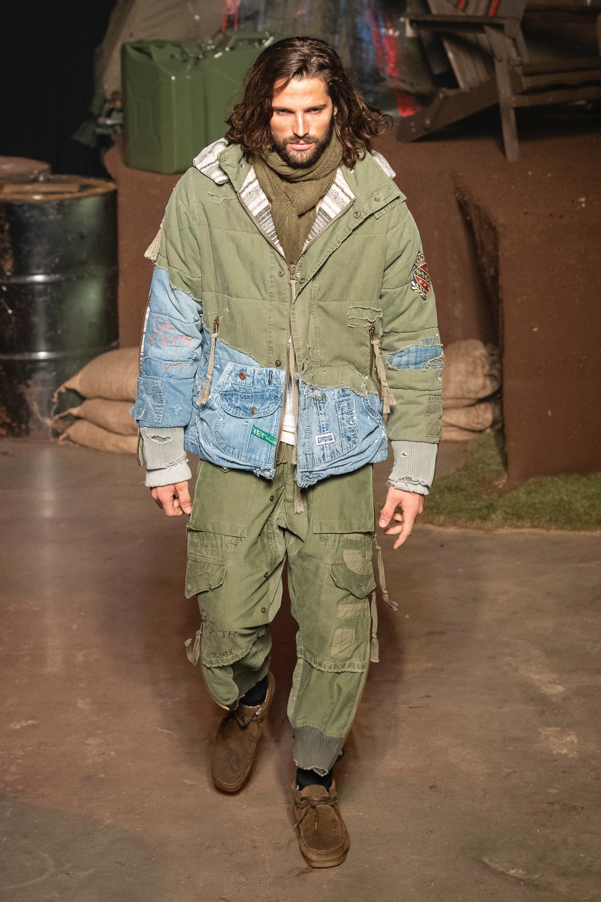 Presso la Duggal Greenhouse a Brooklyn, davanti ad un pubblico che comprende i più grandi nomi dello sport, della musica e della moda come LeBron James, Justin Bieber, Alexandre Arnault, 2 Chainz, Heron Preston e Fabolous vanno in scena quattro distinti idee di moda corrispondenti ad altrettante collezioni: la linea omonima di Kith, una capsule collection con Tommy Hilfiger, una con Greg Lauren e una in collaborazione con Versace. Oltre 120 look, womenswear e menswear insieme, che sottolineano come la moda non sia più legata al tradizionale concetto di stagionalità e come le sfilate siano sempre più spettacoli coinvolgenti. Lo show si apre in un bosco autunnale con le nuove creazioni di Fieg, un tripudio di piumini, tartan, elementi street e sportswear, volumi oversize contrapposti a silhouettes aderenti, sovrapposizioni e worker jackets. Tra i capi proposti spiccano le partnership con Bergdorf Goodman, Columbia e con MASTERMIND Japan.