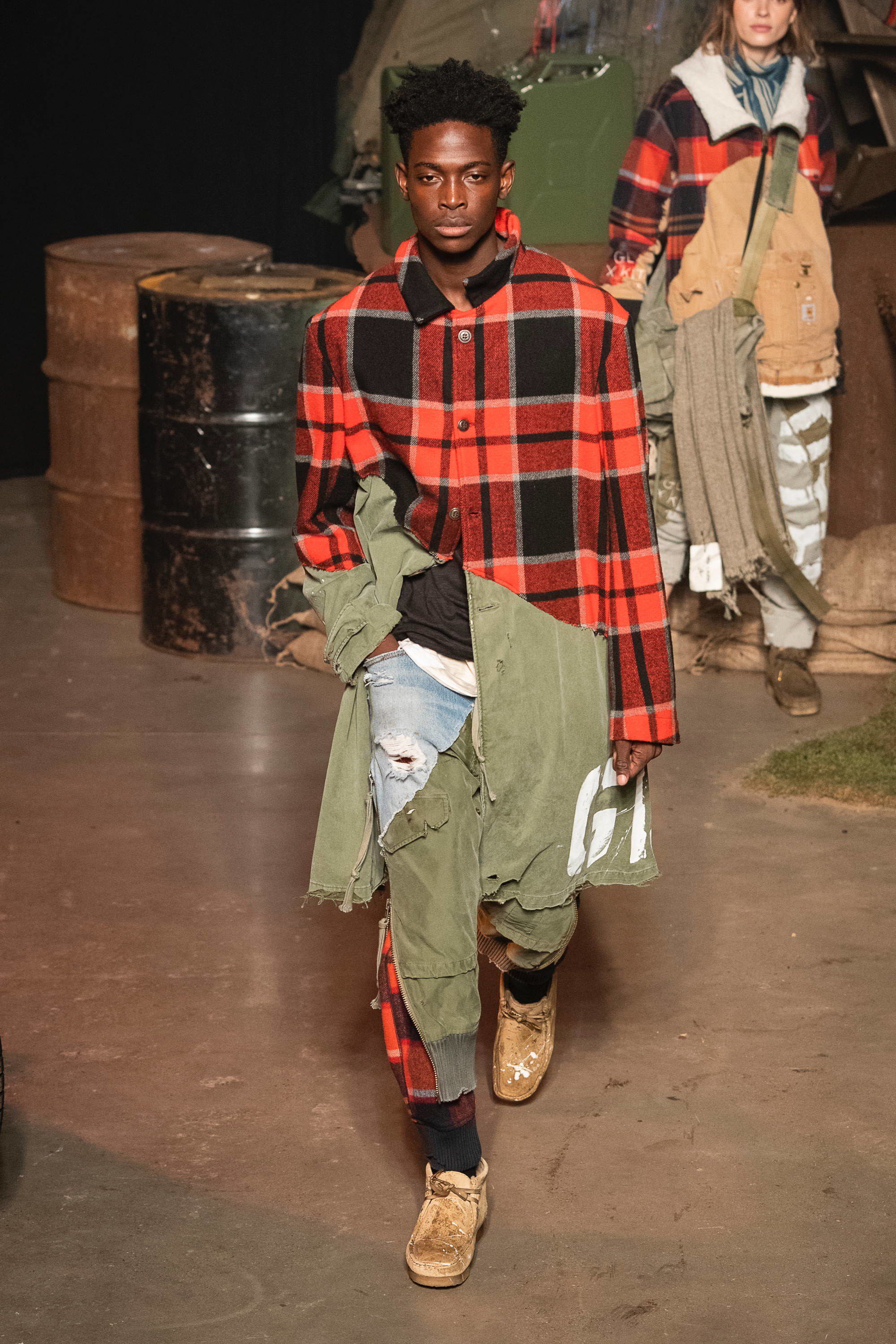 La musica l'hip-hop che fino a questo momento ha dominato gran parte della colonna sonora, lascia il posto ai Nirvana di Smells Like Teen Spirit, note grunge che rispecchiano la nuova serie di capi ruvidi, tagliati e riassemblati, come una sorta di Frankenstein fashion dal sapore vintage e polveroso e dall’attitude cool. Sono il risultato del lavoro con Greg Lauren, pittore e designer famoso per mixare l'abbigliamento militare e il denim, indumenti ibridi con bordi sfrangiati e dettagli personalizzati, come schizzi di vernice stile Pollock o lettere stampate a blocchi.