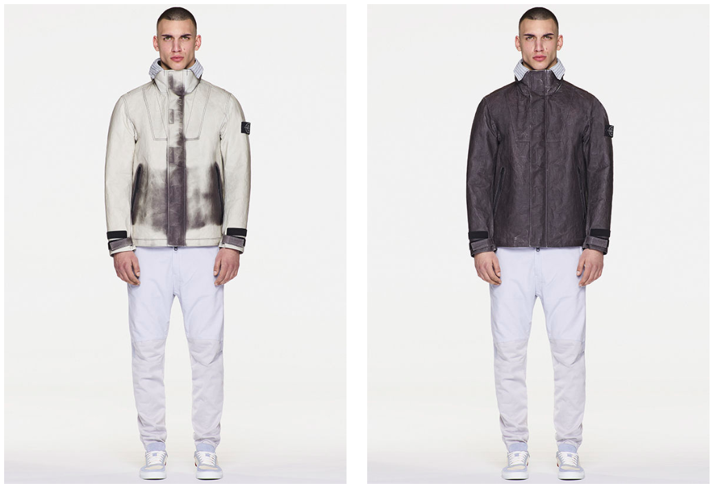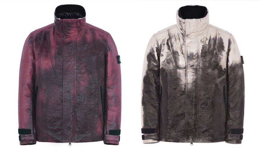 Si tratta della prima giacca in pelle sensibile al calore, nata dalla collaborazione di Stone Island con ECCO LEATHER® e The Dyneema® Project. La parte esterna della giacca è ricoperta da agenti termosensibili, micro molecole di melanina sono incapsulate nella resina che ricopre il rivestimento esterno, che cambia aspetto e colore con l'abbassamento della temperatura: da granato a nero, da beige a grigio acciaio.