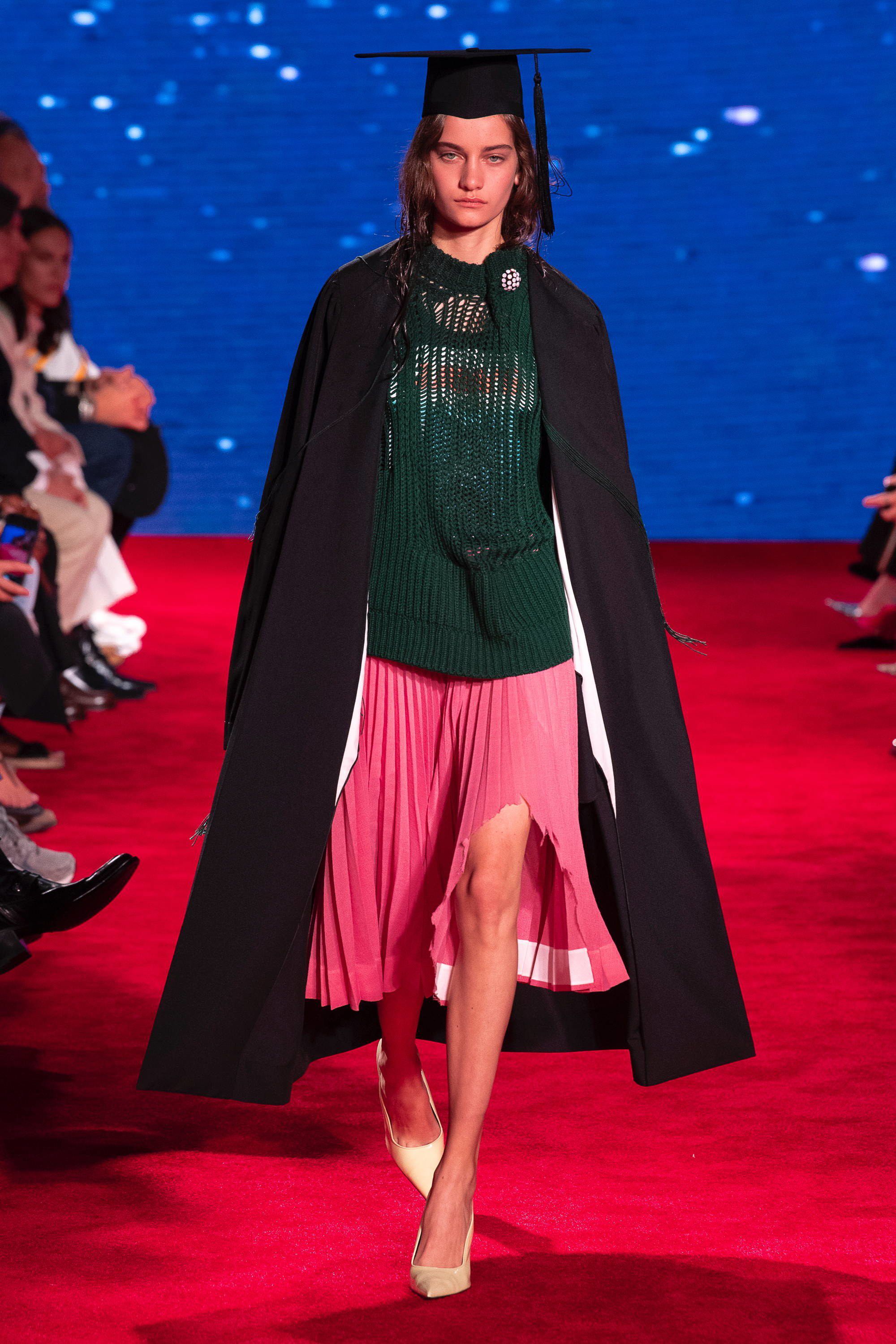 Lo sanno tutti, anche alla NYFW: a settembre è tempo di tornare a scuola. Sarà per questa consuetudine che molti designers hanno scelto di riproporre in passerella set e look ispirati alla vita tra i banchi. Biblioteca, college, liceo, ogni declinazione stilistica dell’argomento, dalle giacche varsity preppy al tocco fino alle uniformi da cheerleader, va bene per la prossima SS19. Se non ci credete chiedete a Kith che ha mostrato la sua collaborazione con Tommy Hilfiger in una specie di finta libreria con modelli in pullover logo, baseball cap e zaini di tela o a 3.1 Phillip Lim che ha sfilato alla nuova Design High School. E che dire di Raf Simons per Calvin Klein 205W39NYC? Il designer belga si è ispirato al film cult The Graduate e ha vestito Kaia Gerber & Co. con tocco e mantello tipico delle cerimonie di laurea americane, così come ha fatto Vaquera che ha invitato gli ospiti in una caffetteria riempita con sedie di plastica a vedere i suoi outfits da laureato, cheerleader, prom queen o ragazza con una borsa di studio per lo sport.