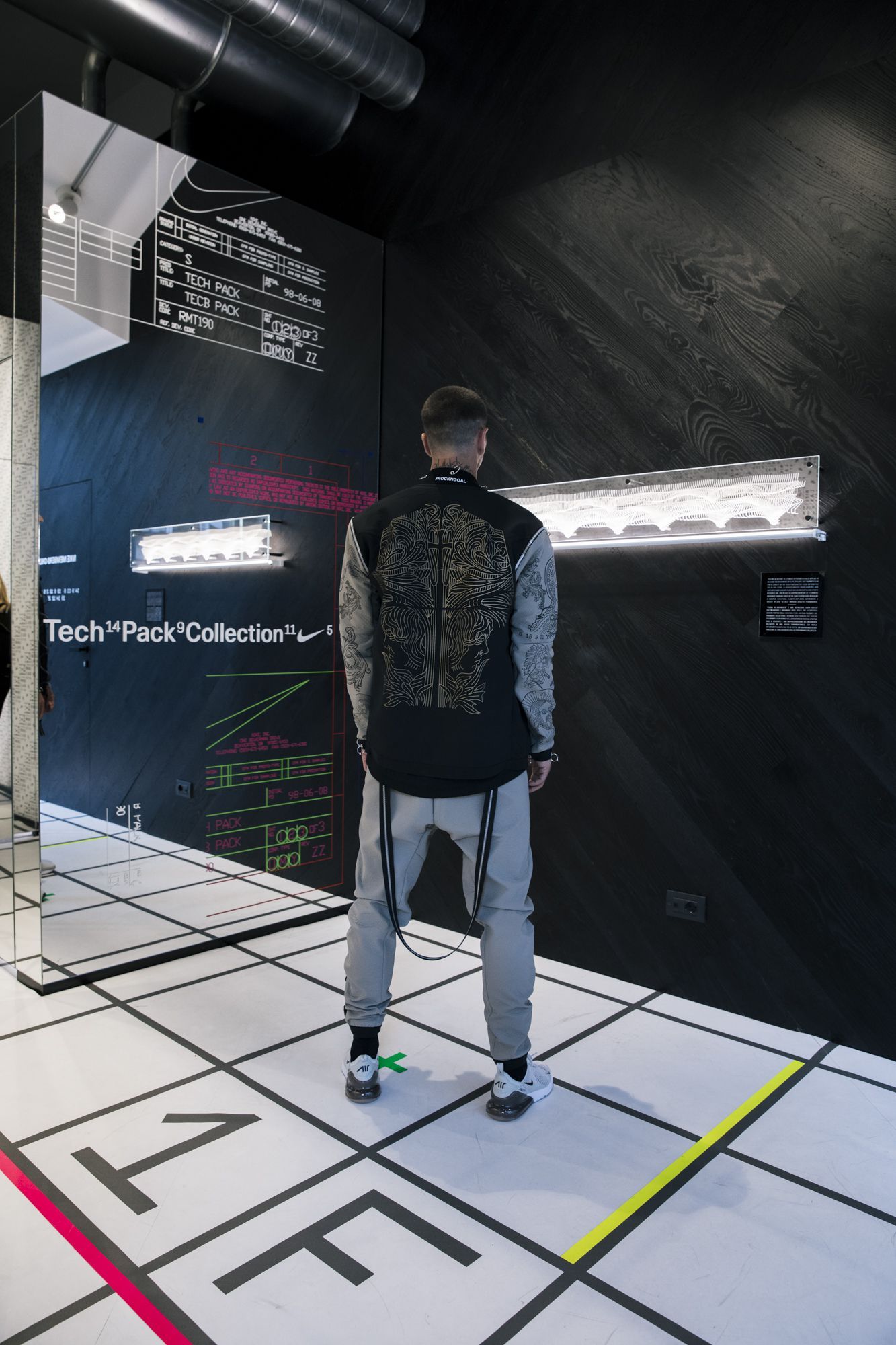 La scorsa settimana a Milano si è svolta l'ultima serie di eventi di Nike Tech Pack, in cui i protagonisti e i talent coinvolti nel progetto hanno incontrato un'ultima volta i fan, che hanno avuto la possibilità di customizzare item diversi. Per tutta la settimana il NikeLab Store si è trasformato in un'installazione Tech Lab: i pezzi del Tech Pack, esposti su un nastro trasportatore, passavano attraverso uno scanner che ne rivelava ogni dettaglio e caratteristica.
